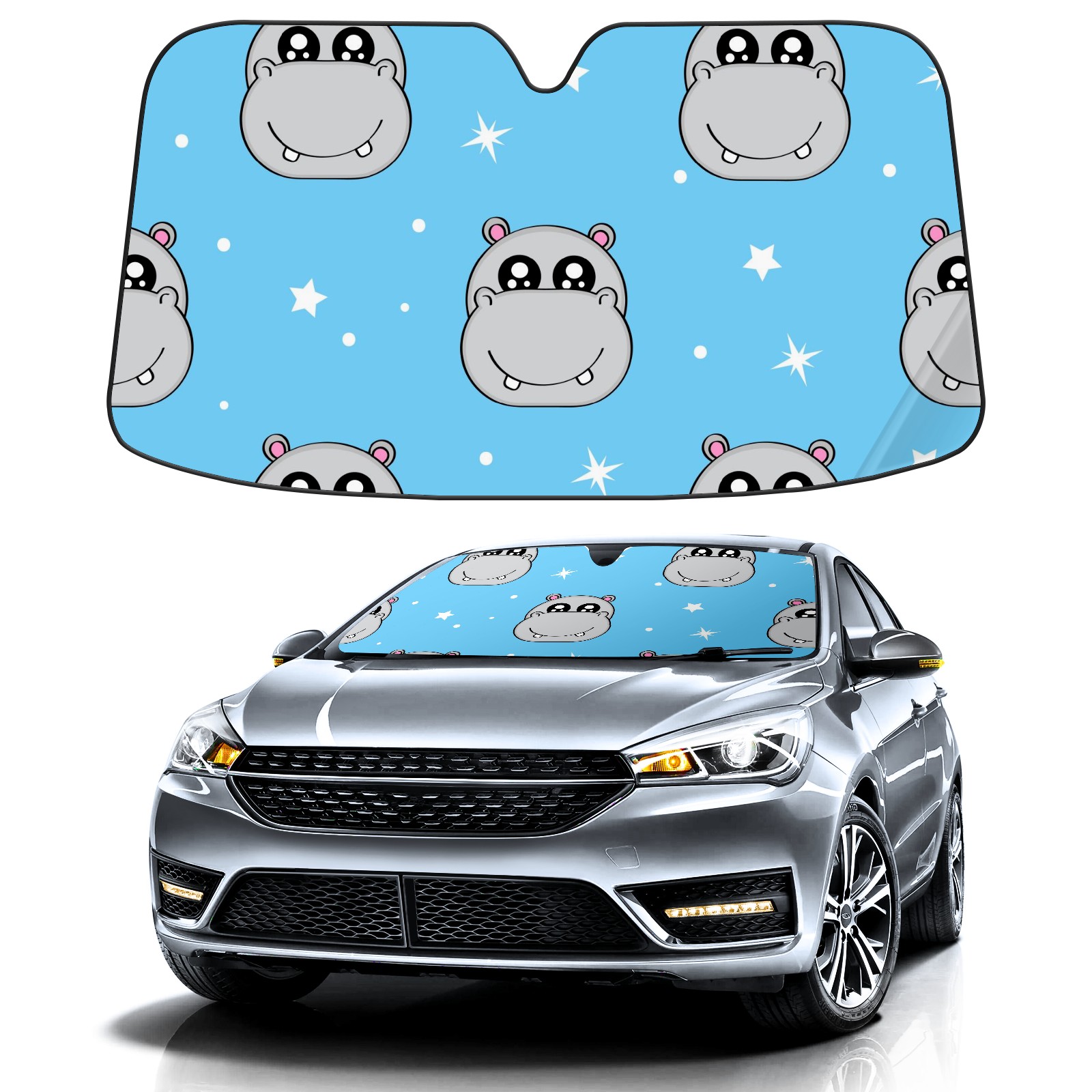 Car Windshield Sun Shade For Front Window Cute Hippo And Star Foldable Vehicle Windshield Car Sun Visor Covers Automotive Window Protector Car Camping Privacy Sun Blocker