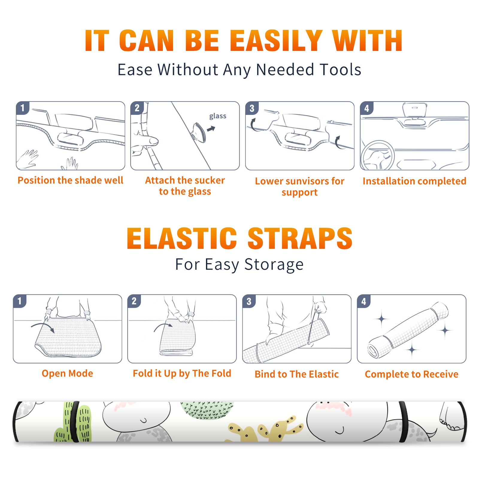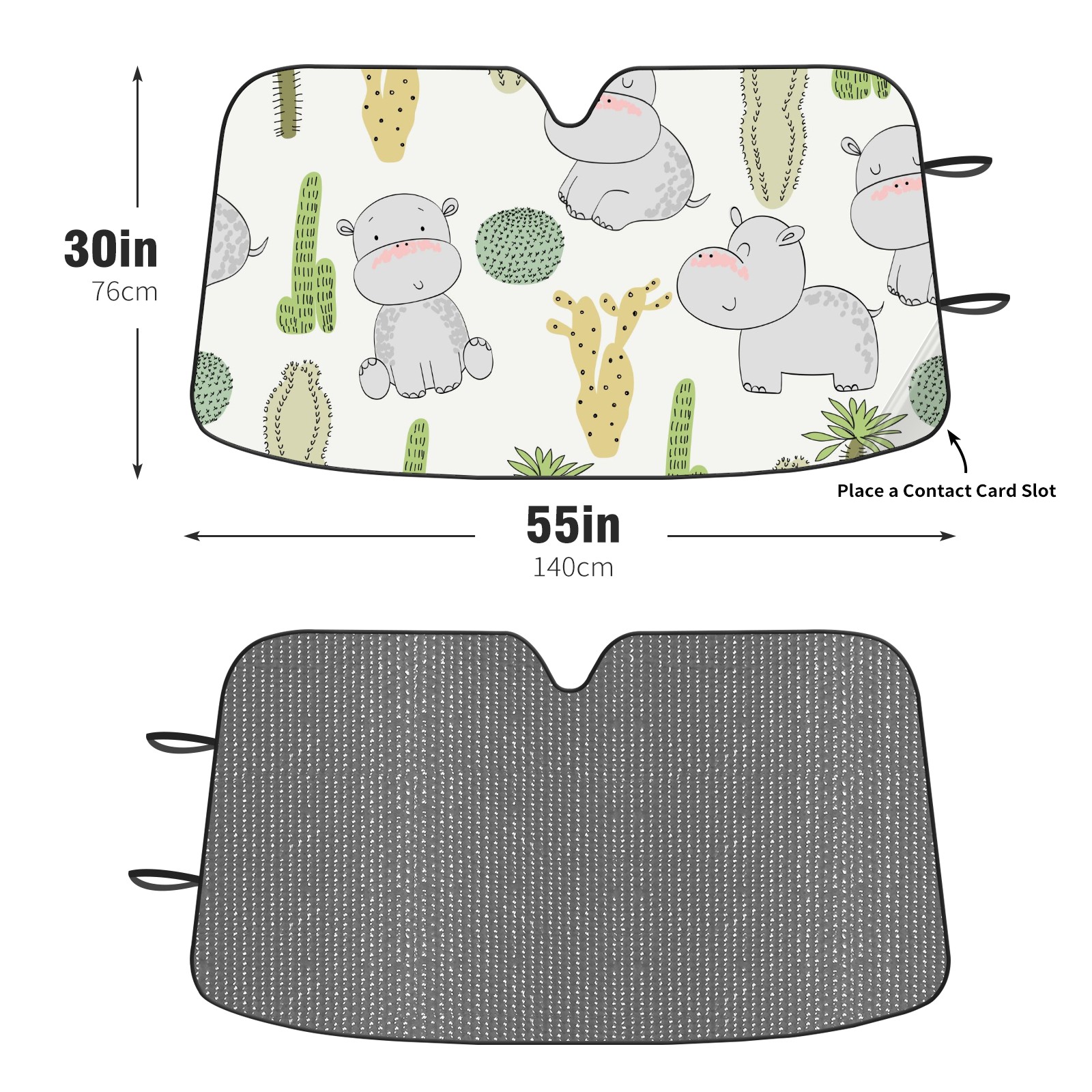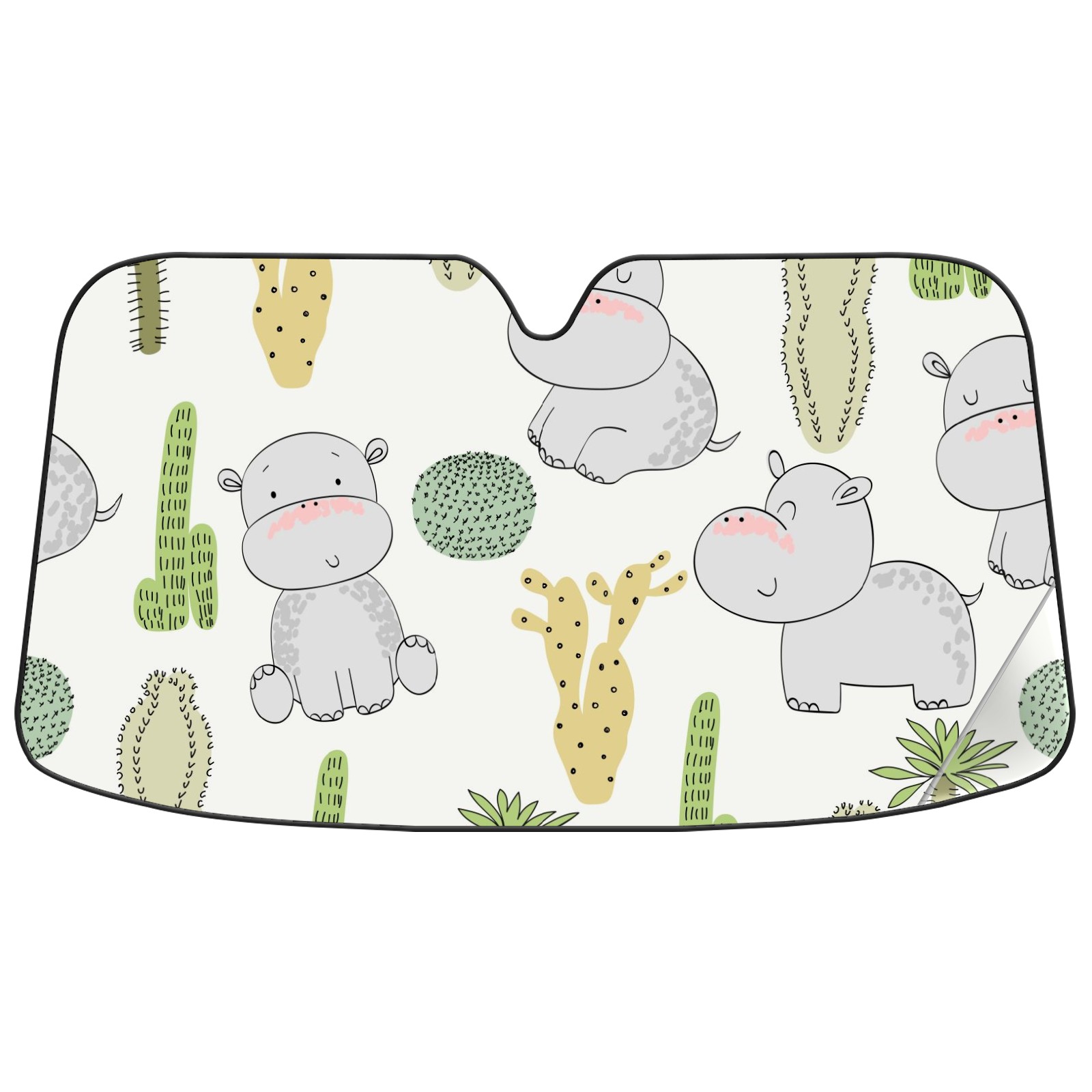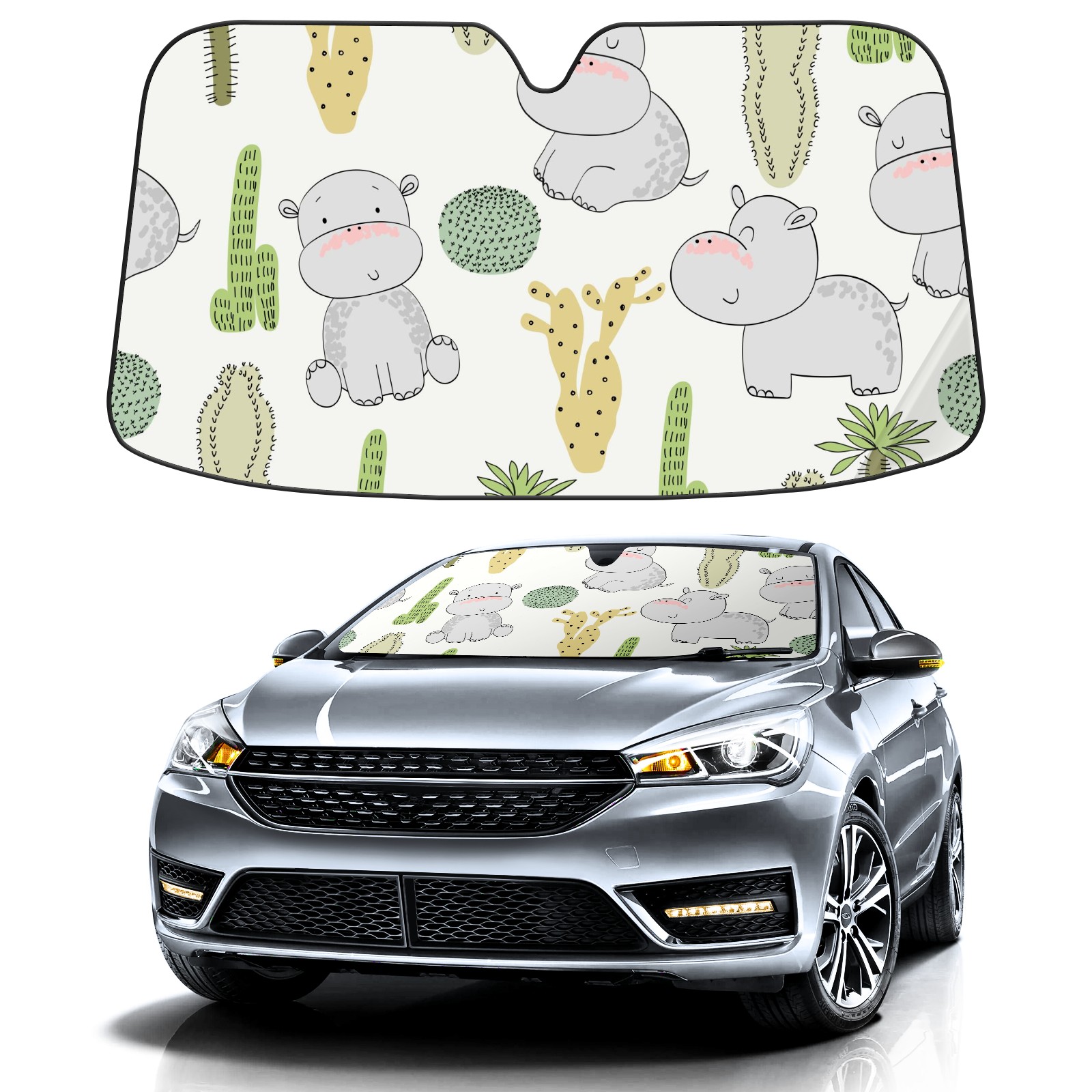 Car Windshield Sun Shade For Front Window Cute Cactus Hippo Foldable Vehicle Windshield Car Sun Visor Covers Automotive Window Protector Car Camping Privacy Sun Blocker