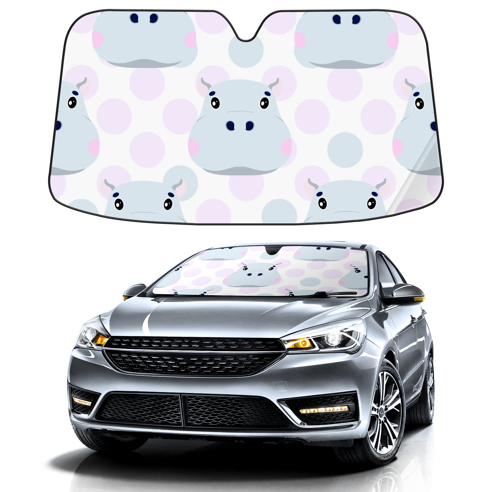 Car Windshield Sun Shade For Front Window Animals Hippopotamus Face Foldable Vehicle Windshield Car Sun Visor Covers Automotive Window Protector Car Camping Privacy Sun Blocker