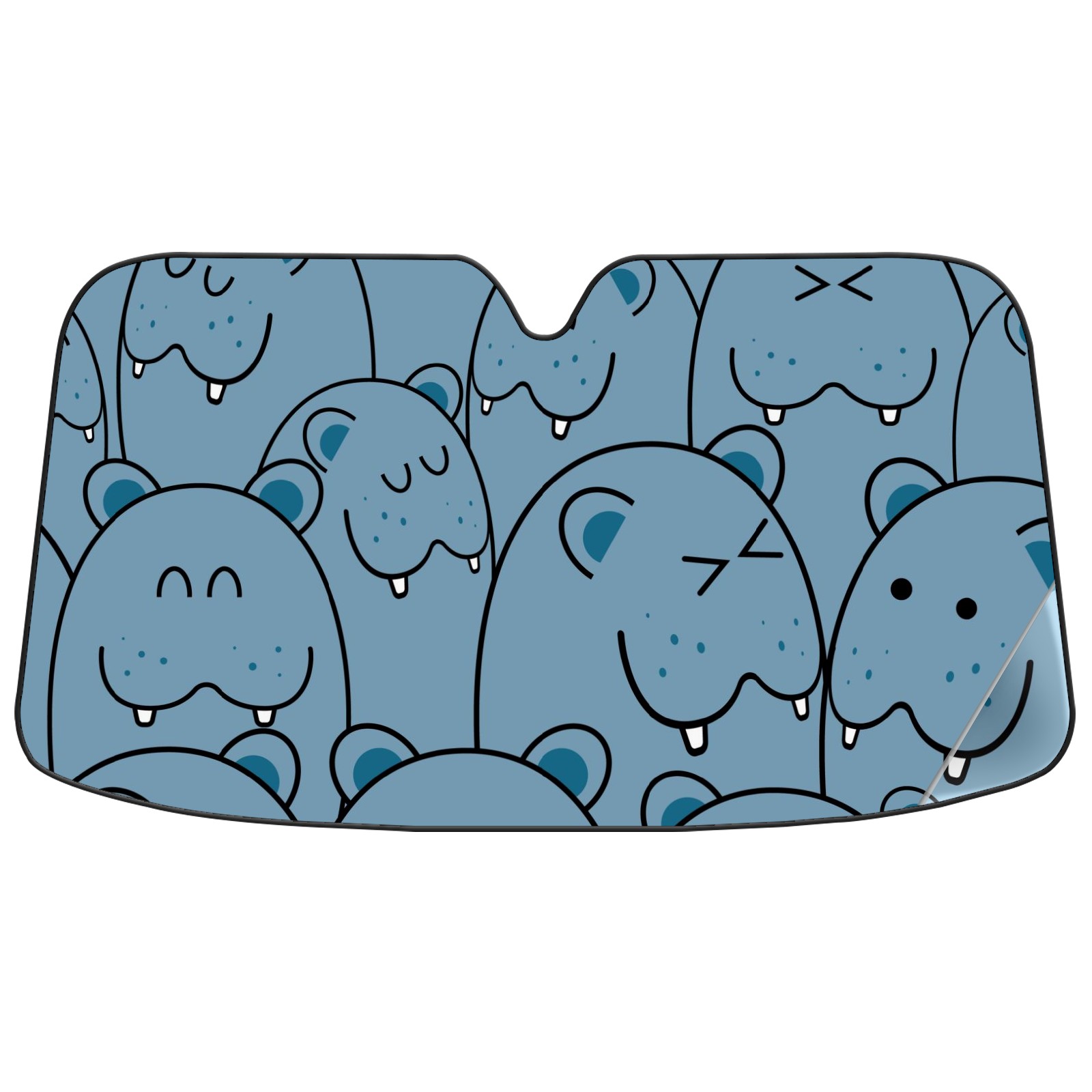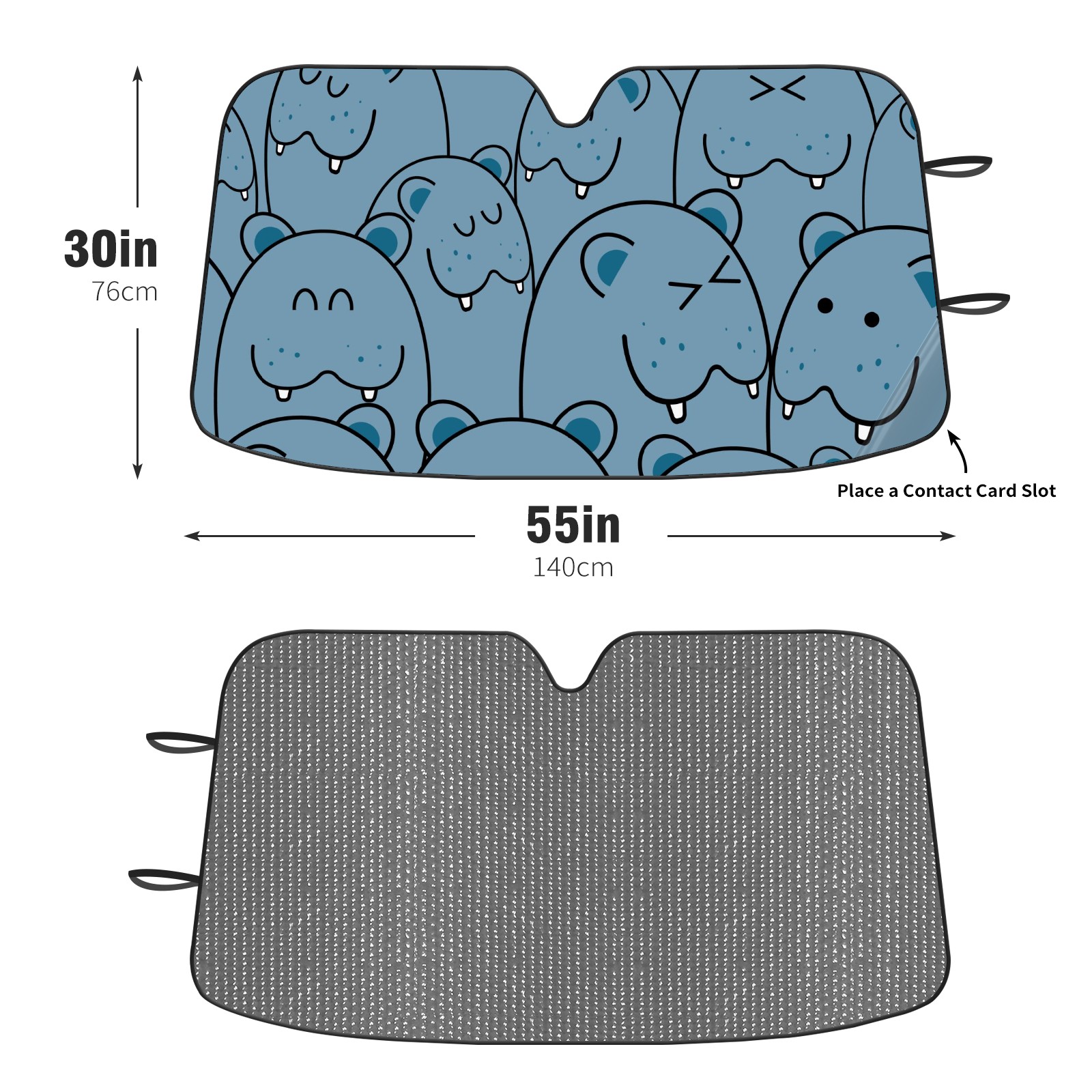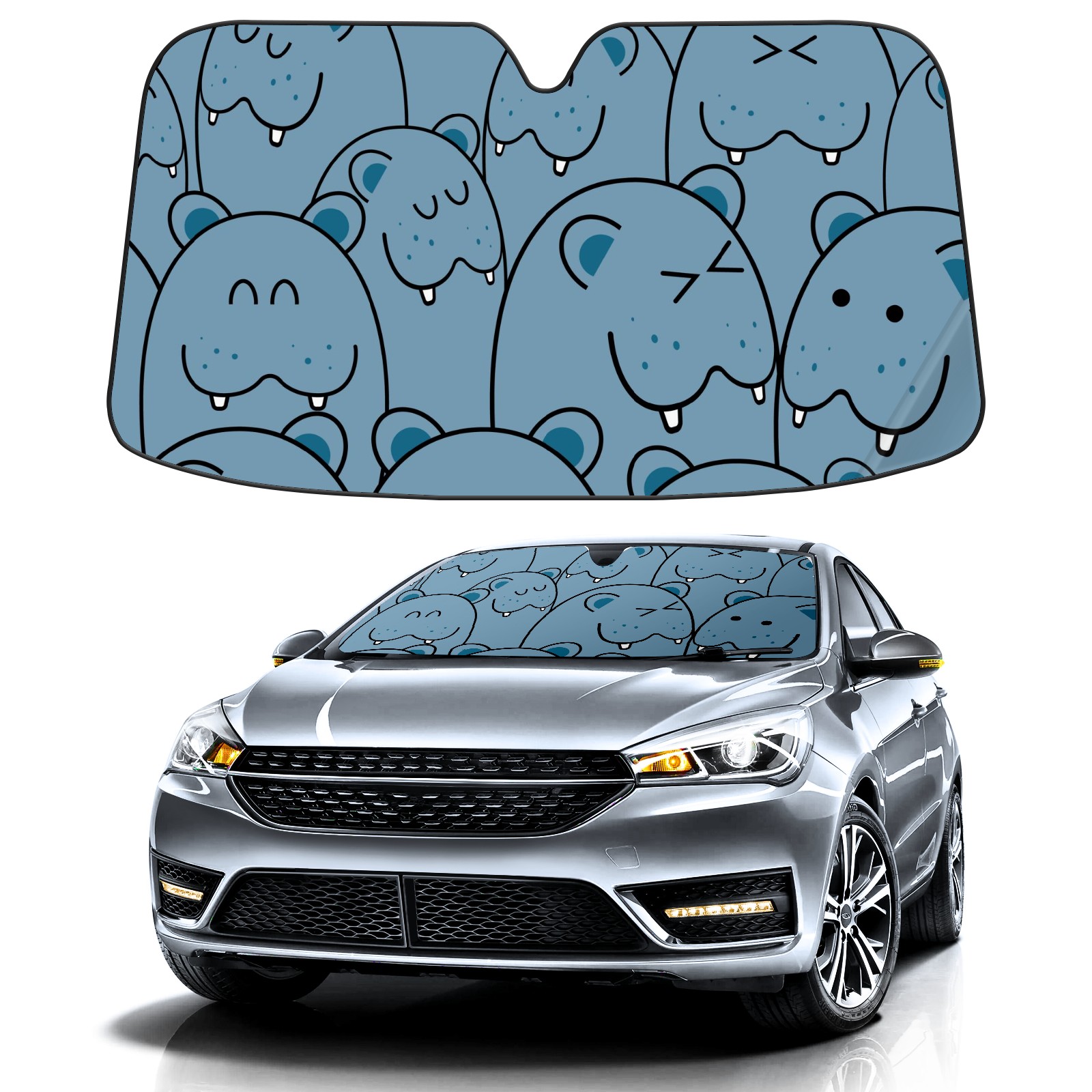 Car Windshield Sun Shade For Front Window Cute Blue Hippo Animal Foldable Vehicle Windshield Car Sun Visor Covers Automotive Window Protector Car Camping Privacy Sun Blocker