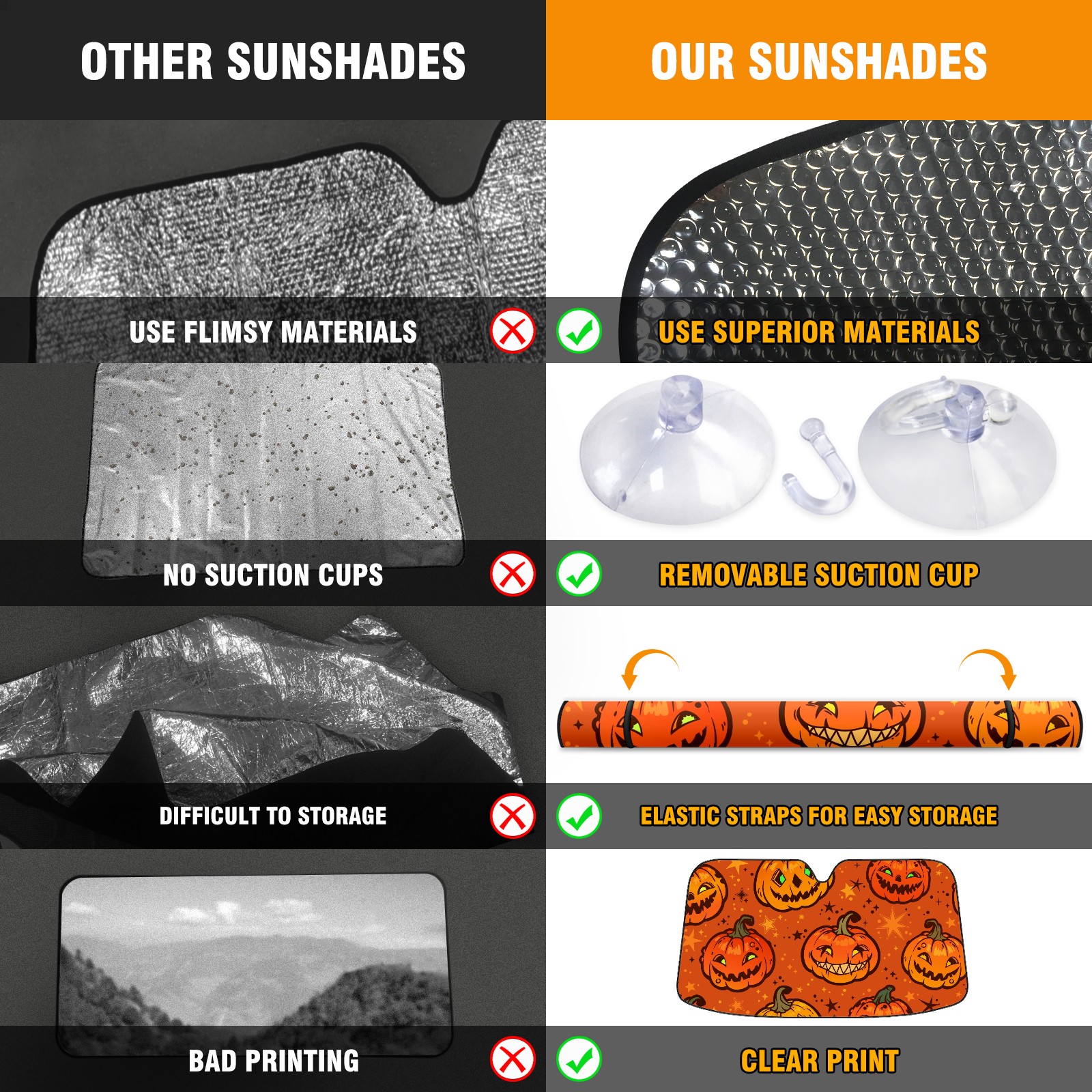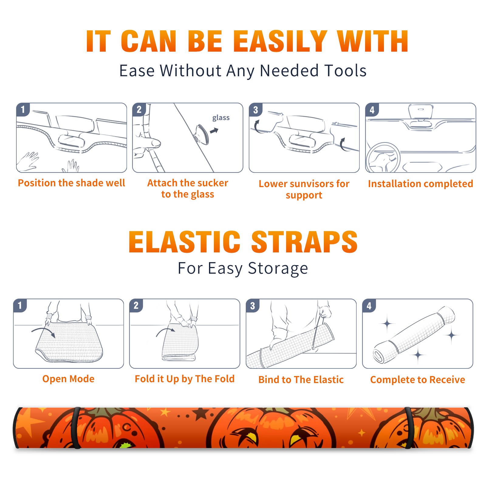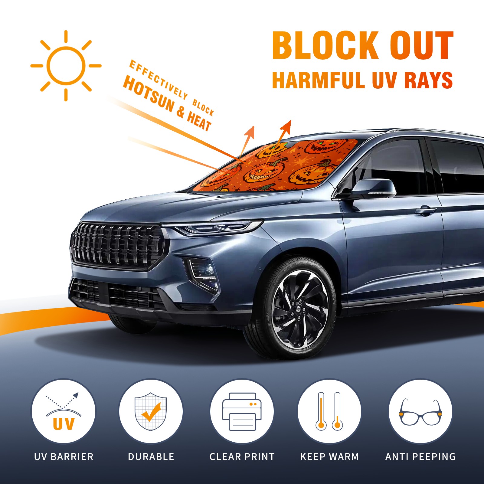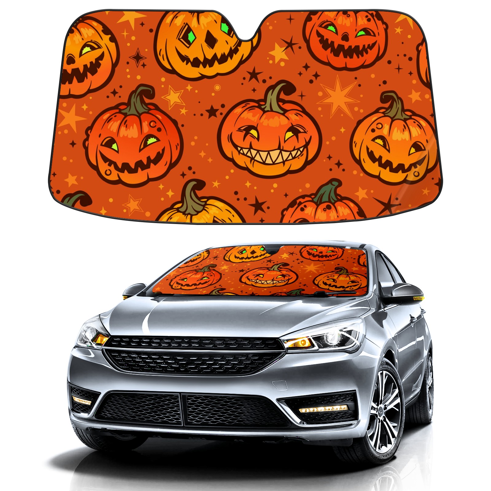 Car Windshield Sun Shade For Front Window Orange Halloween Pumpkins Stars Foldable Vehicle Windshield Car Sun Visor Covers Automotive Window Protector Car Camping Privacy Sun Blocker