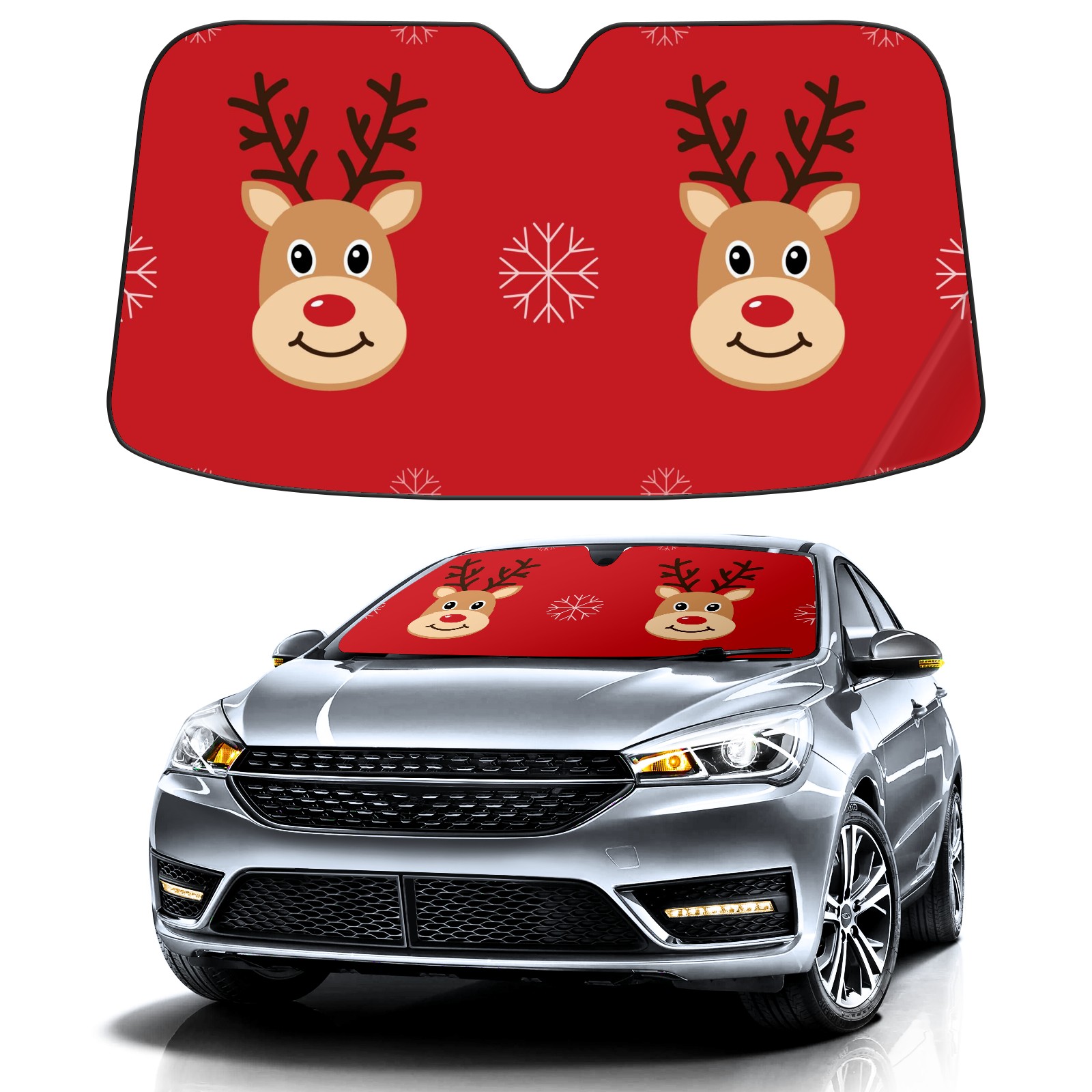 Car Windshield Sun Shade For Front Window Deer And Snowflakes Foldable Vehicle Windshield Car Sun Visor Covers Automotive Window Protector Car Camping Privacy Sun Blocker