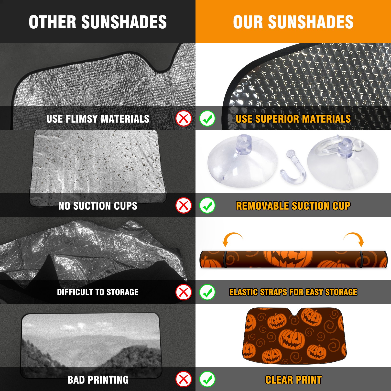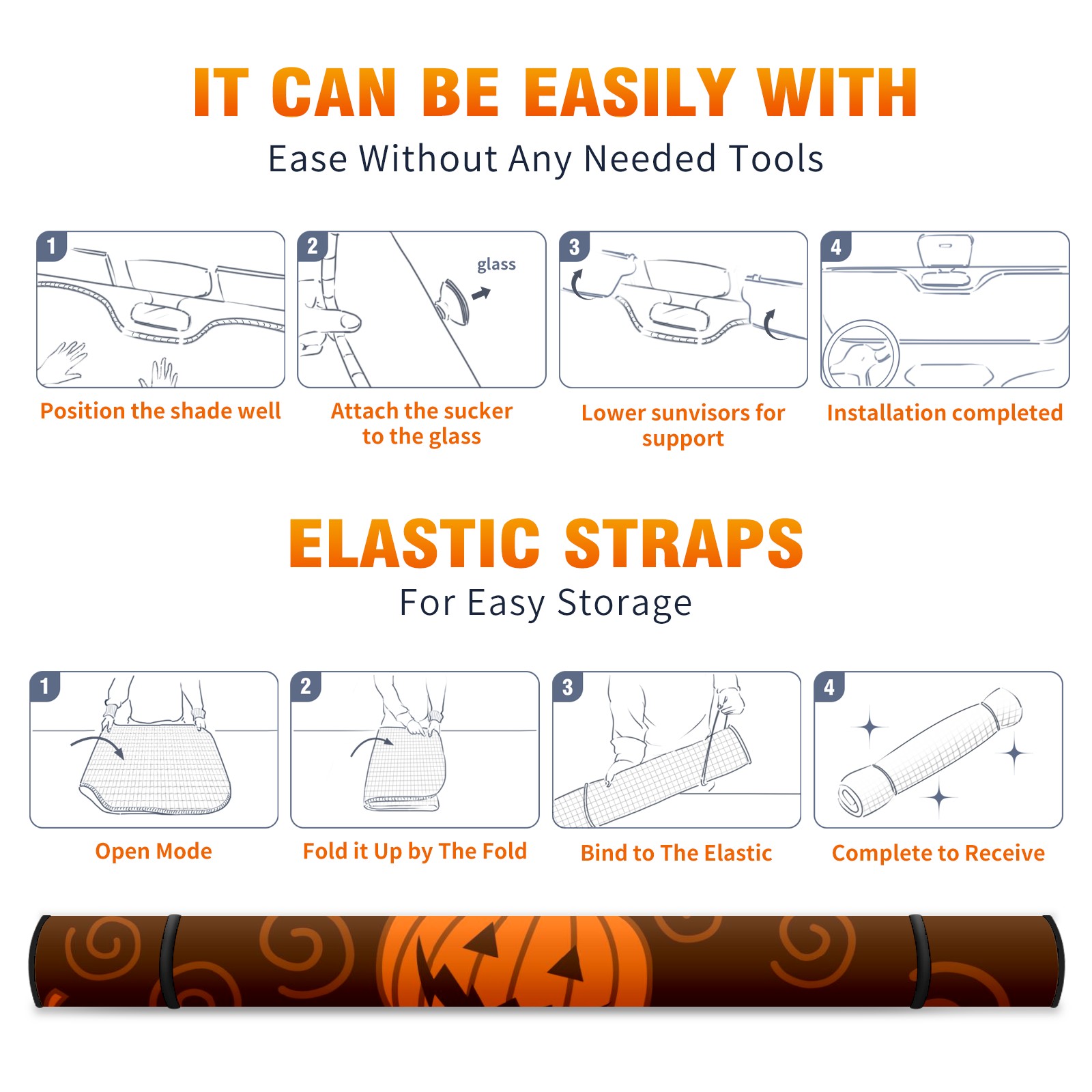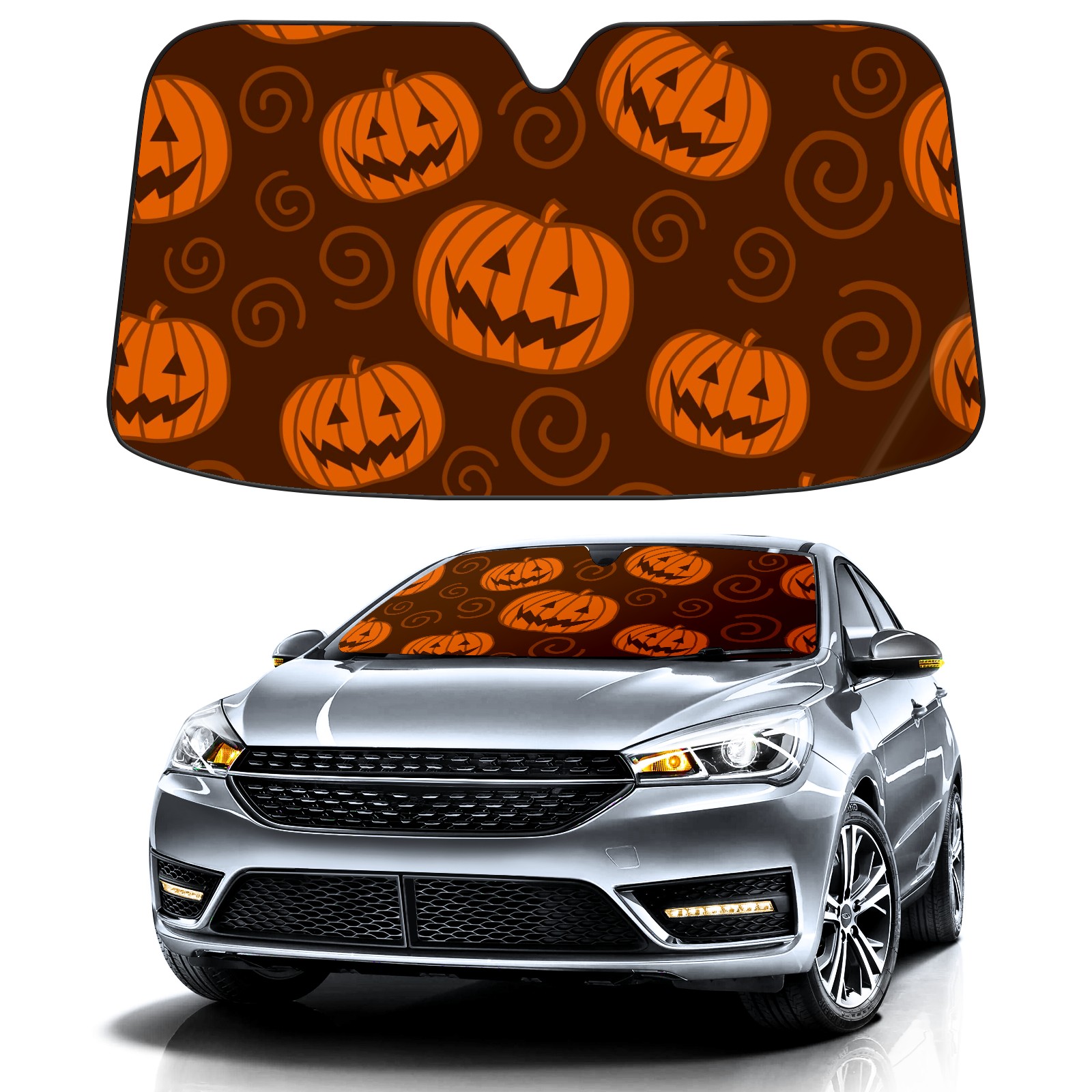 Car Windshield Sun Shade For Front Window Hallowen Orange Pumpkin Foldable Vehicle Windshield Car Sun Visor Covers Automotive Window Protector Car Camping Privacy Sun Blocker