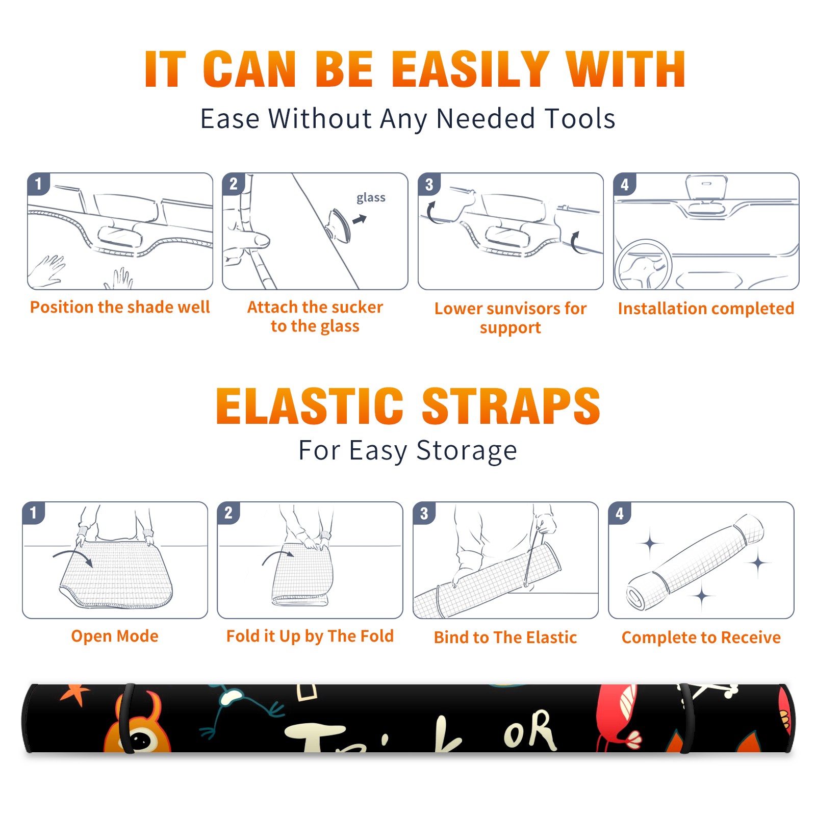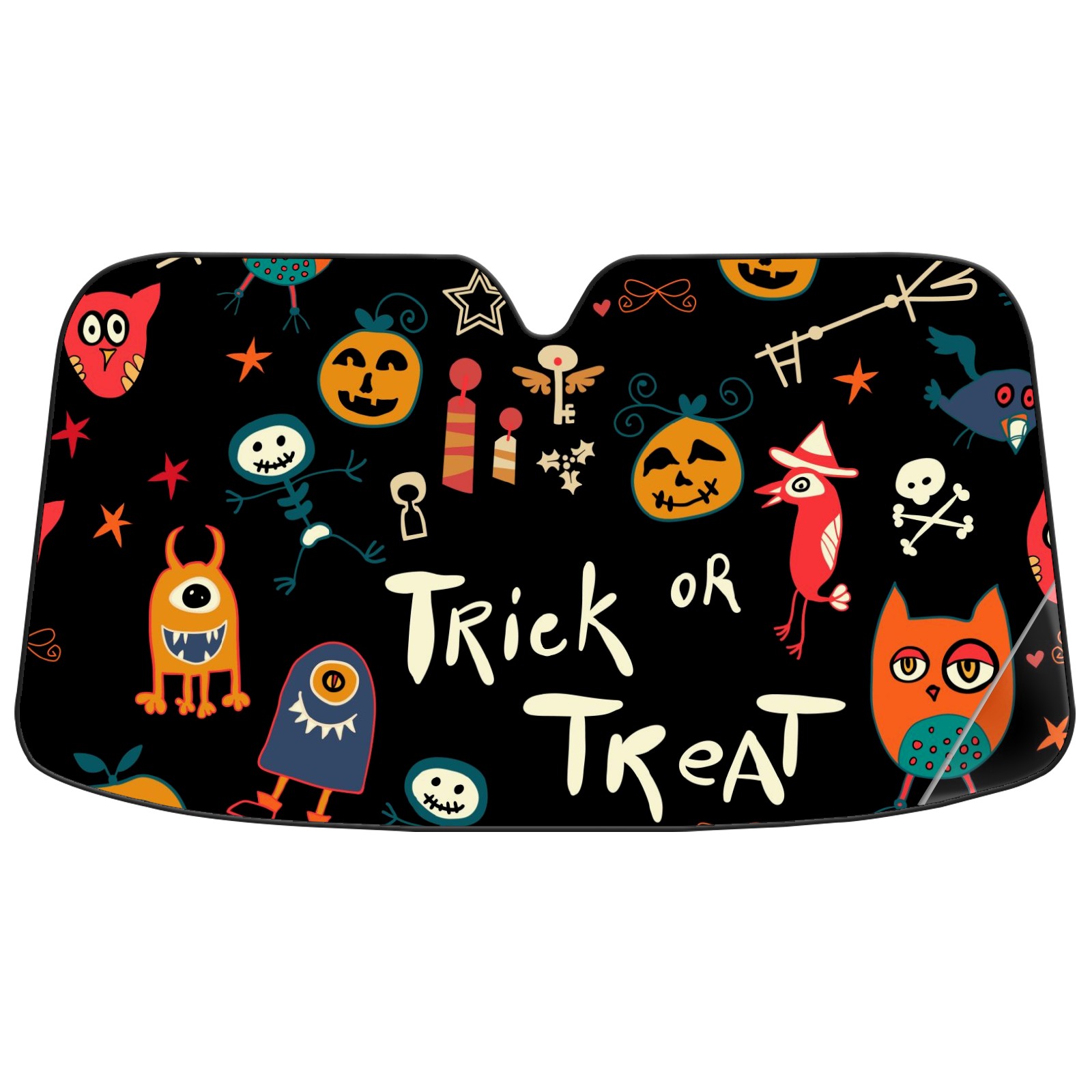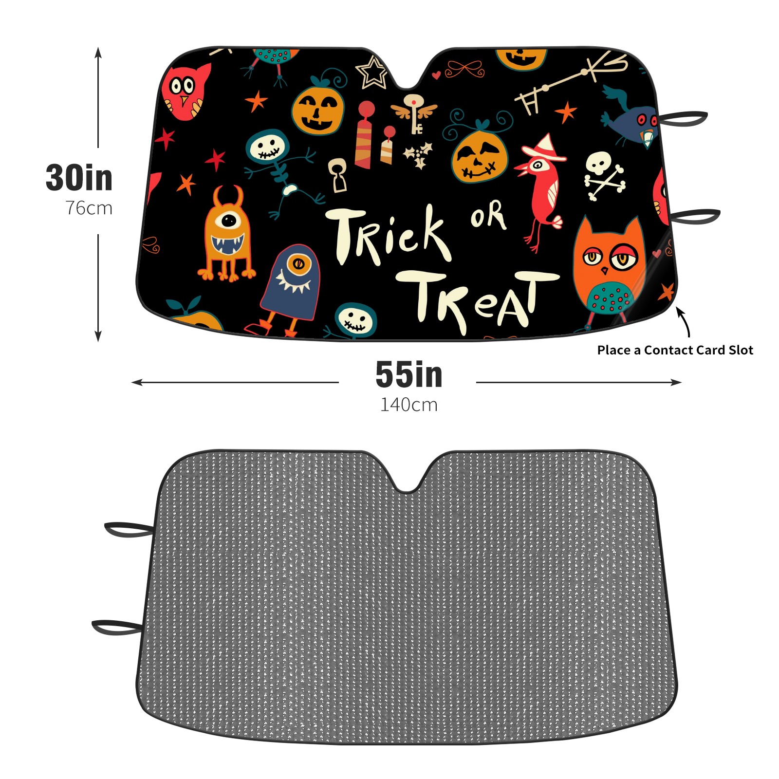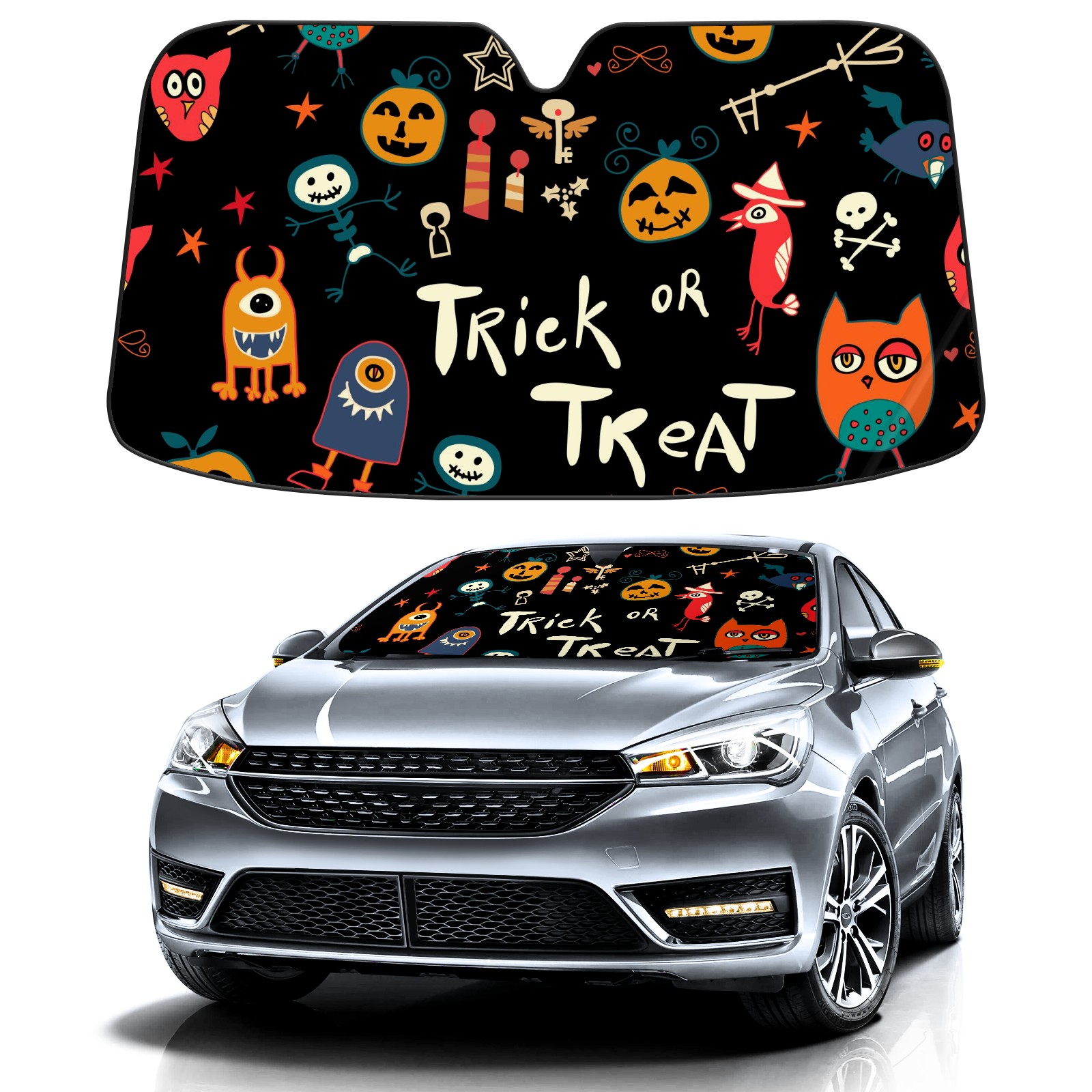 Car Windshield Sun Shade For Front Window Halloween Trick-or-Treat Pattern Foldable Vehicle Windshield Car Sun Visor Covers Automotive Window Protector Car Camping Privacy Sun Blocker