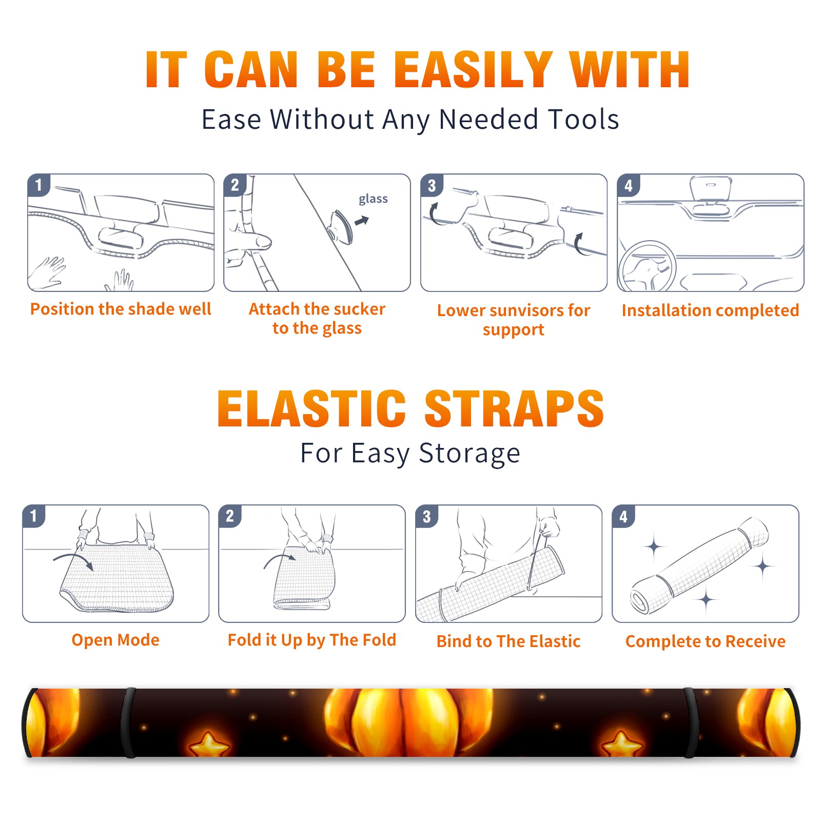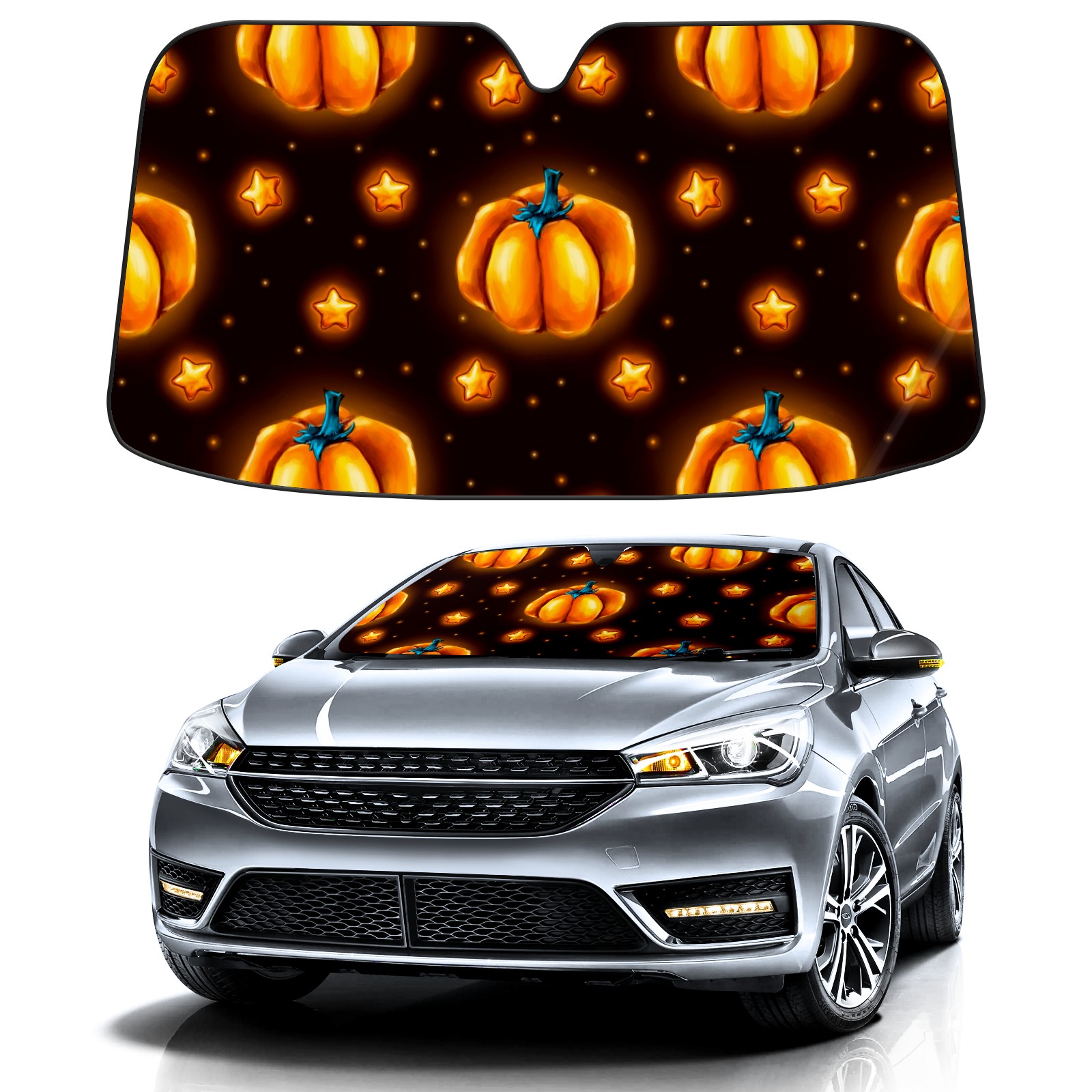 Car Windshield Sun Shade For Front Window Halloween Pumpkins Star Foldable Vehicle Windshield Car Sun Visor Covers Automotive Window Protector Car Camping Privacy Sun Blocker