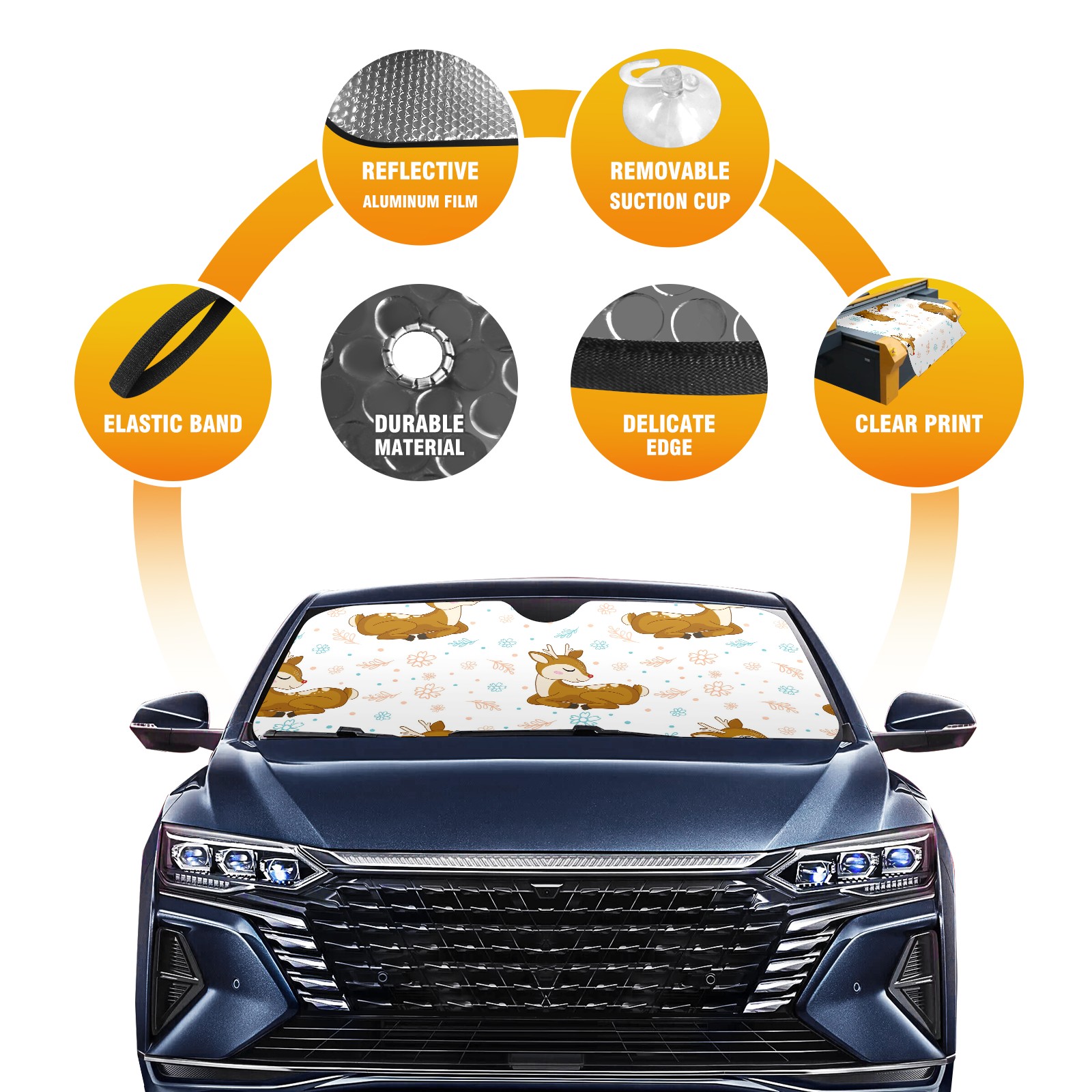 Car Windshield Sun Shade For Front Window Cute Deer Leaves Flower Foldable Vehicle Windshield Car Sun Visor Covers Automotive Window Protector Car Camping Privacy Sun Blocker