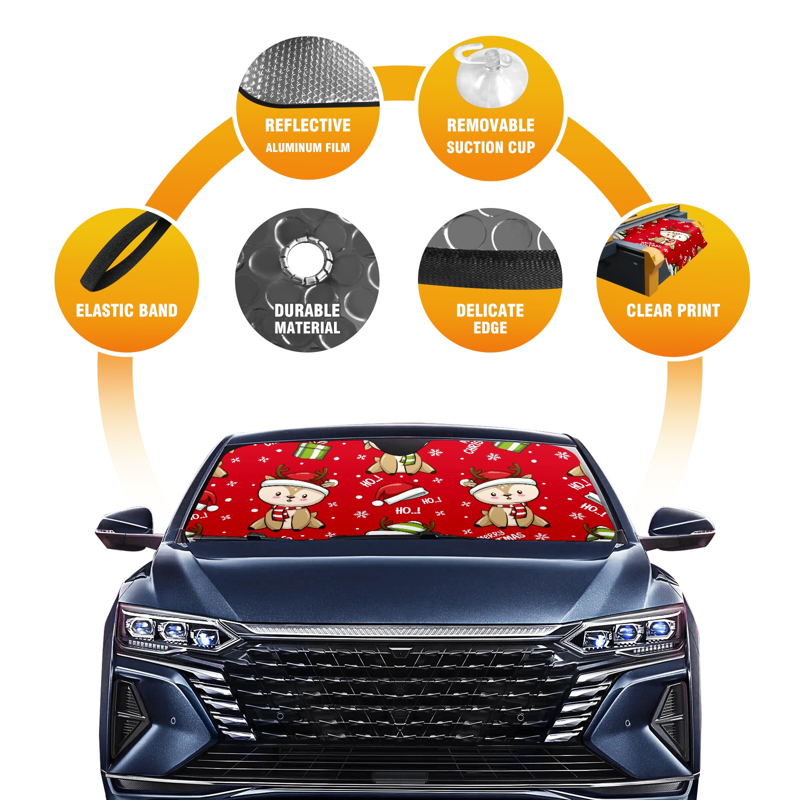 Car Windshield Sun Shade For Front Window Cute Christmas Deer Foldable Vehicle Windshield Car Sun Visor Covers Automotive Window Protector Car Camping Privacy Sun Blocker