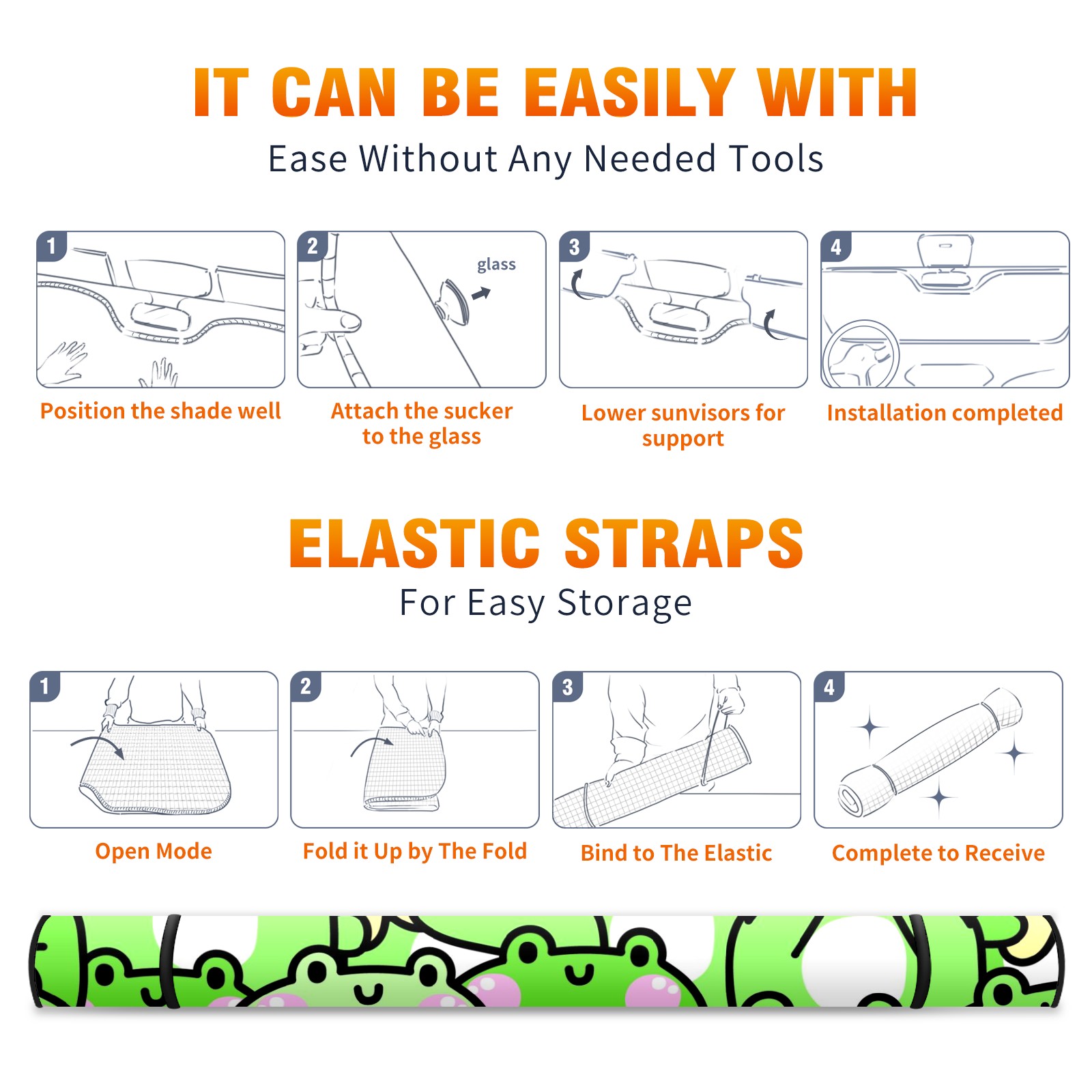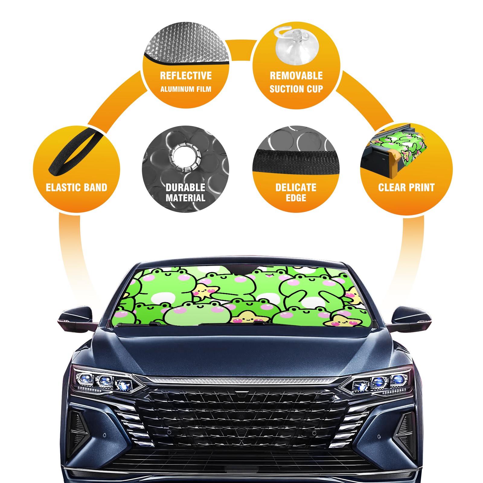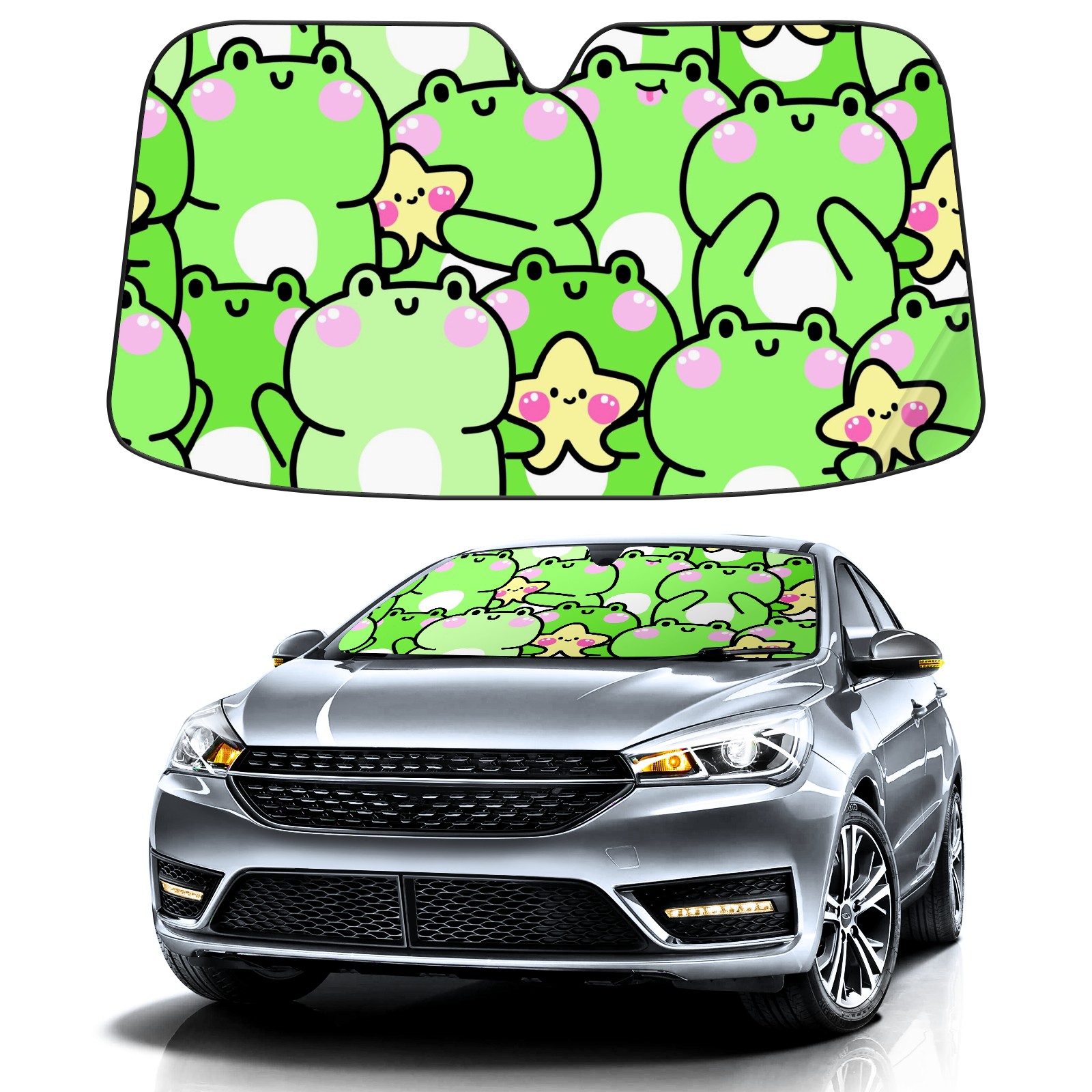 Car Windshield Sun Shade For Front Window Cute Frog Star Foldable Vehicle Windshield Car Sun Visor Covers Automotive Window Protector Car Camping Privacy Sun Blocker