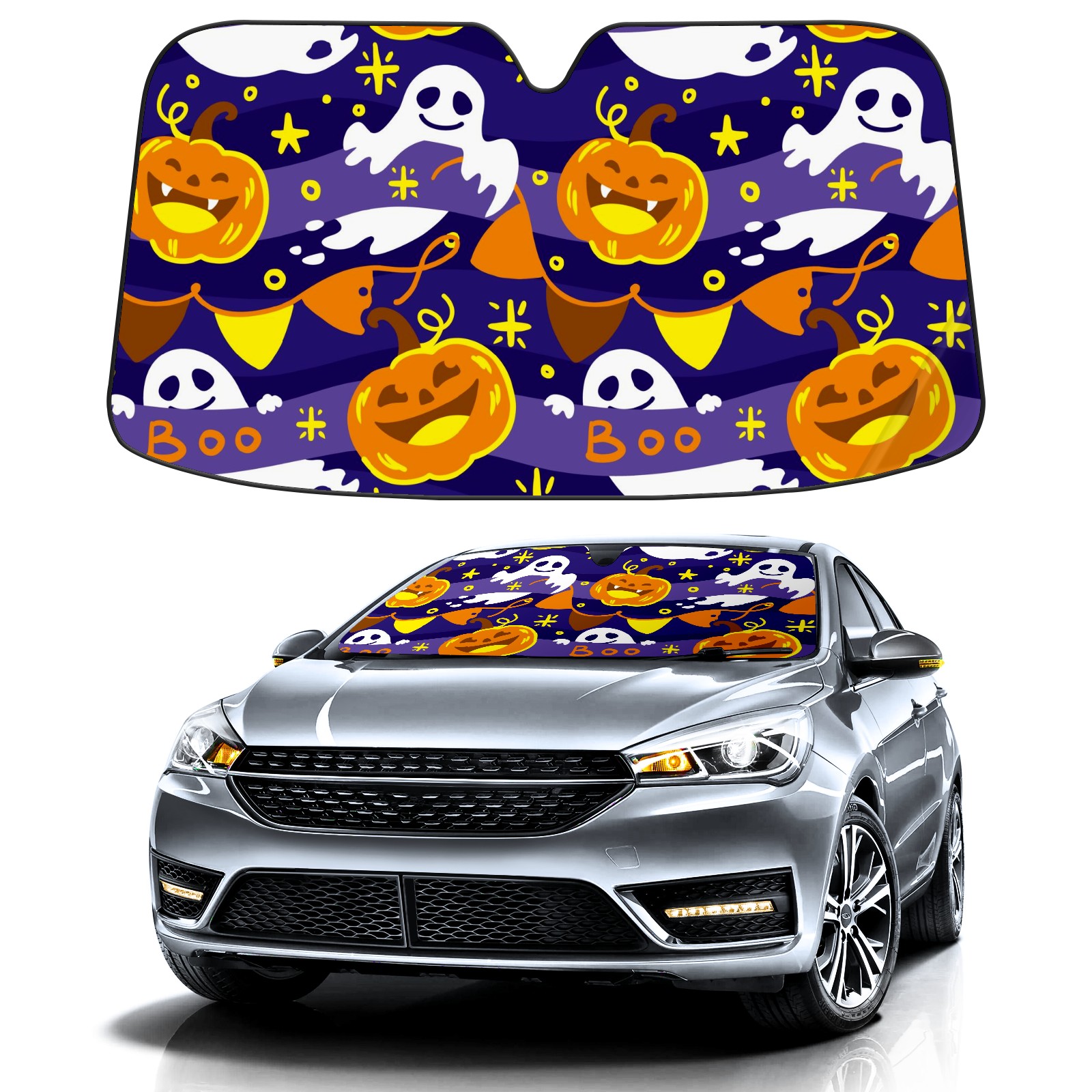 Car Windshield Sun Shade For Front Window Halloween Pumpkin And Ghost Foldable Vehicle Windshield Car Sun Visor Covers Automotive Window Protector Car Camping Privacy Sun Blocker