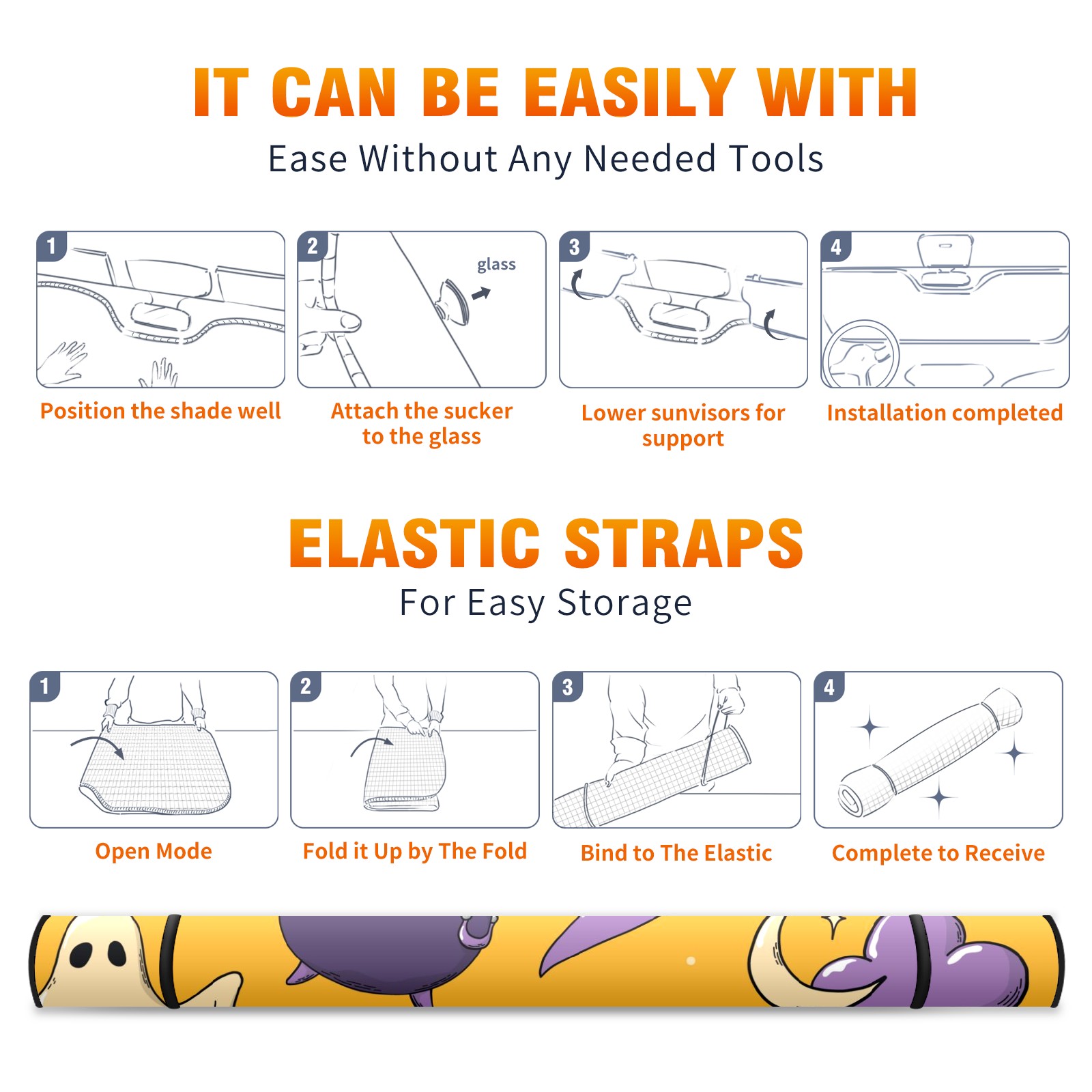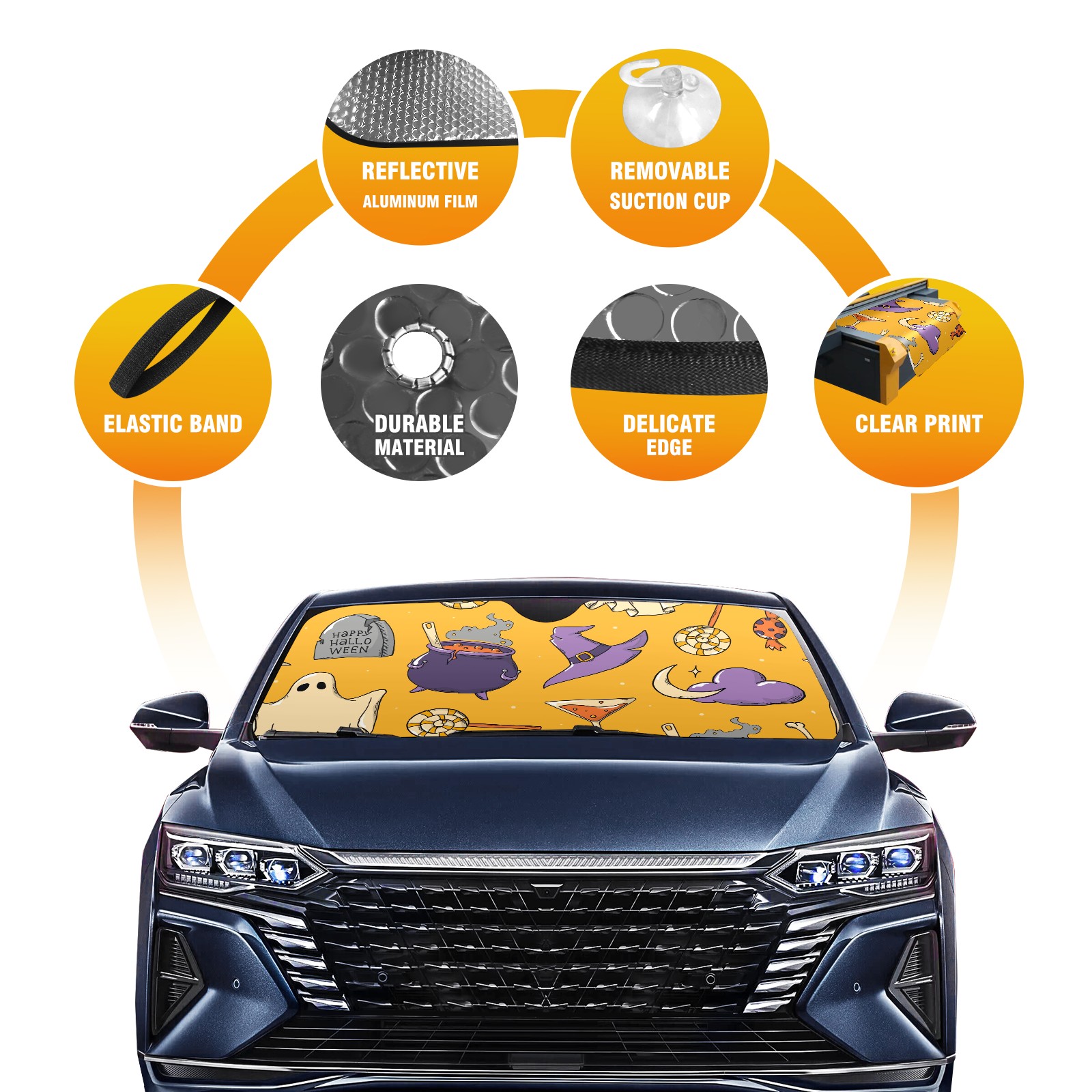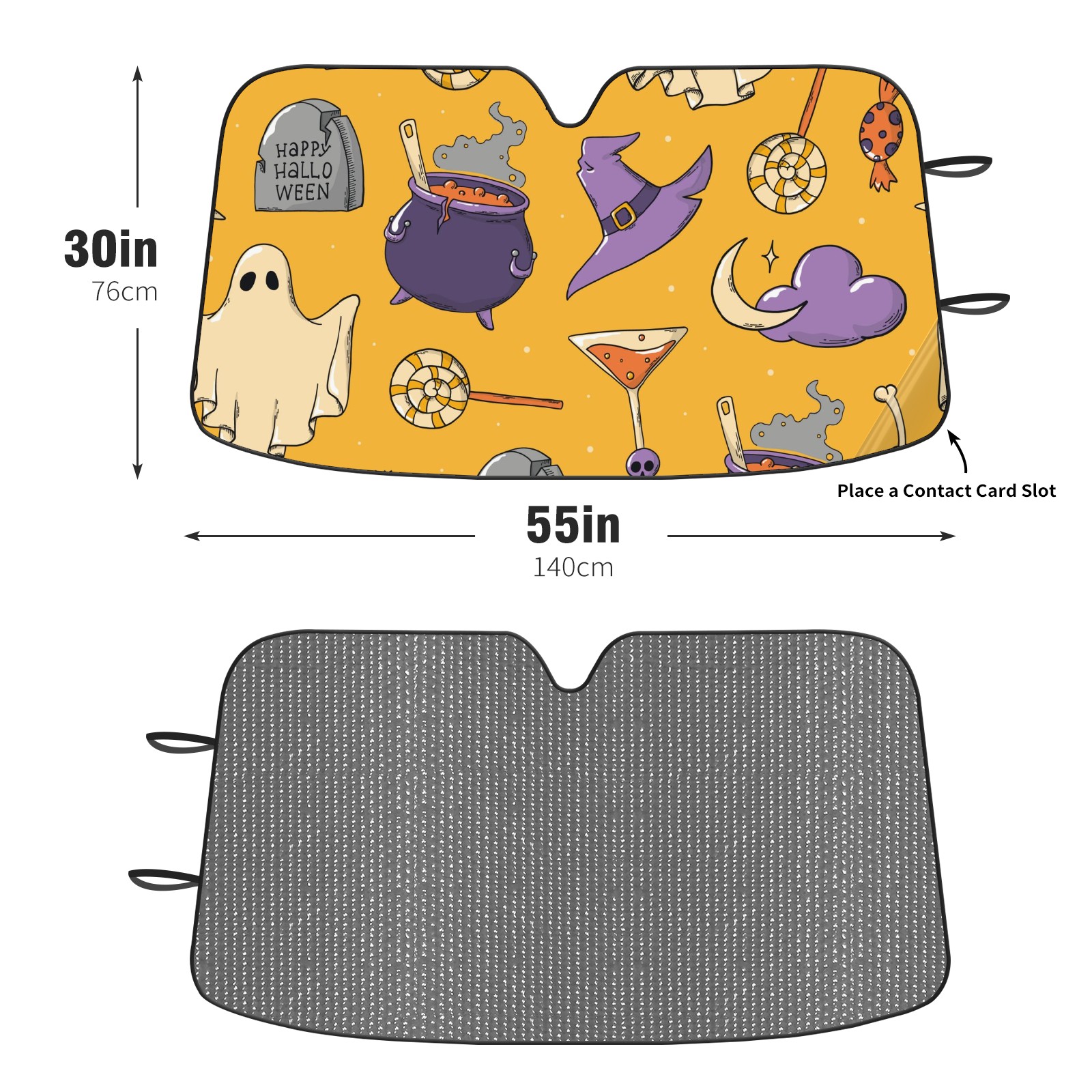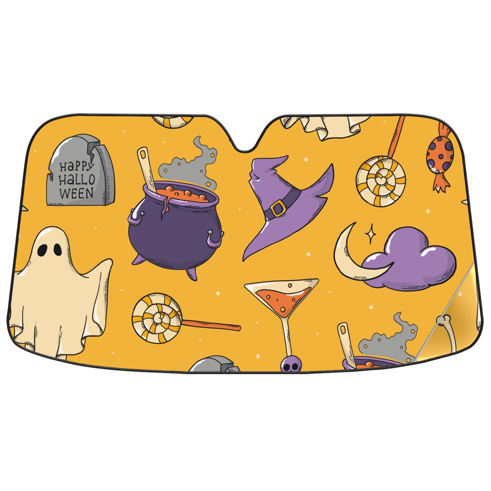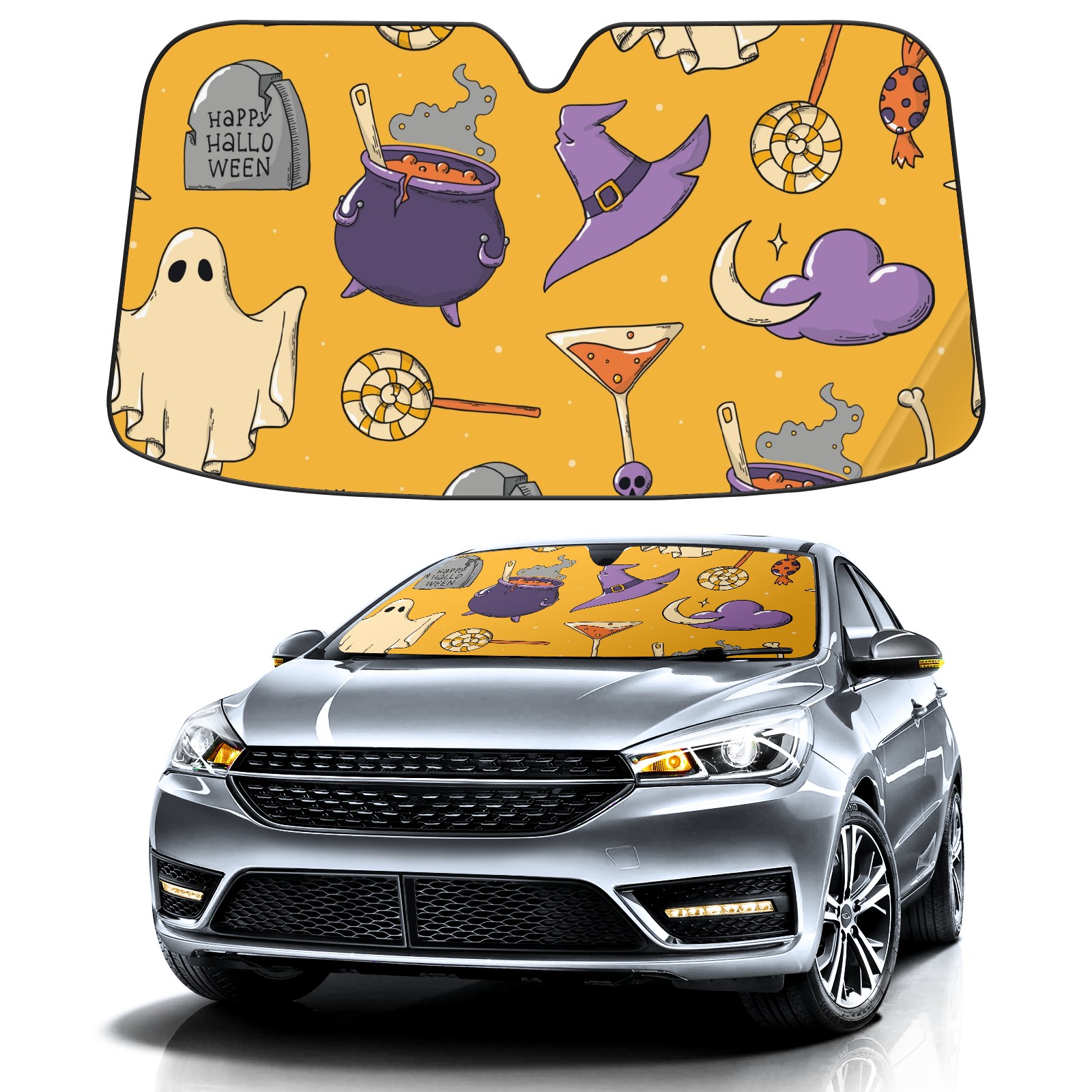 Car Windshield Sun Shade For Front Window Halloween Ghost Candy Doodle Foldable Vehicle Windshield Car Sun Visor Covers Automotive Window Protector Car Camping Privacy Sun Blocker