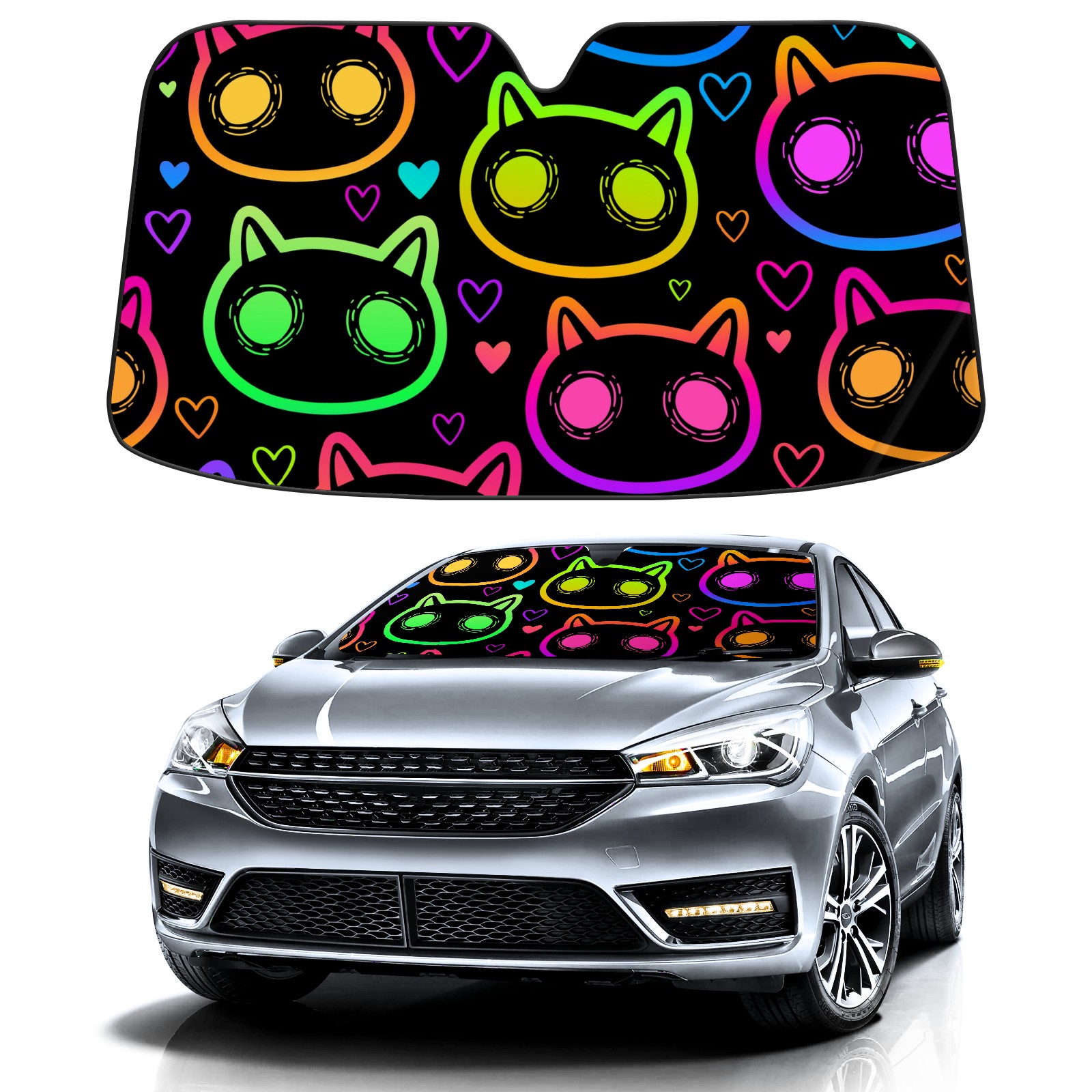 Car Windshield Sun Shade For Front Window Halloween Cute Witchcraft Cat Foldable Vehicle Windshield Car Sun Visor Covers Automotive Window Protector Car Camping Privacy Sun Blocker