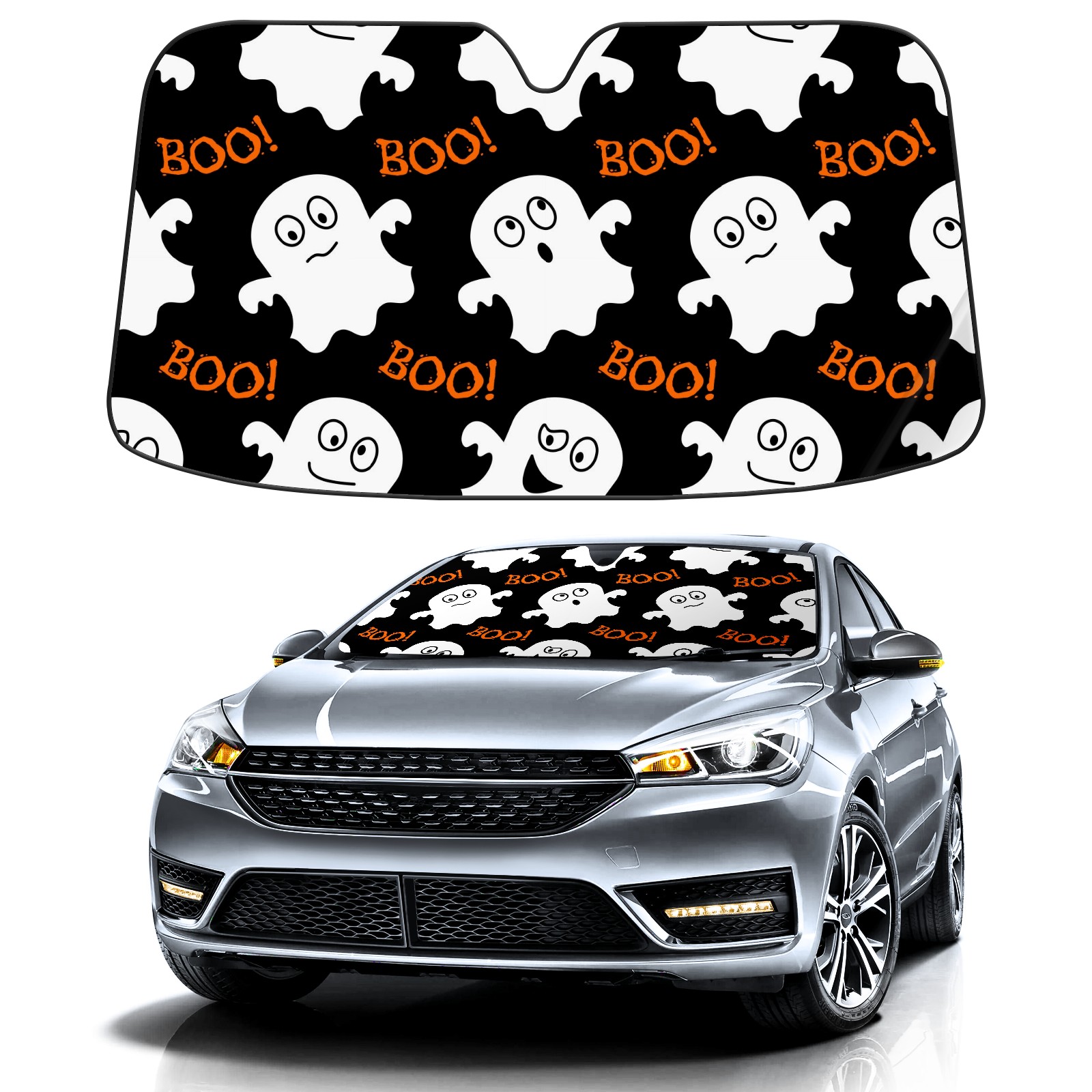 Car Windshield Sun Shade For Front Window Halloween Cute Ghosts Foldable Vehicle Windshield Car Sun Visor Covers Automotive Window Protector Car Camping Privacy Sun Blocker