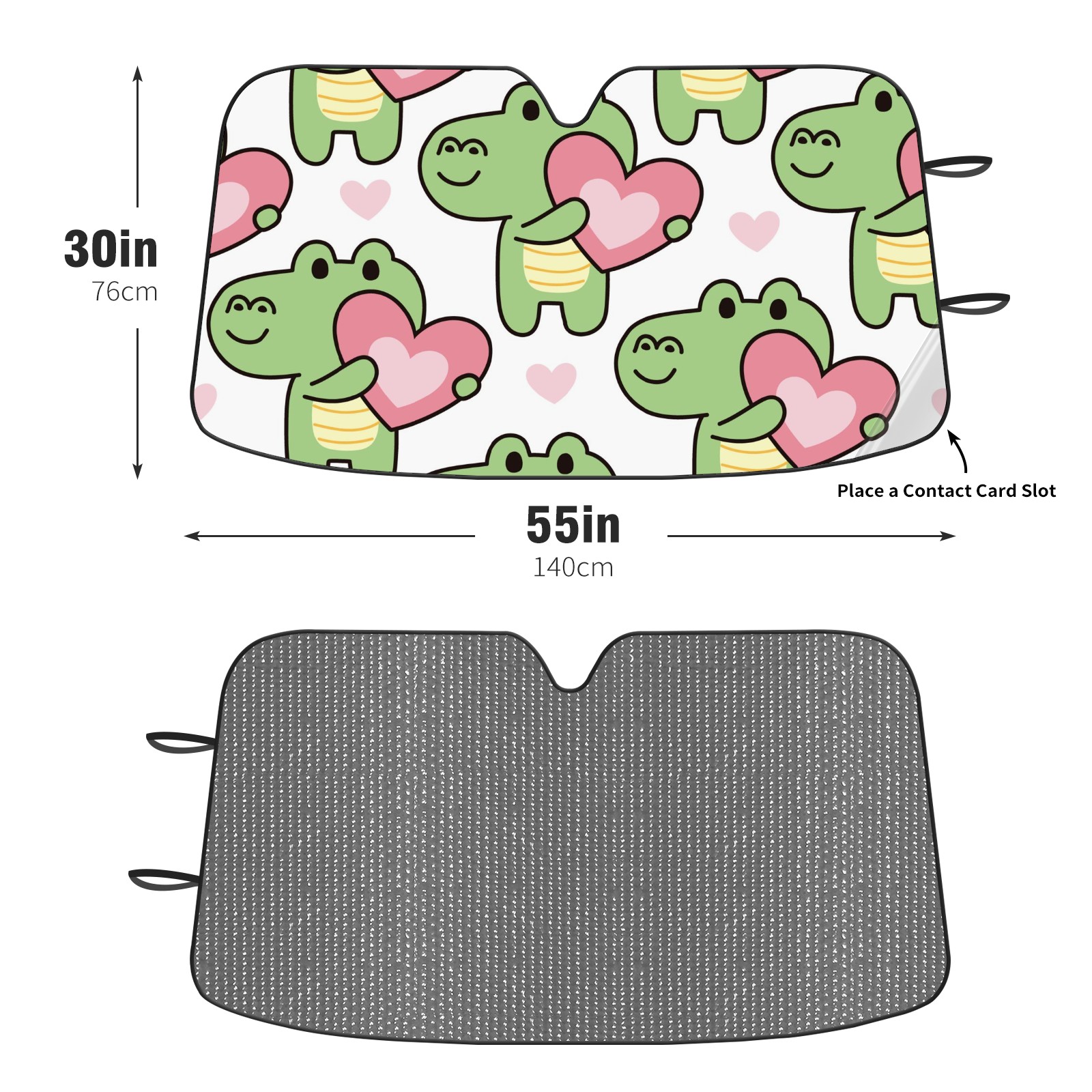 Car Windshield Sun Shade For Front Window Cute Crocodile Hold Heart Foldable Vehicle Windshield Car Sun Visor Covers Automotive Window Protector Car Camping Privacy Sun Blocker