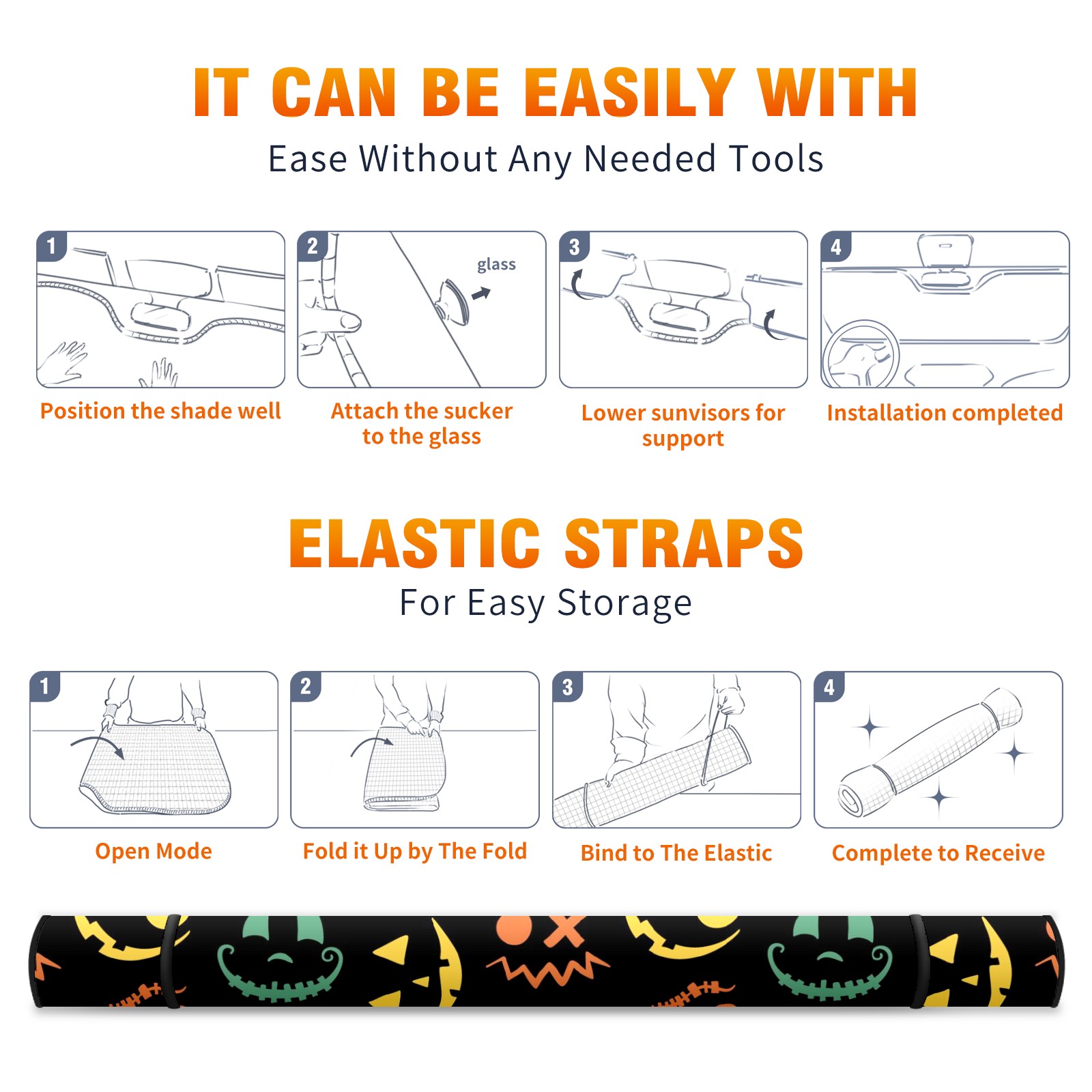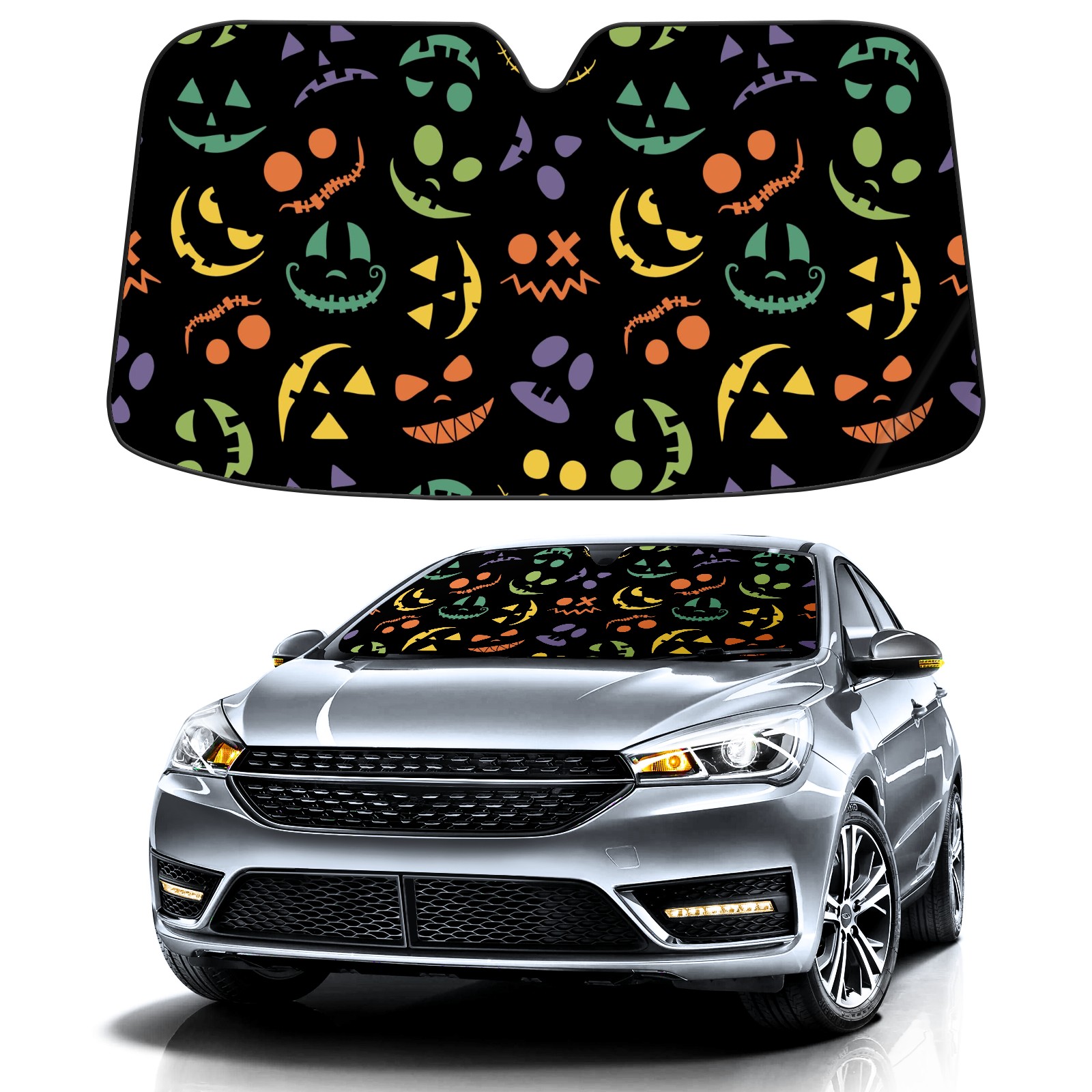 Car Windshield Sun Shade For Front Window Halloween Pumpkin Face On Black Background Foldable Vehicle Windshield Car Sun Visor Covers Automotive Window Protector Car Camping Privacy Sun Blocker