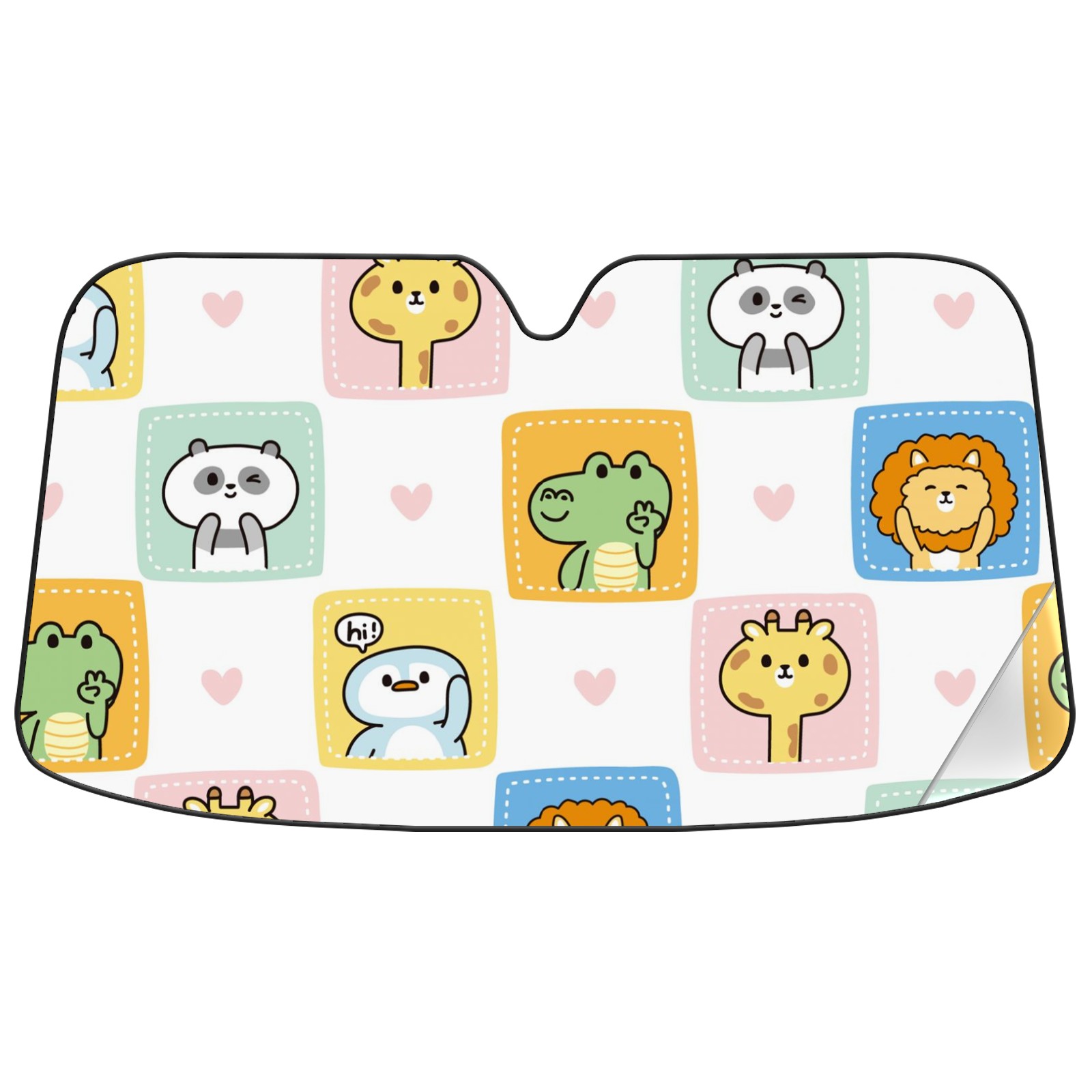 Car Windshield Sun Shade For Front Window Cute Animal Lion Panda Bear Crocodile Foldable Vehicle Windshield Car Sun Visor Covers Automotive Window Protector Car Camping Privacy Sun Blocker