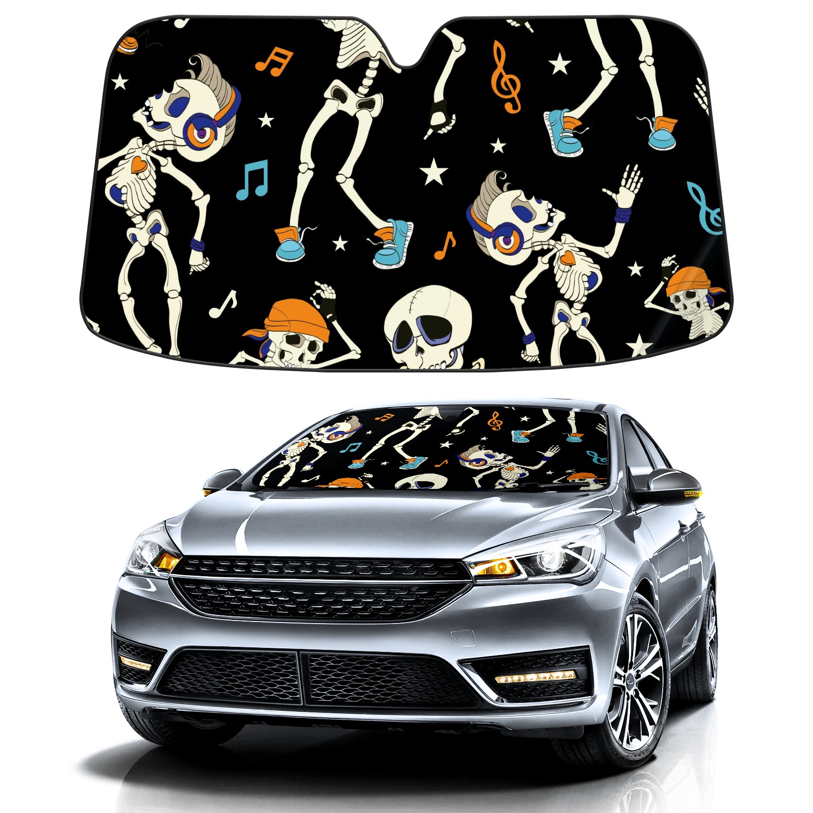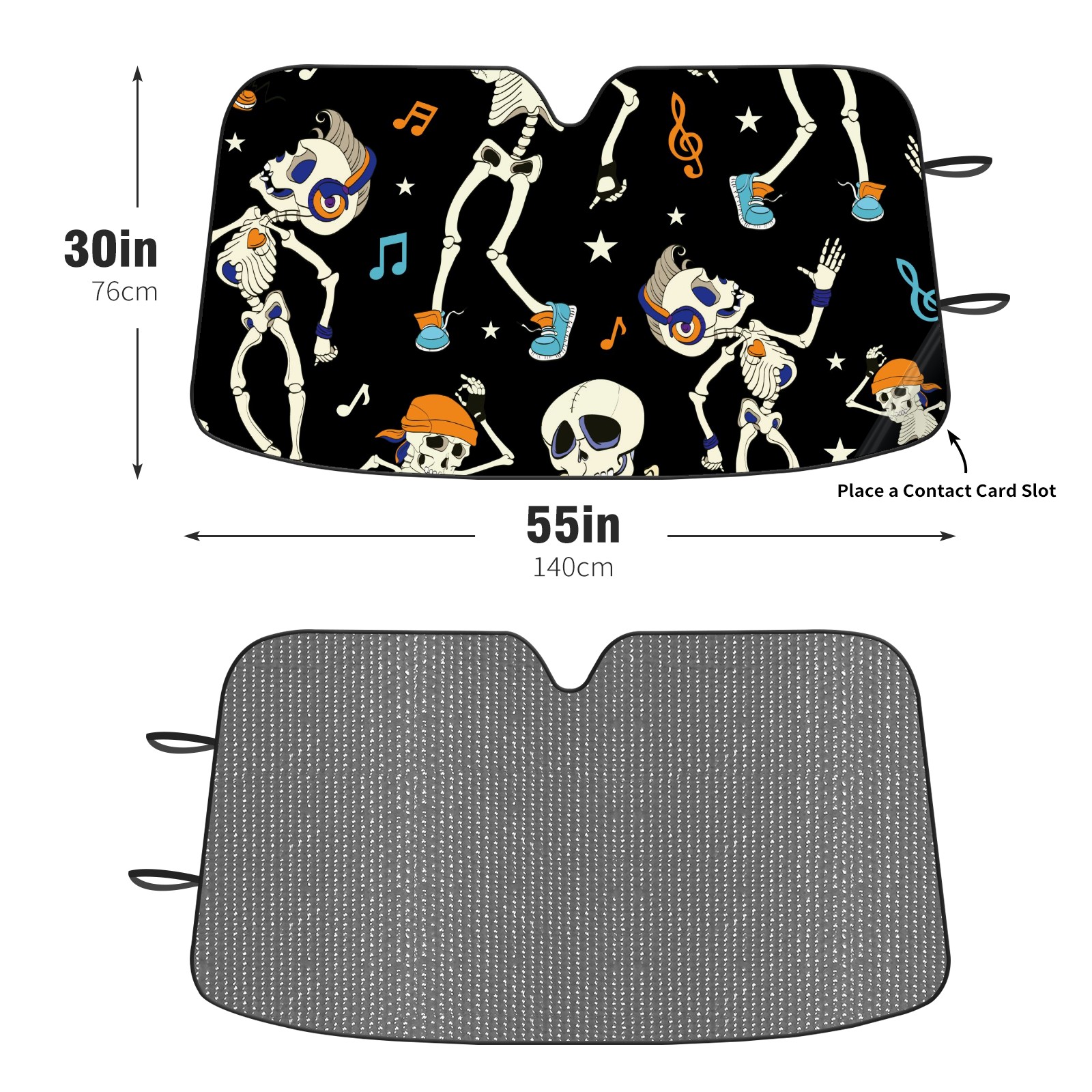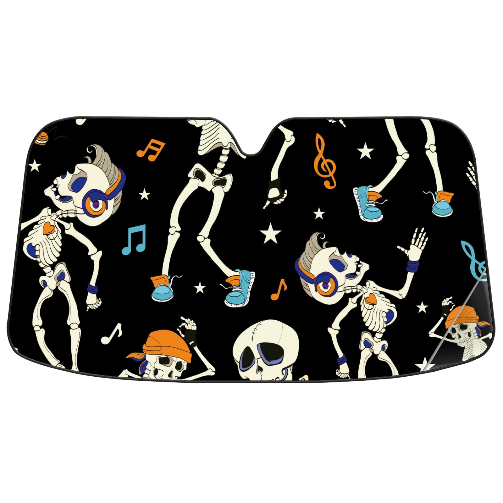 Car Windshield Sun Shade For Front Window Dancing Skeleton Halloween Foldable Vehicle Windshield Car Sun Visor Covers Automotive Window Protector Car Camping Privacy Sun Blocker