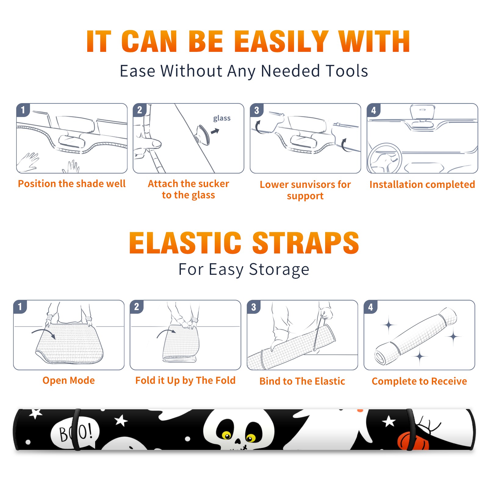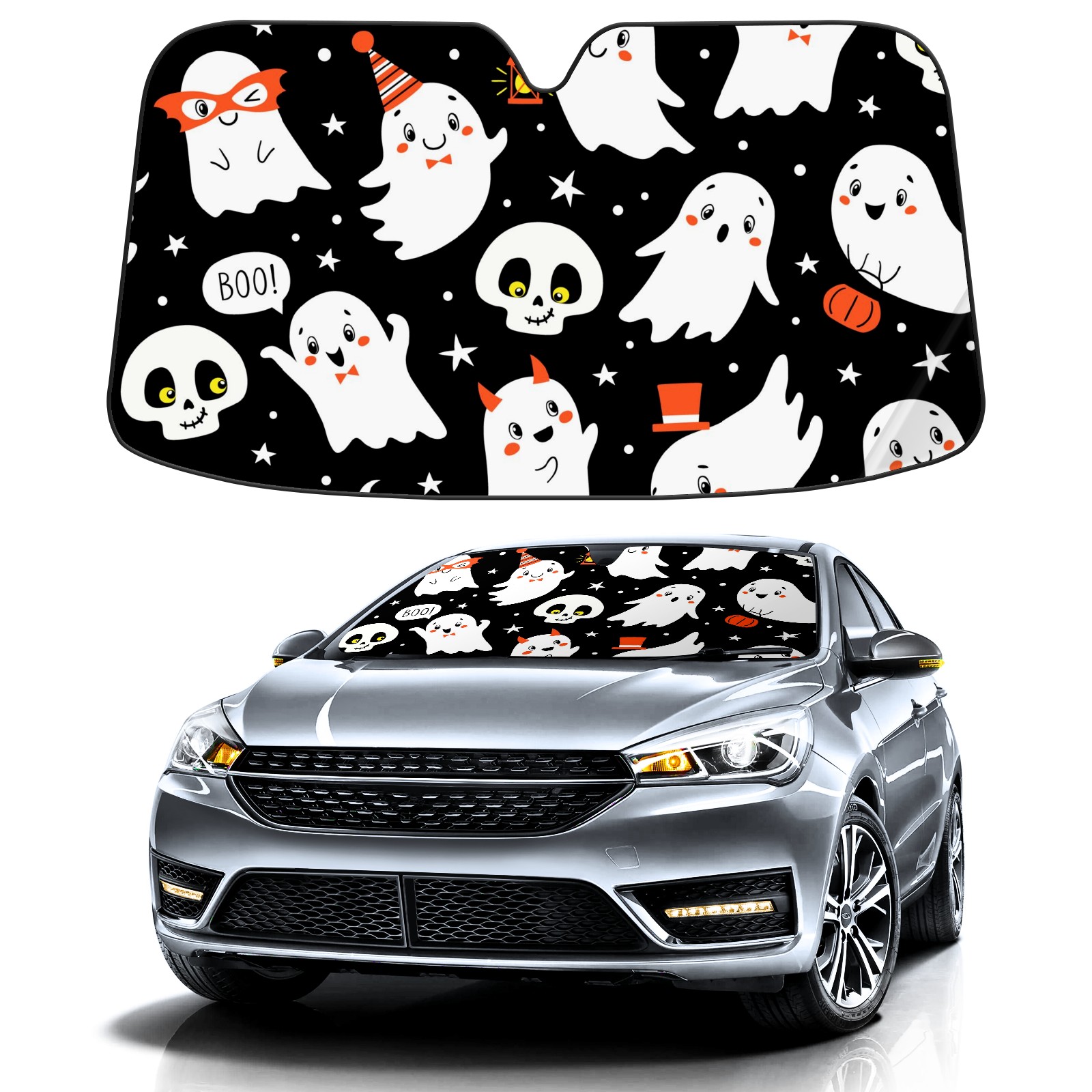 Car Windshield Sun Shade For Front Window Cute Ghosts And Skulls On Black Background Foldable Vehicle Windshield Car Sun Visor Covers Automotive Window Protector Car Camping Privacy Sun Blocker