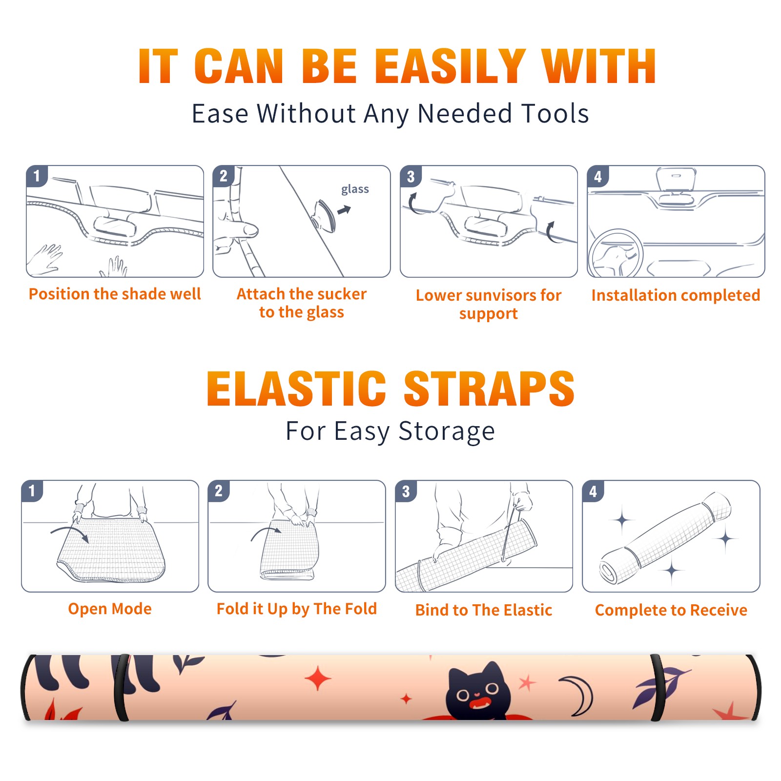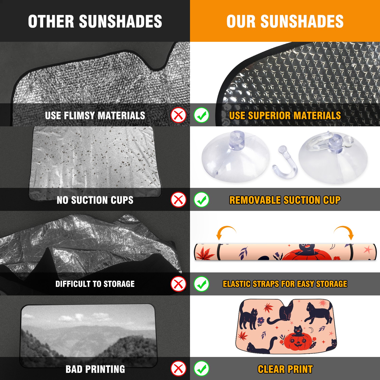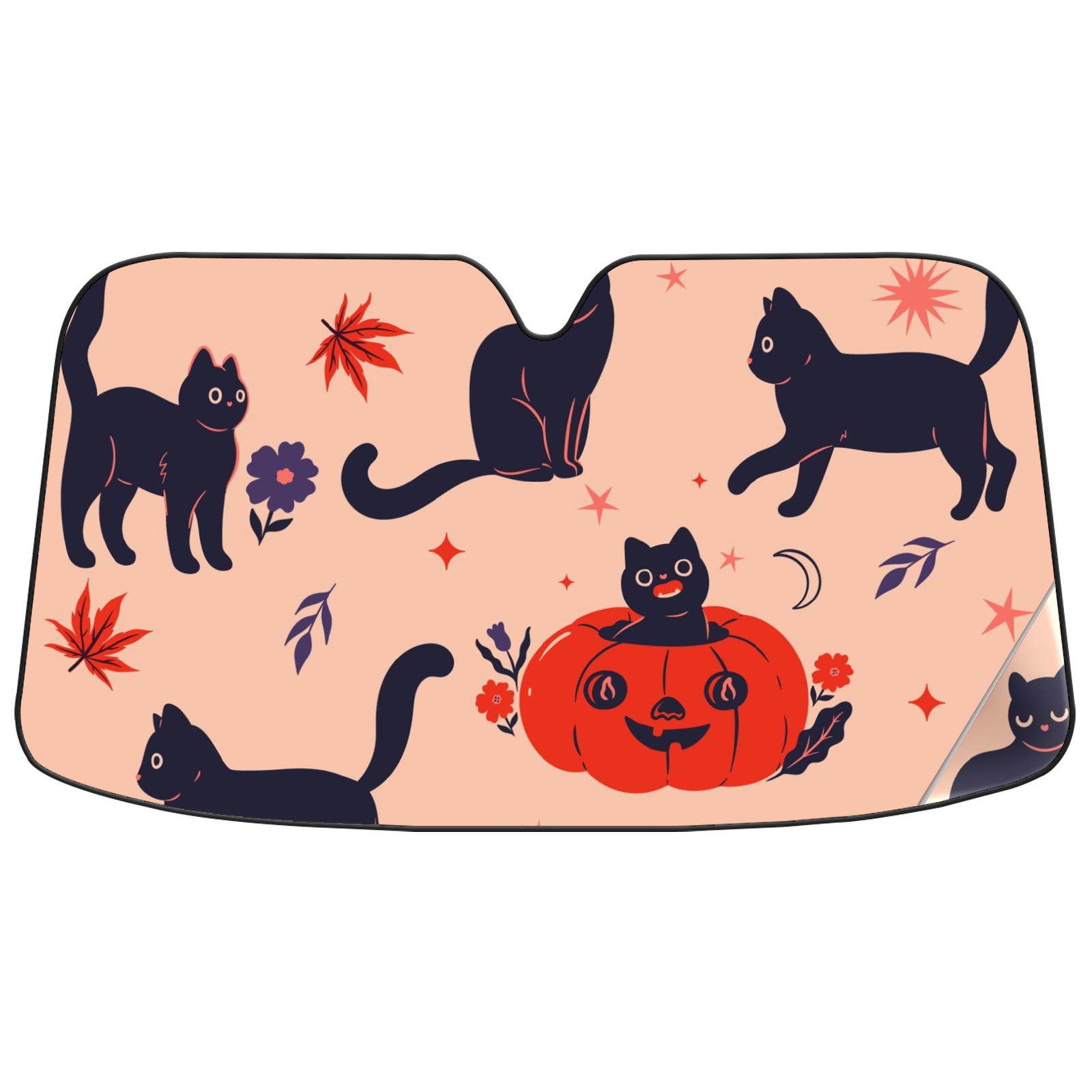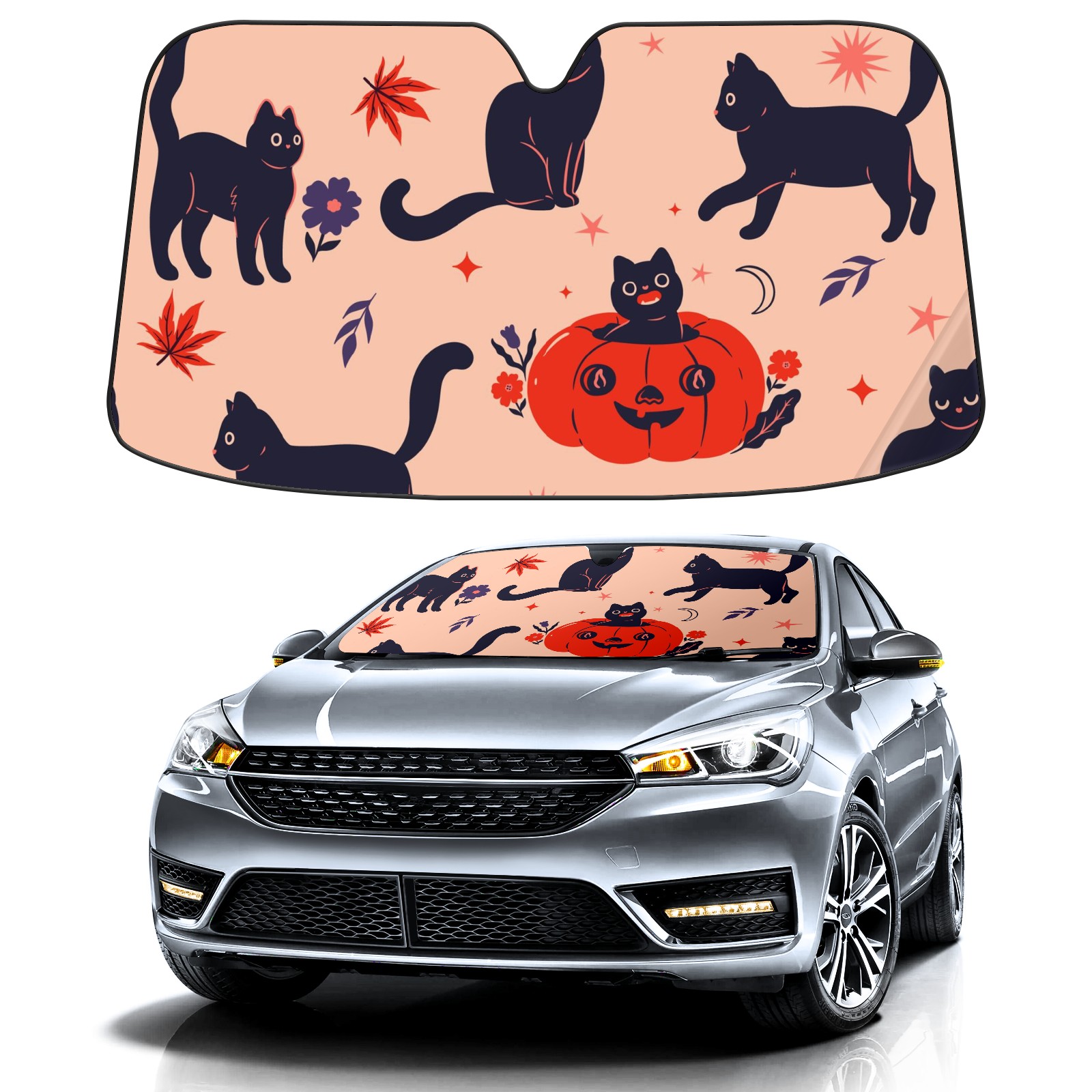 Car Windshield Sun Shade For Front Window Black Halloween Cats Foldable Vehicle Windshield Car Sun Visor Covers Automotive Window Protector Car Camping Privacy Sun Blocker