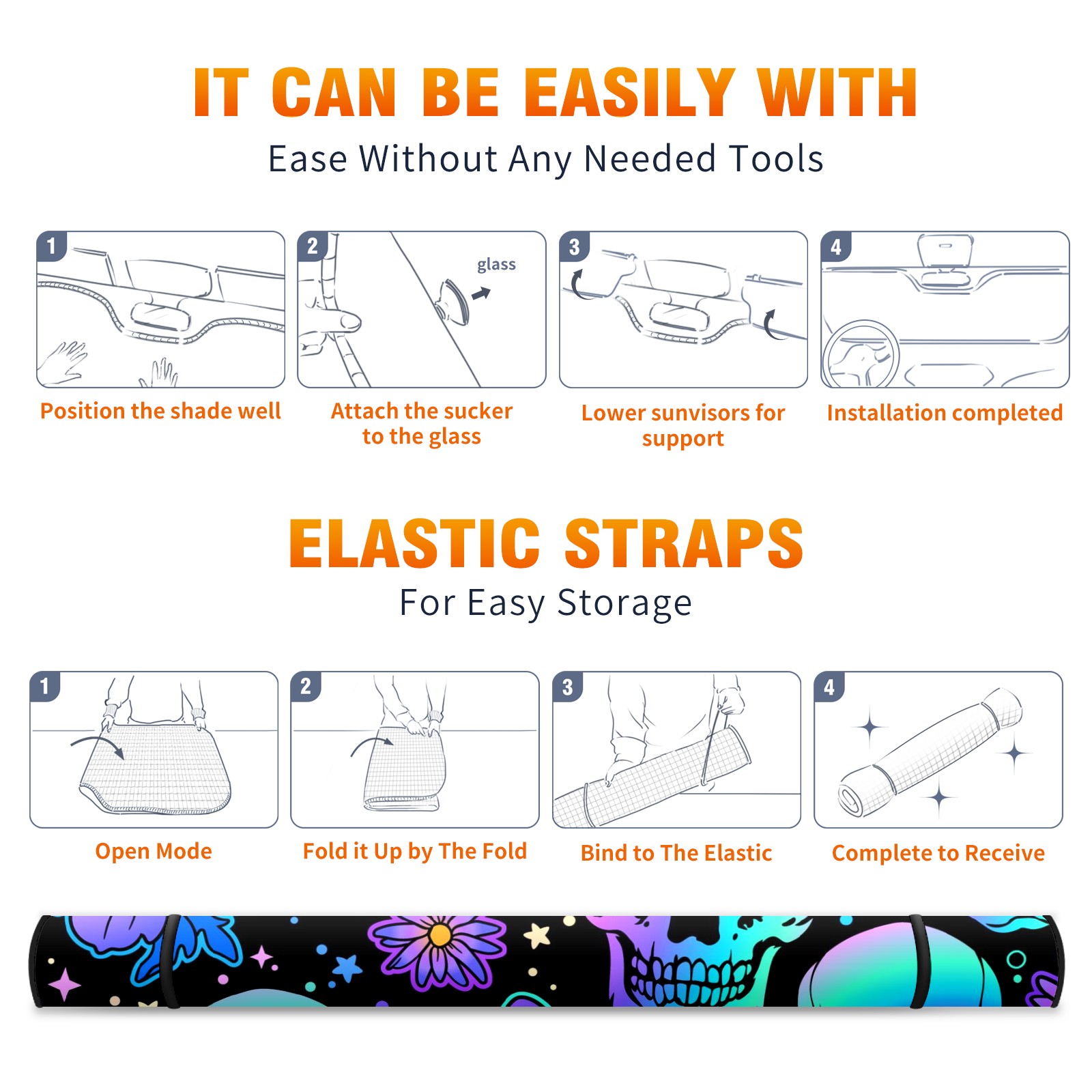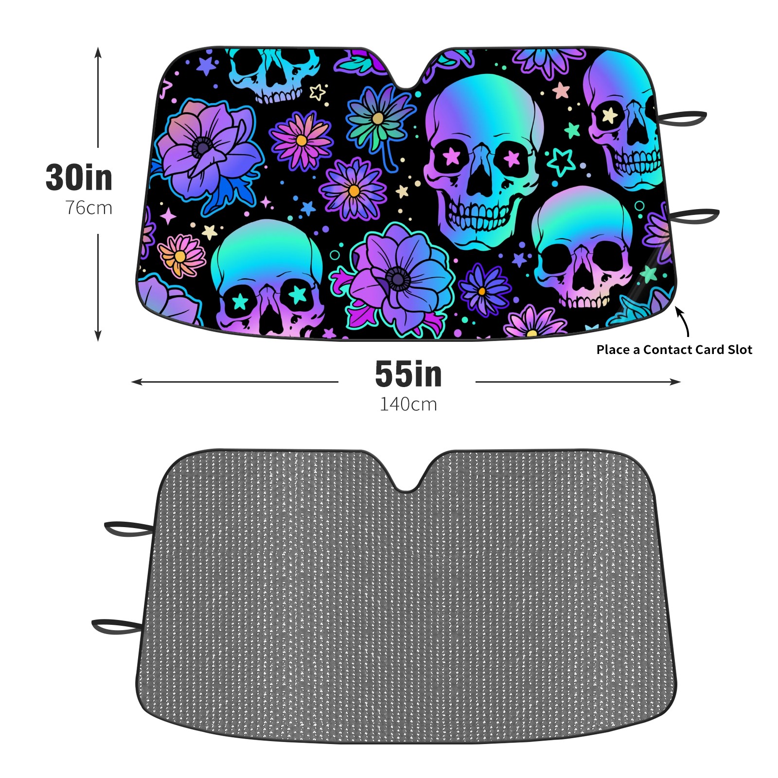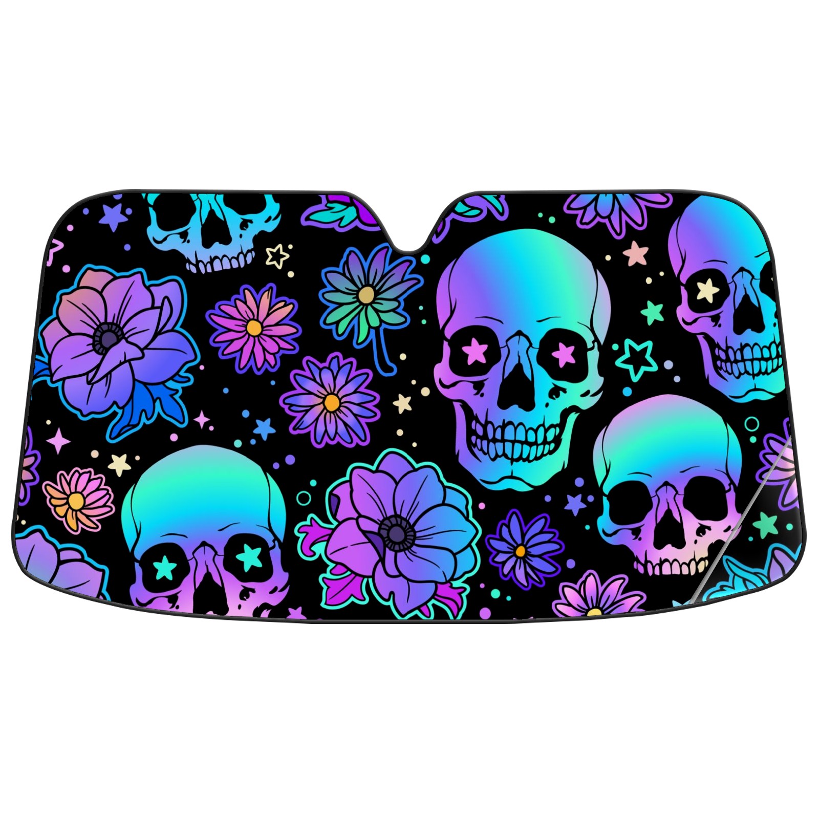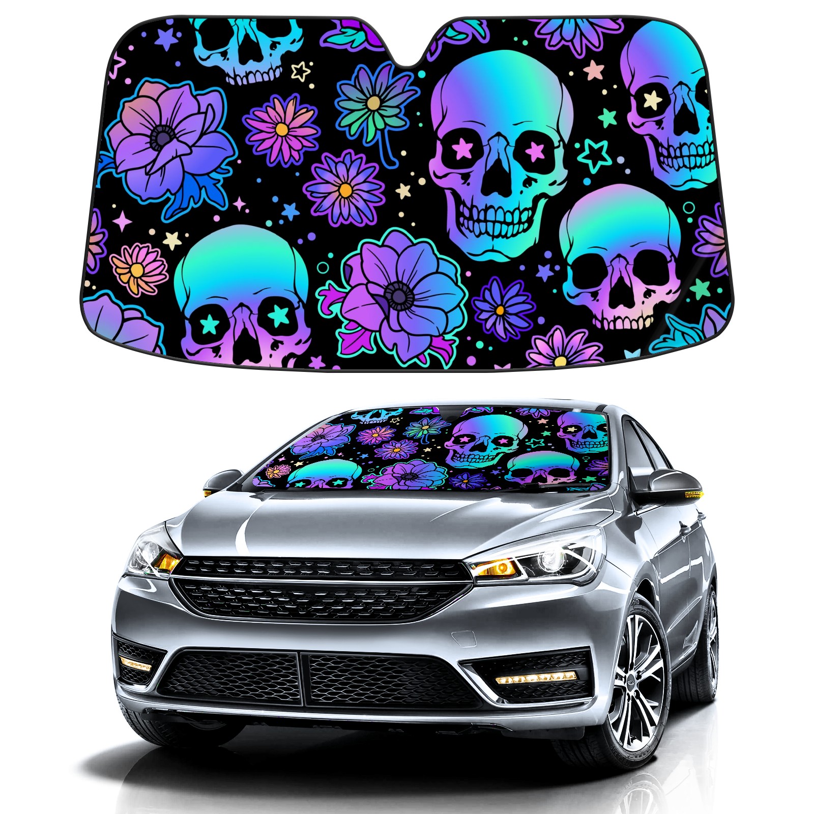 Car Windshield Sun Shade For Front Window Colorful Skull Flowers Stars Foldable Vehicle Windshield Car Sun Visor Covers Automotive Window Protector Car Camping Privacy Sun Blocker