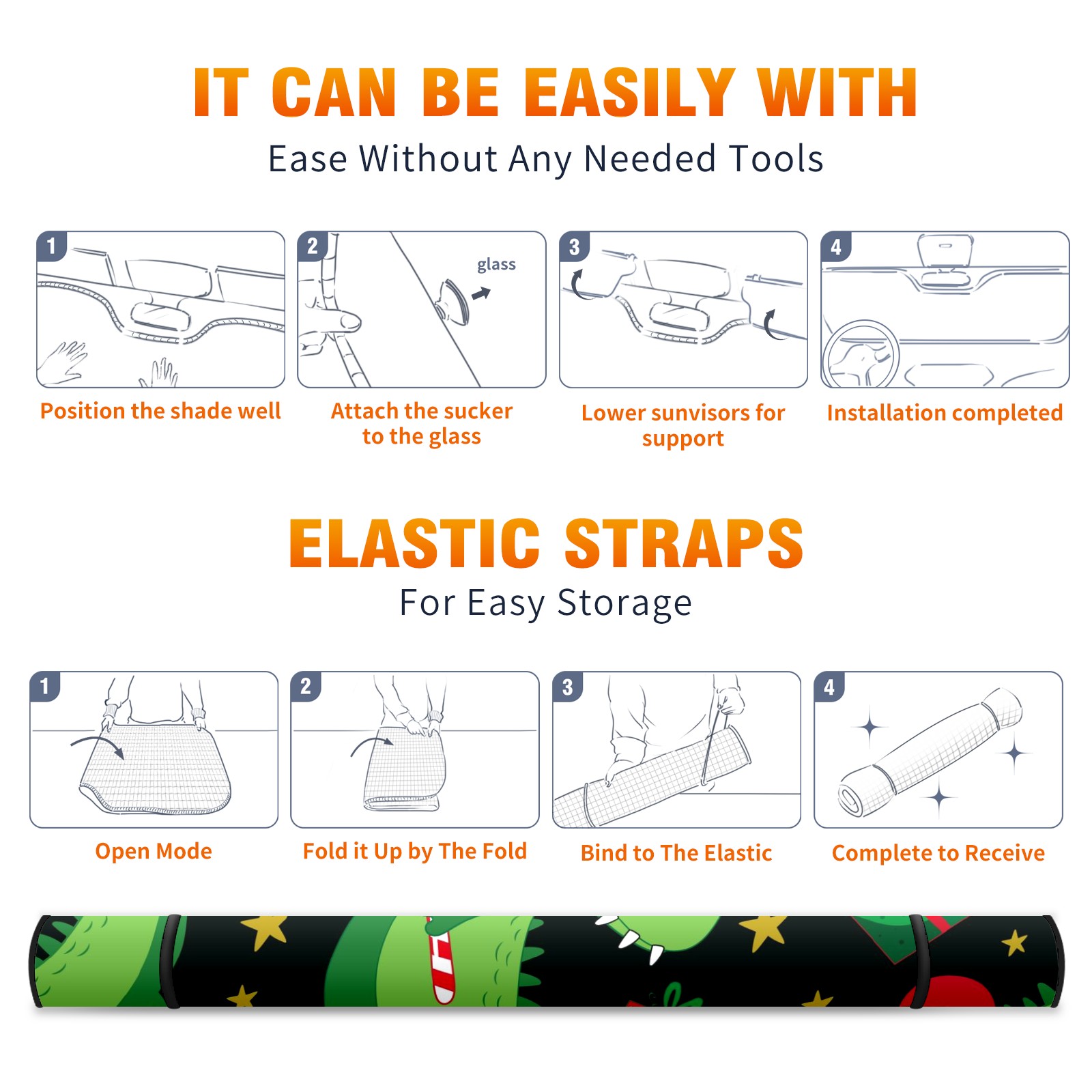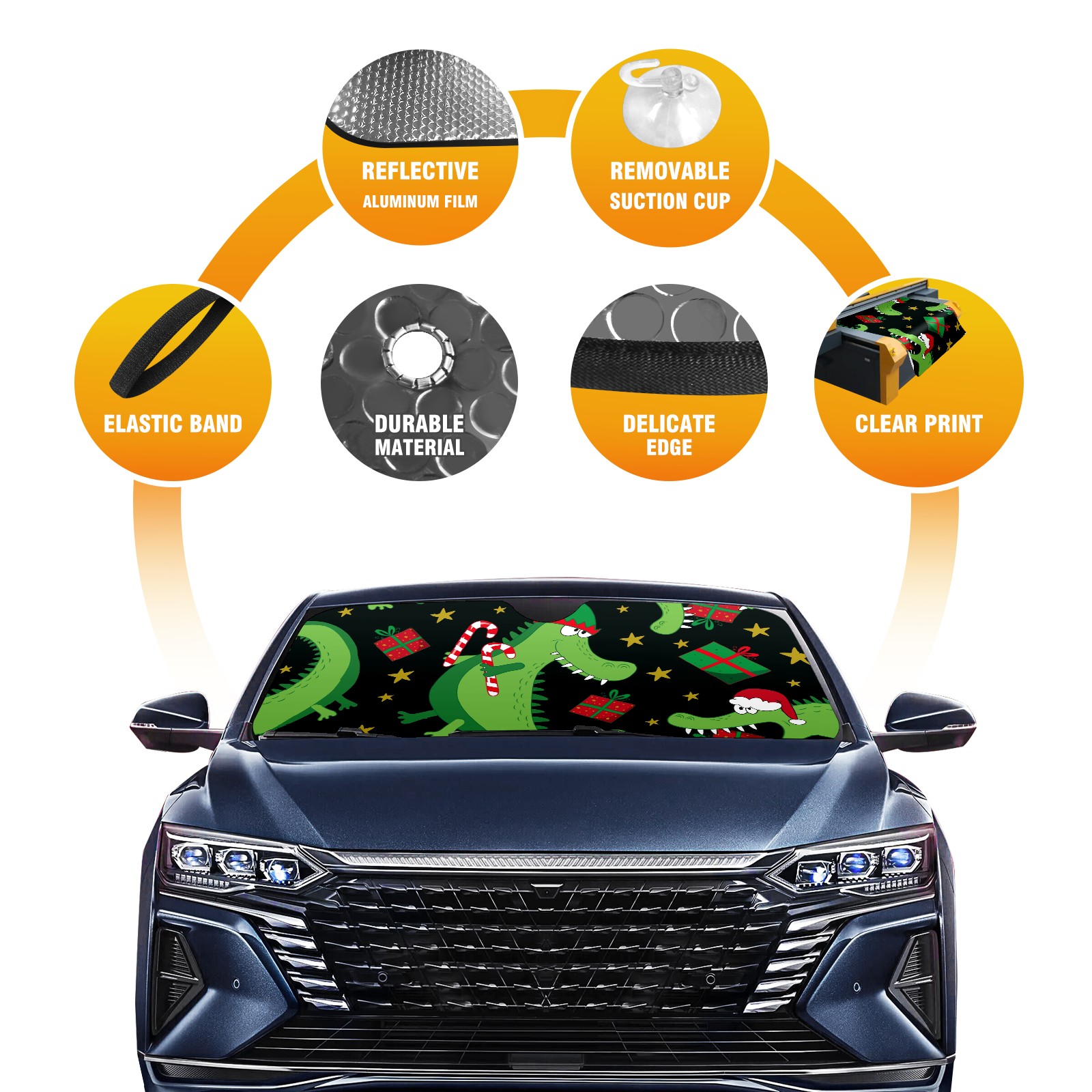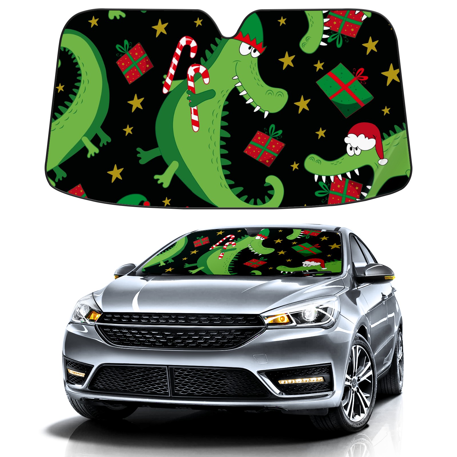 Car Windshield Sun Shade For Front Window Chritmas Crocodile Foldable Vehicle Windshield Car Sun Visor Covers Automotive Window Protector Car Camping Privacy Sun Blocker