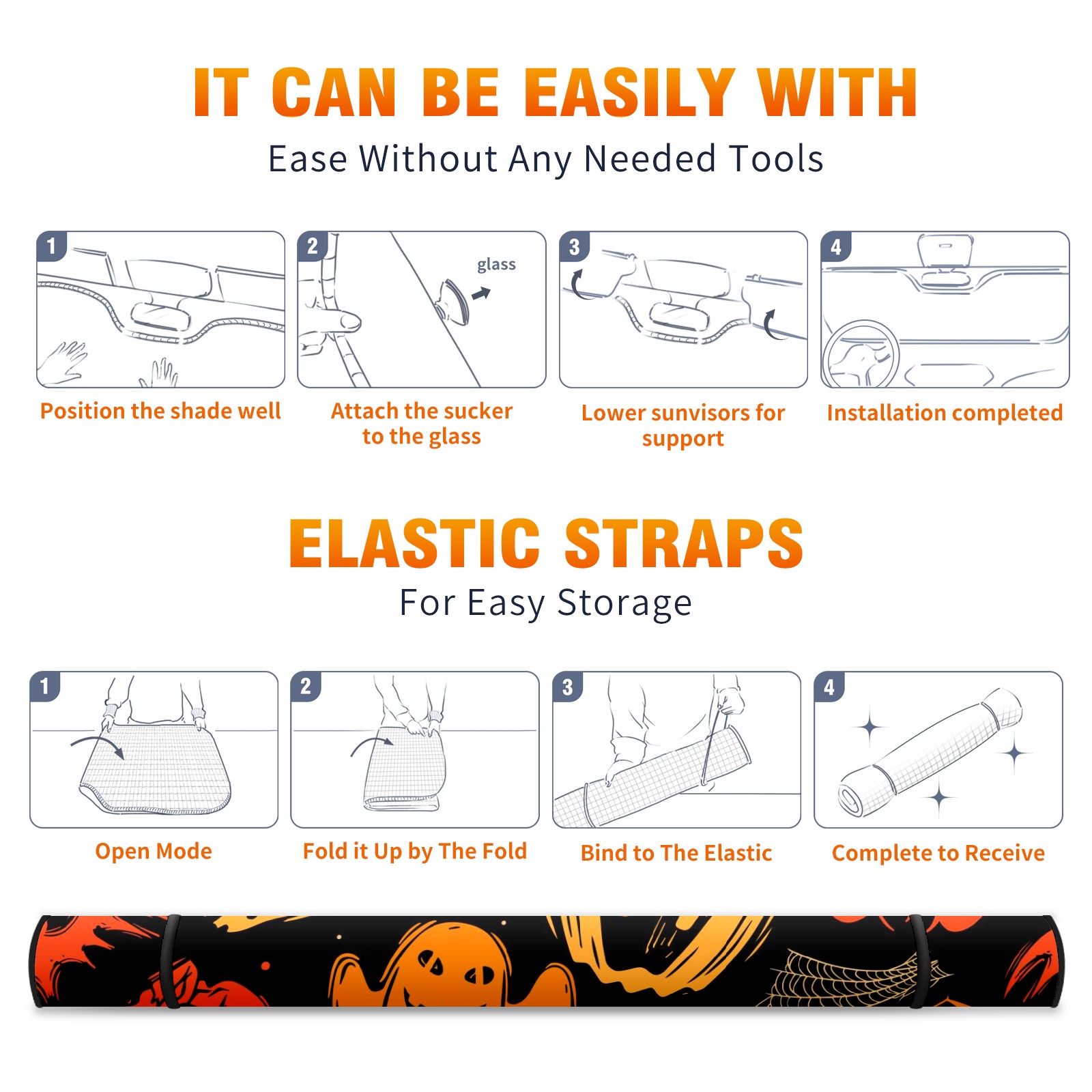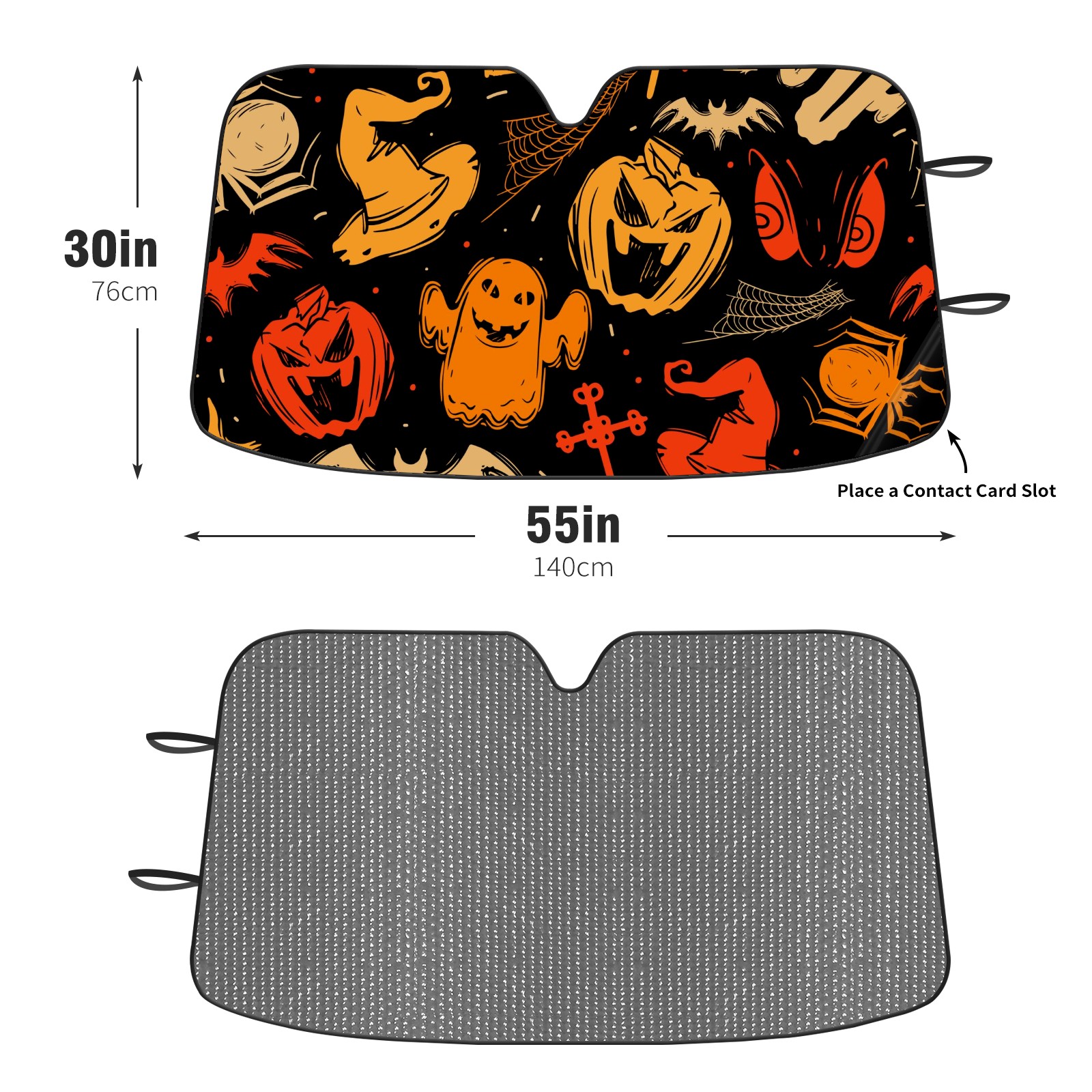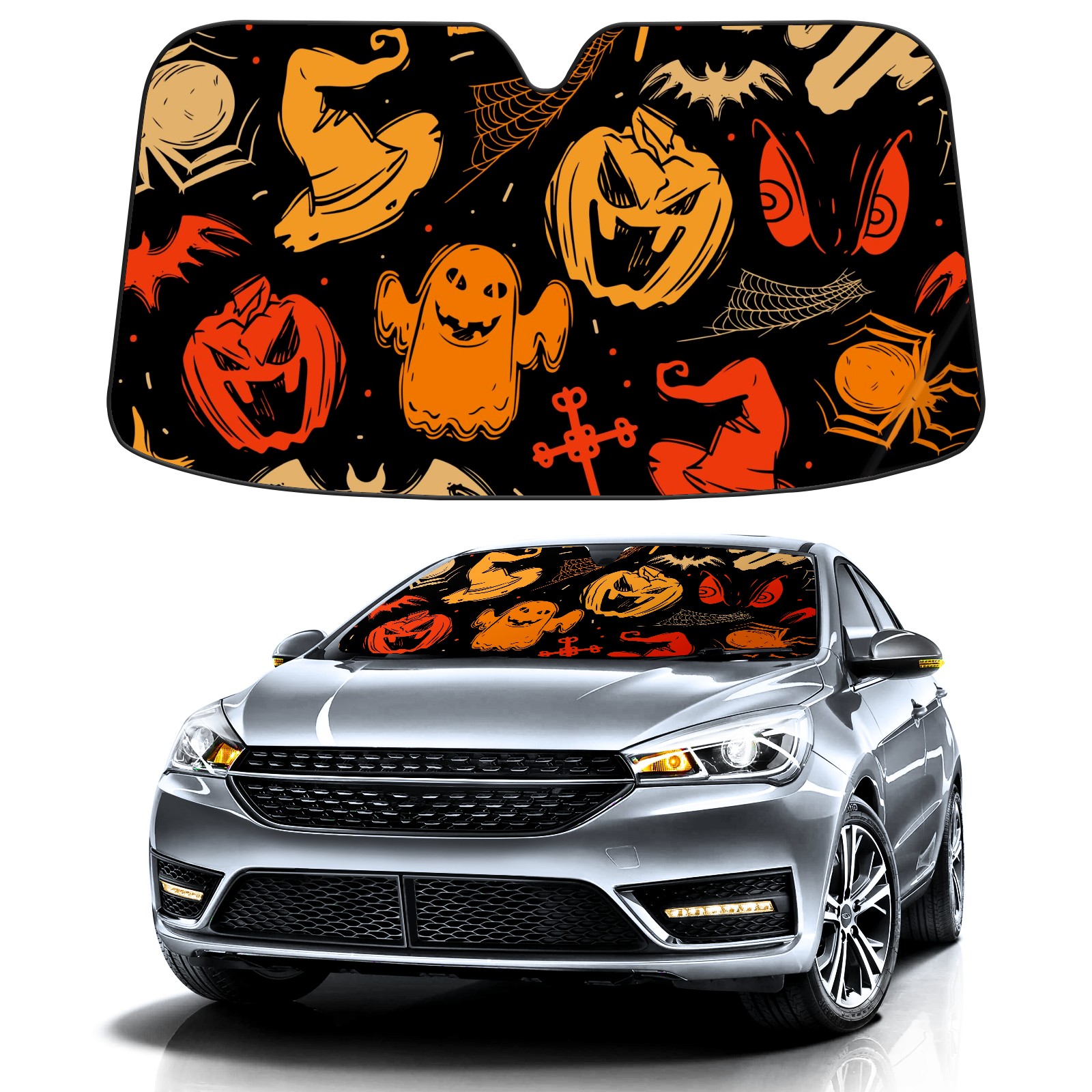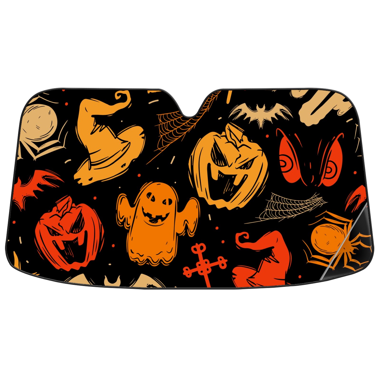 Car Windshield Sun Shade For Front Window Abstract Halloween Ghost Bat Pumpkin Foldable Vehicle Windshield Car Sun Visor Covers Automotive Window Protector Car Camping Privacy Sun Blocker