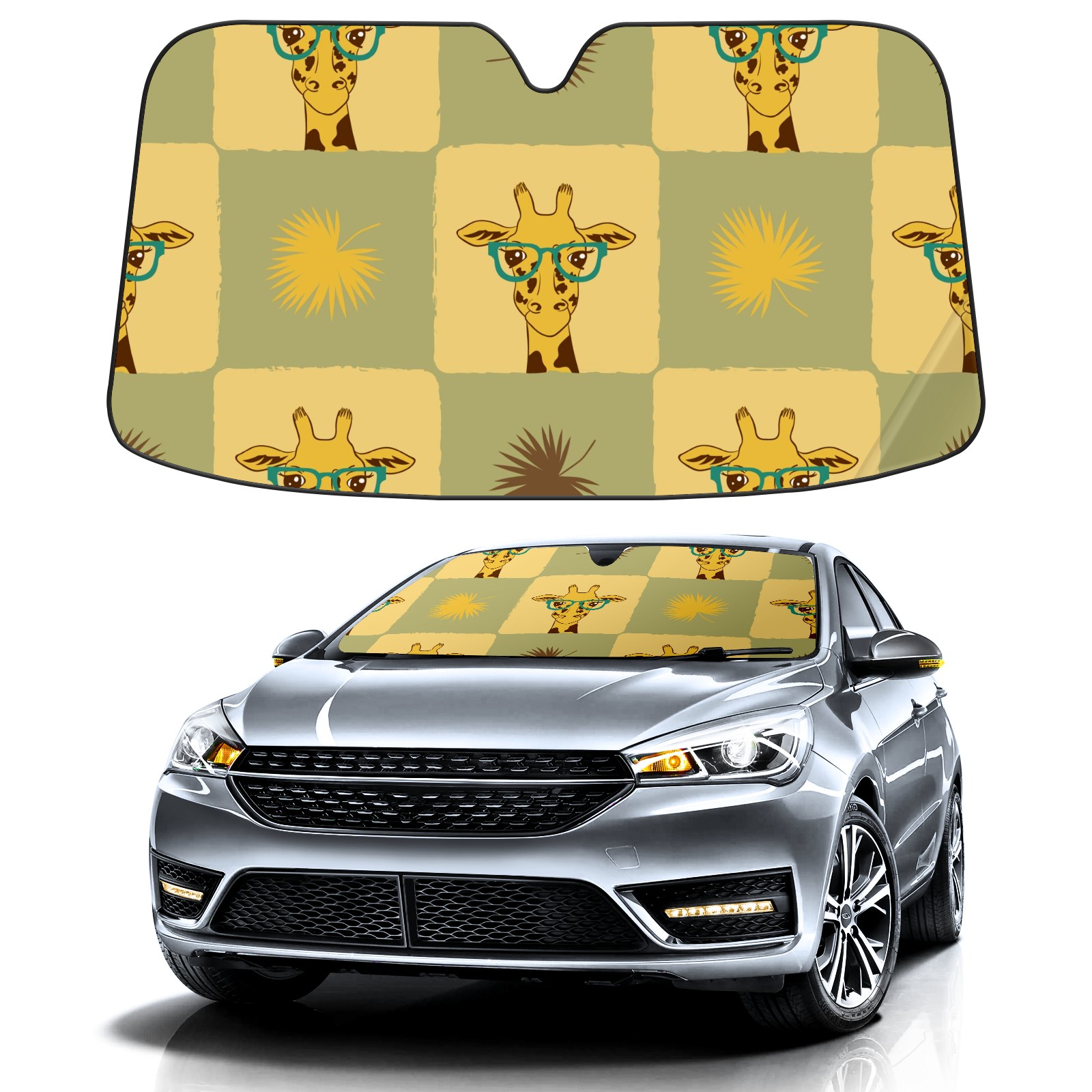 Car Windshield Sun Shade For Front Window Tropical Giraffe And Palm Leaves Foldable Vehicle Windshield Car Sun Visor Covers Automotive Window Protector Car Camping Privacy Sun Blocker