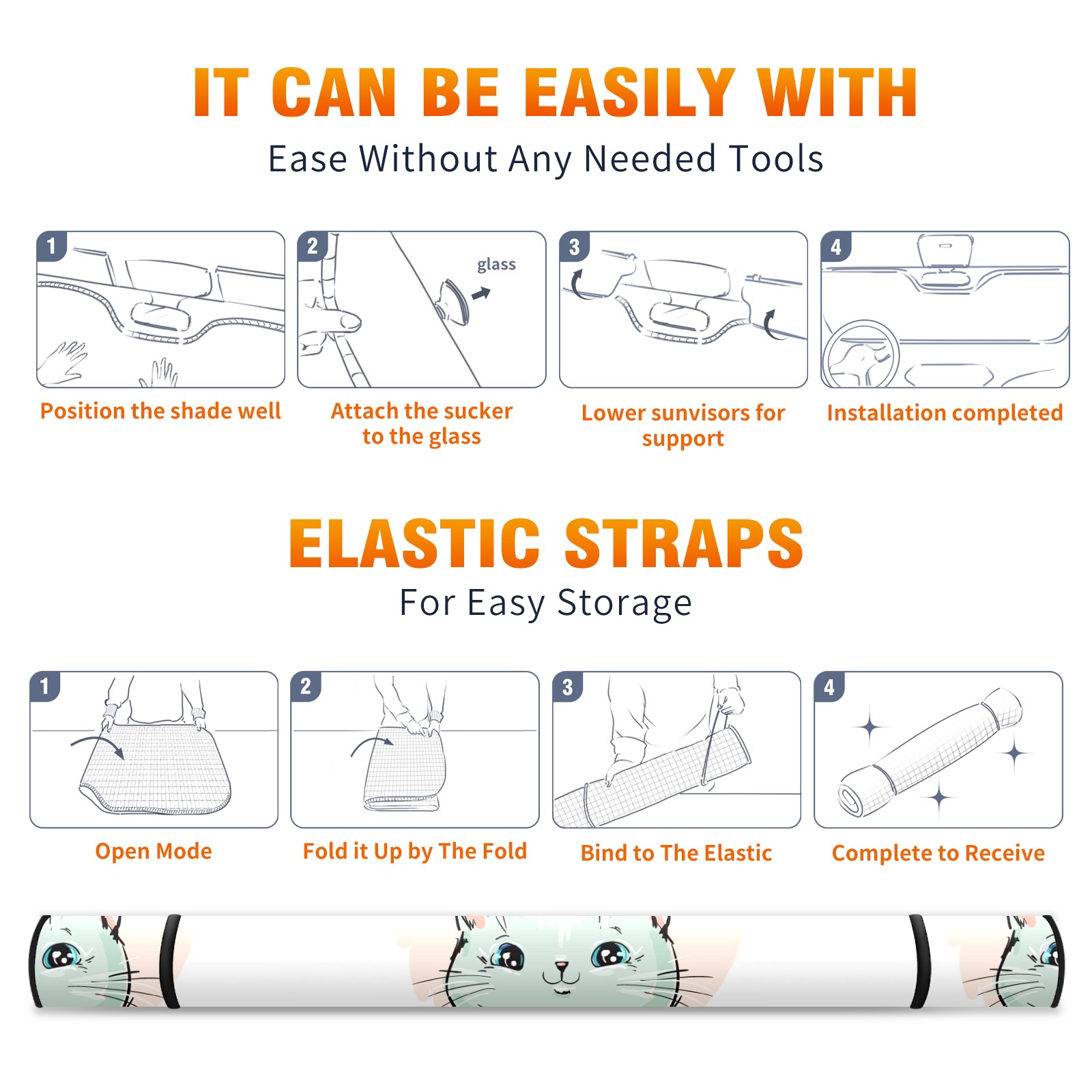 Car Windshield Sun Shade For Front Window Cute Cat Pattern Foldable Vehicle Windshield Car Sun Visor Covers Automotive Window Protector Car Camping Privacy Sun Blocker