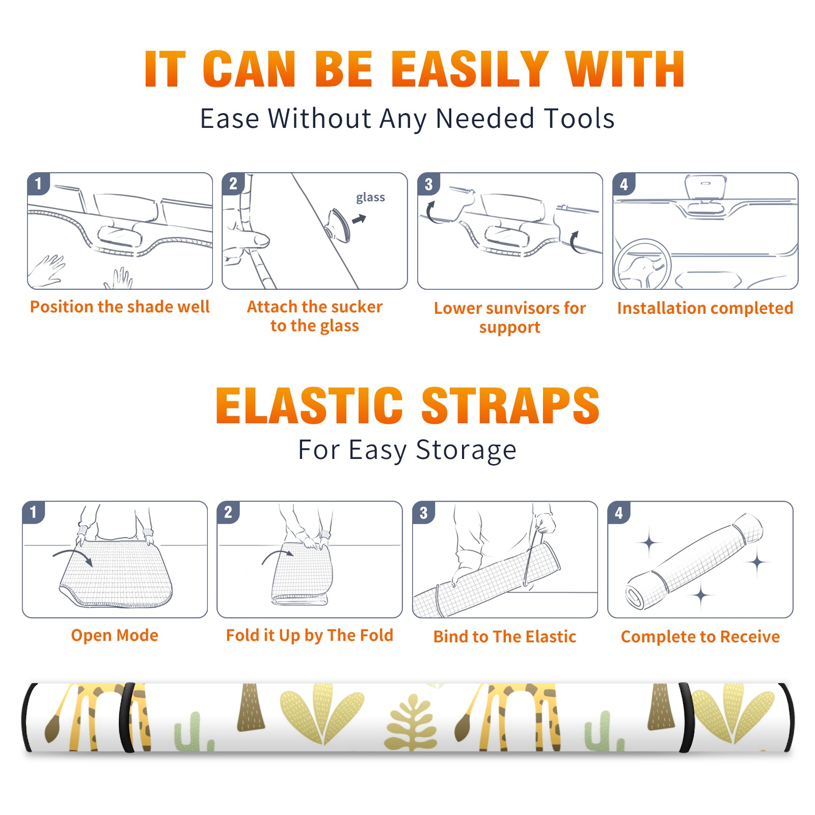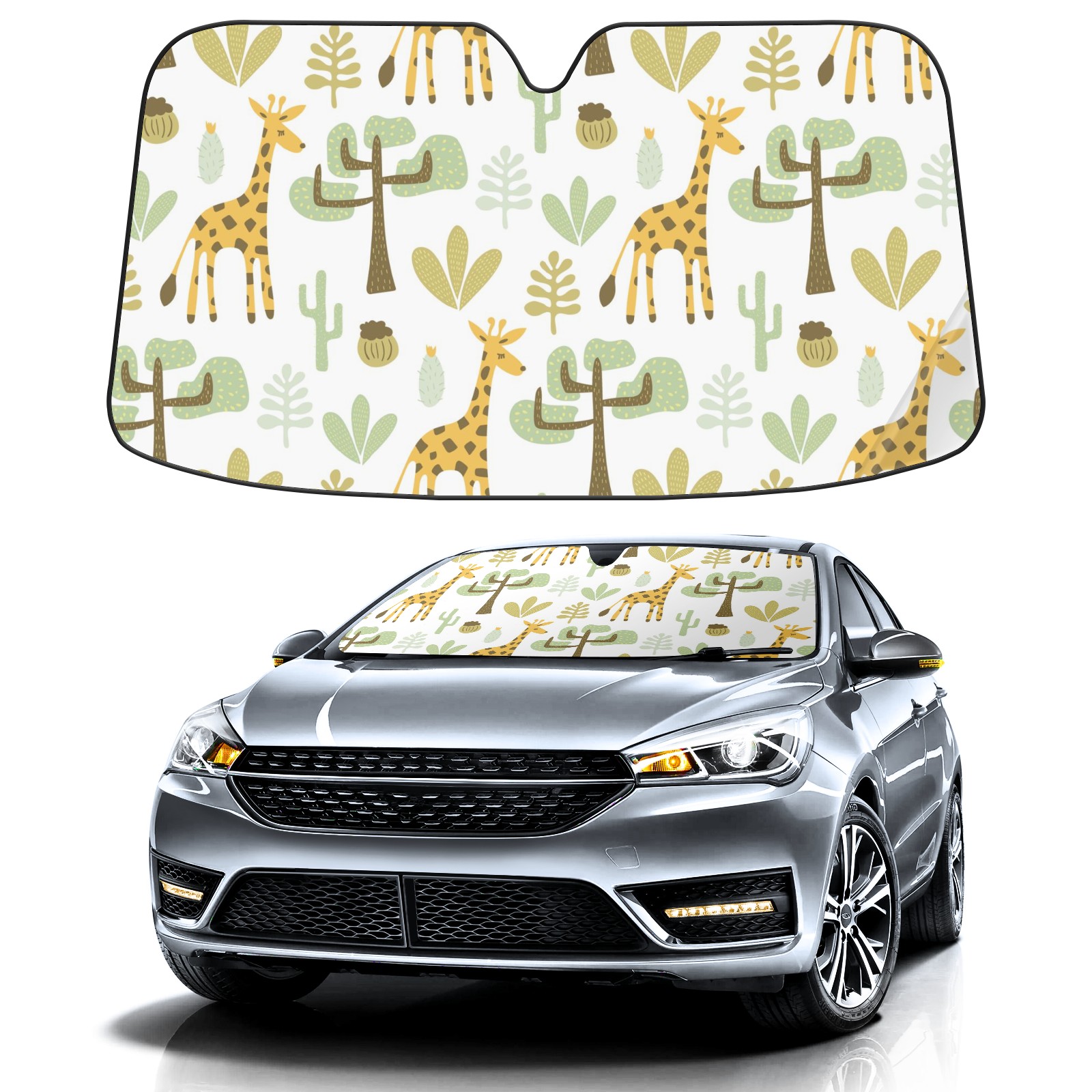 Car Windshield Sun Shade For Front Window Giraffes And Savannah Landscape Foldable Vehicle Windshield Car Sun Visor Covers Automotive Window Protector Car Camping Privacy Sun Blocker