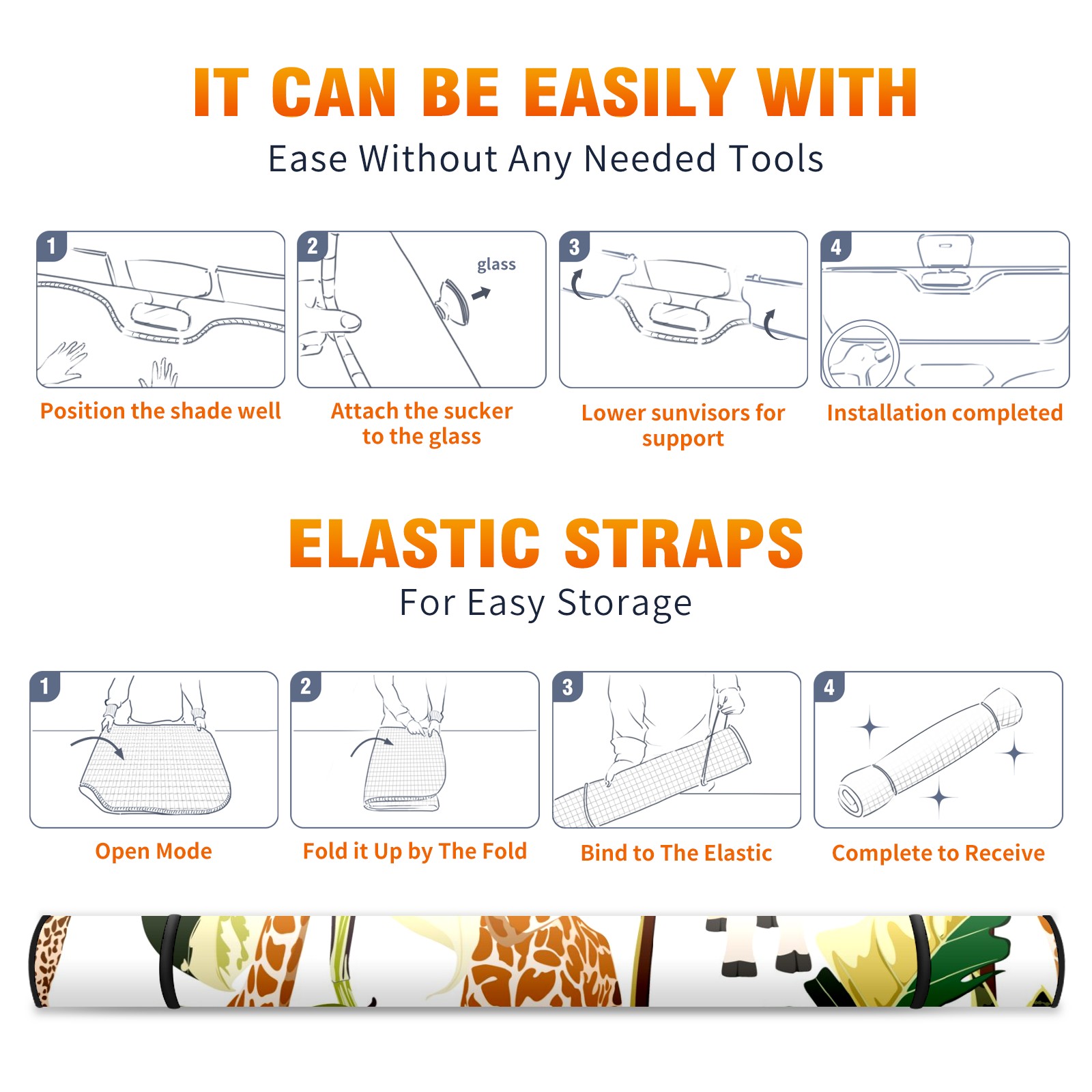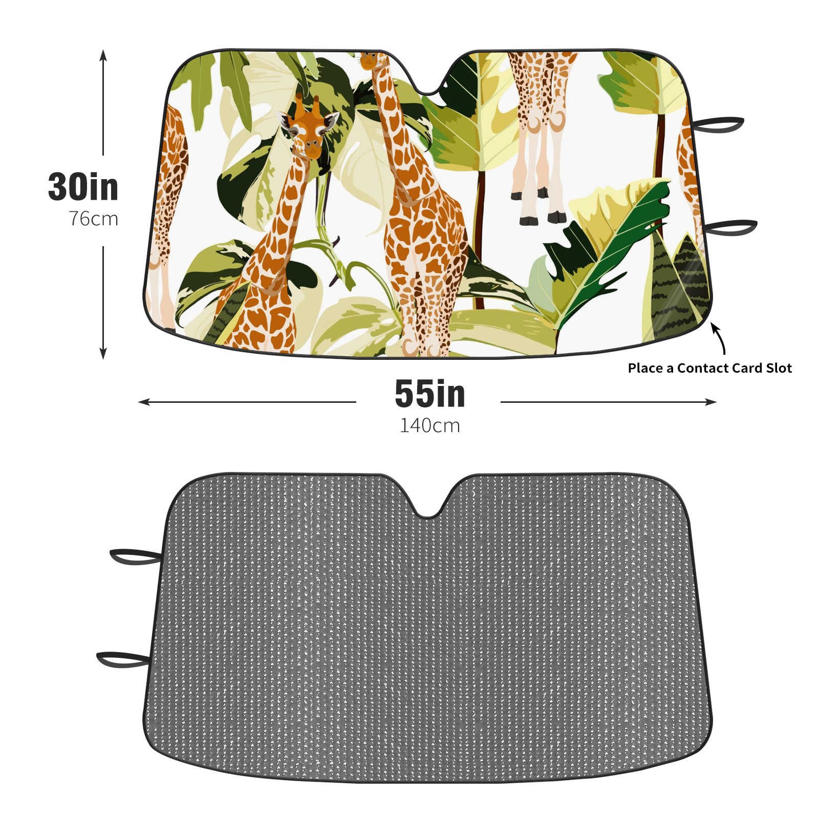 Car Windshield Sun Shade For Front Window Giraffe Tropical Green Leaves And Flowers Foldable Vehicle Windshield Car Sun Visor Covers Automotive Window Protector Car Camping Privacy Sun Blocker