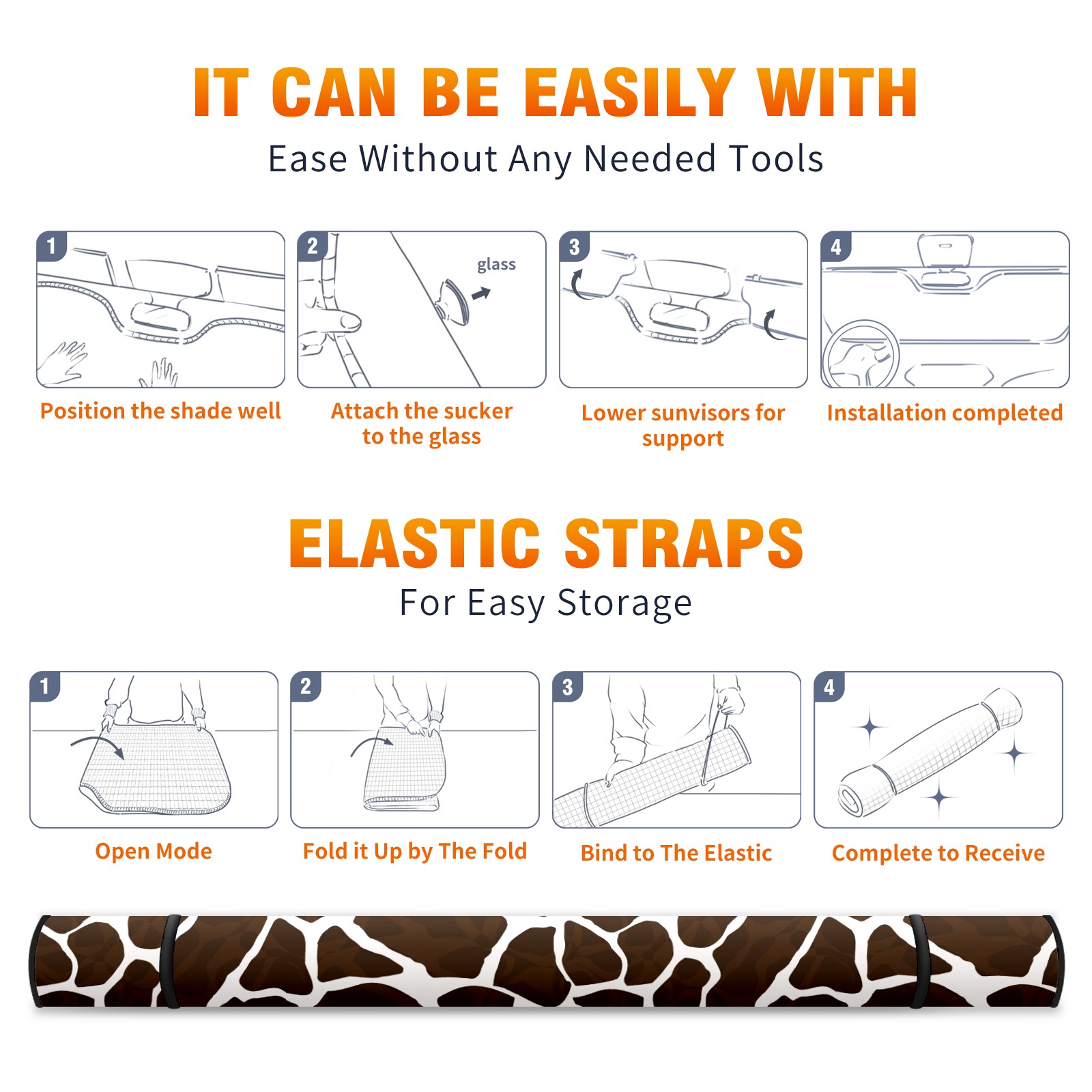 Car Windshield Sun Shade For Front Window Giraffe Animal Print Foldable Vehicle Windshield Car Sun Visor Covers Automotive Window Protector Car Camping Privacy Sun Blocker