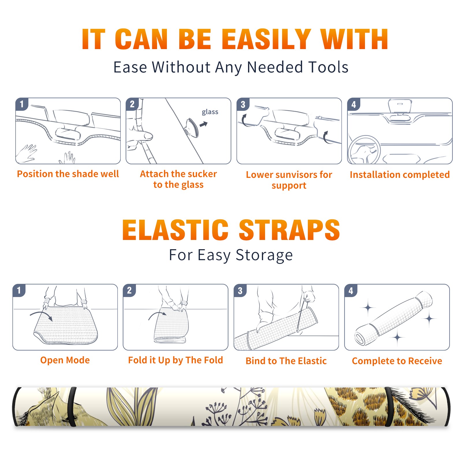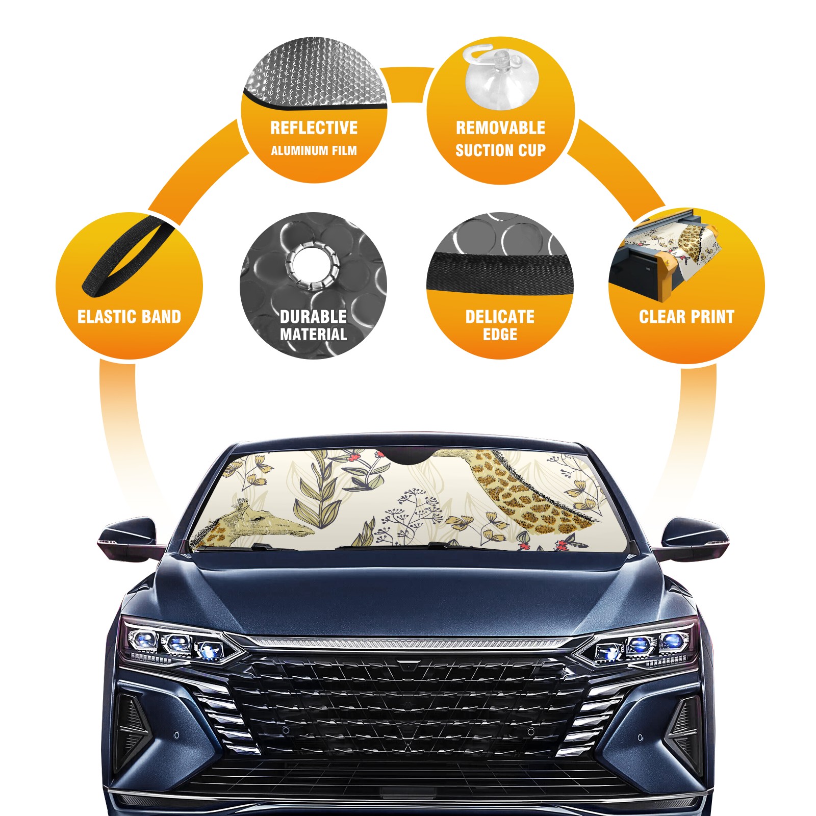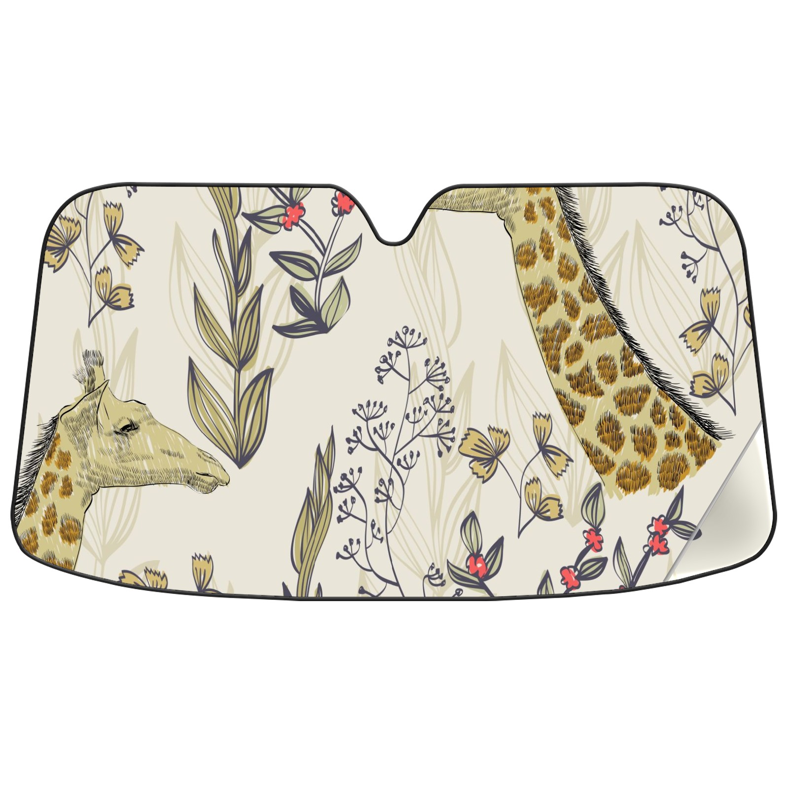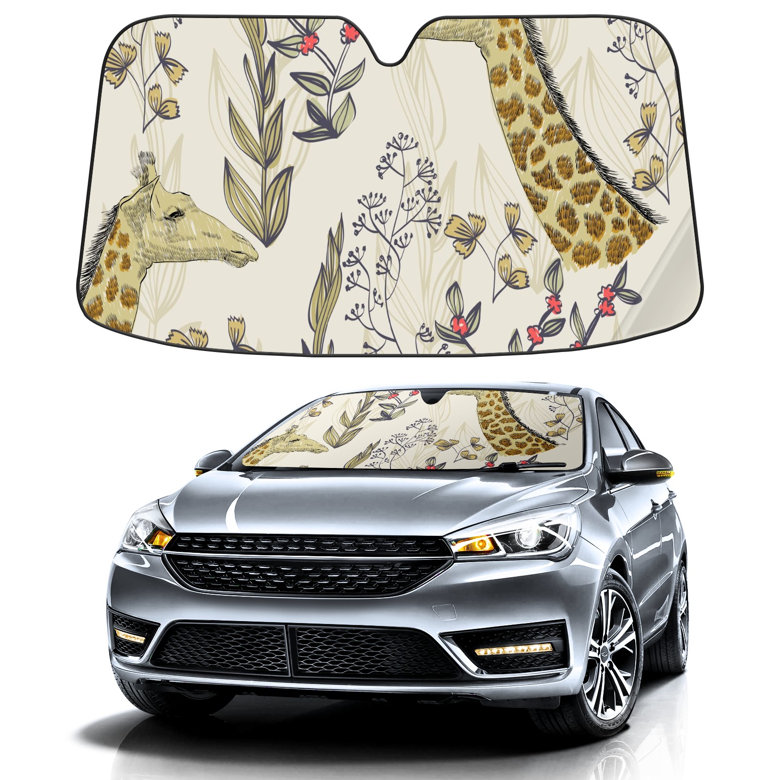 Car Windshield Sun Shade For Front Window Giraffe Flower Hand Draw Foldable Vehicle Windshield Car Sun Visor Covers Automotive Window Protector Car Camping Privacy Sun Blocker