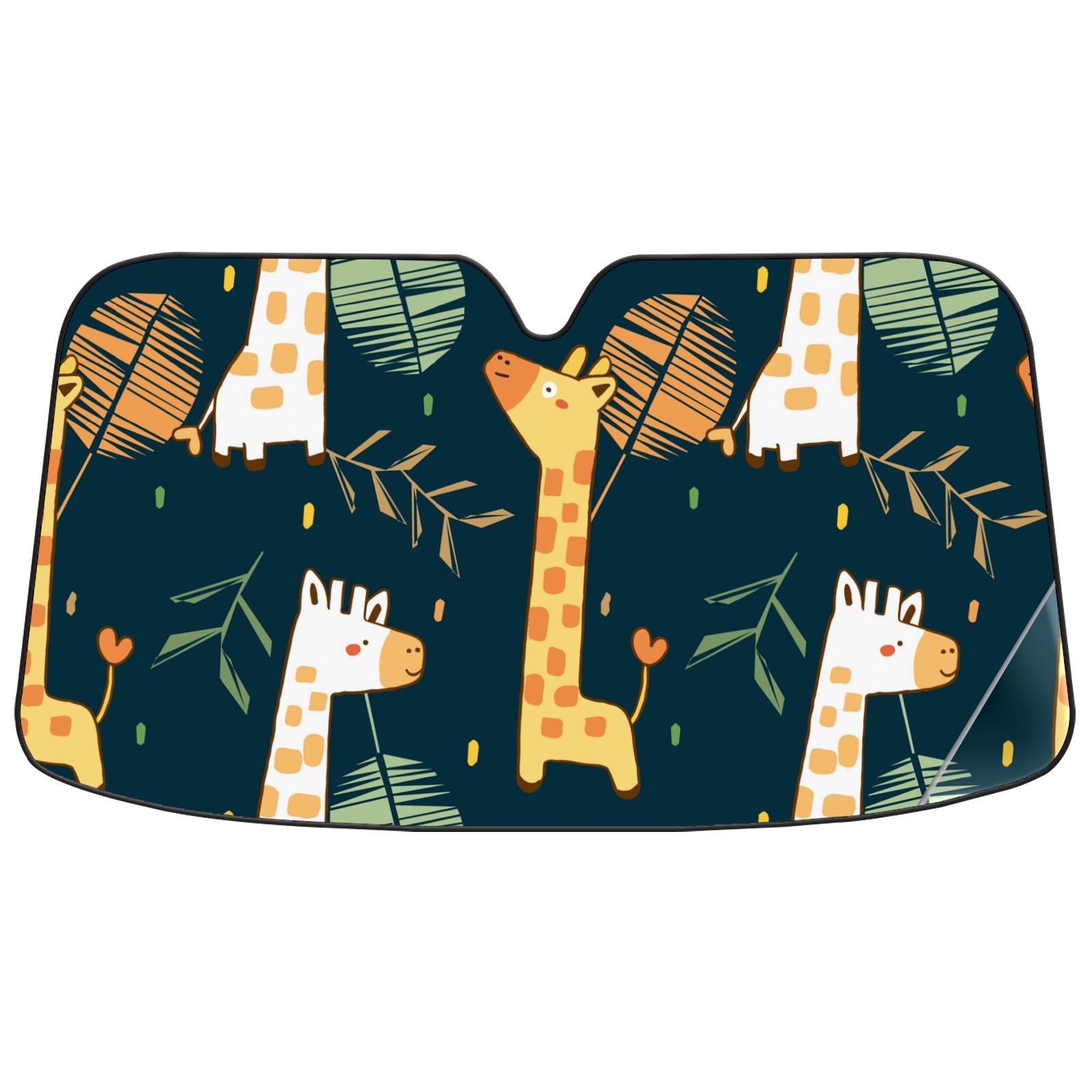 Car Windshield Sun Shade For Front Window Giraffe And Leaf On Dark Blue Background Foldable Vehicle Windshield Car Sun Visor Covers Automotive Window Protector Car Camping Privacy Sun Blocker