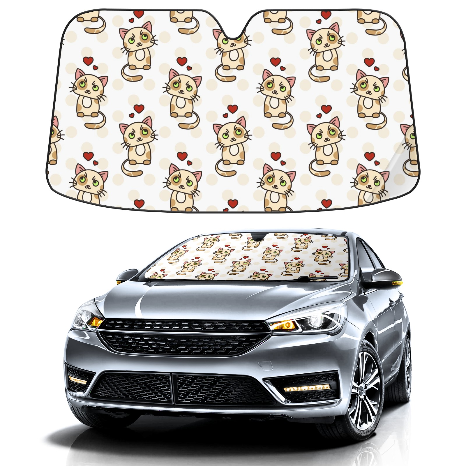 Car Windshield Sun Shade For Front Window Cute Cat Heart Foldable Vehicle Windshield Car Sun Visor Covers Automotive Window Protector Car Camping Privacy Sun Blocker