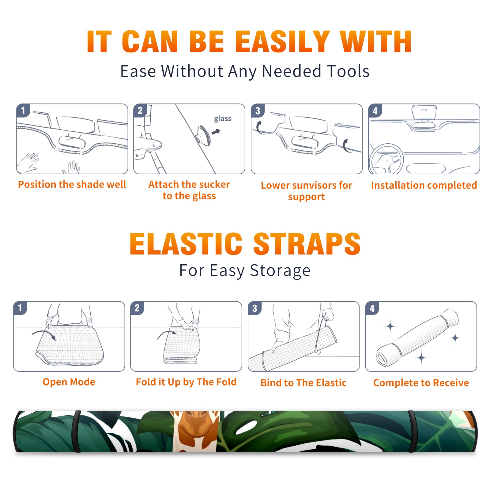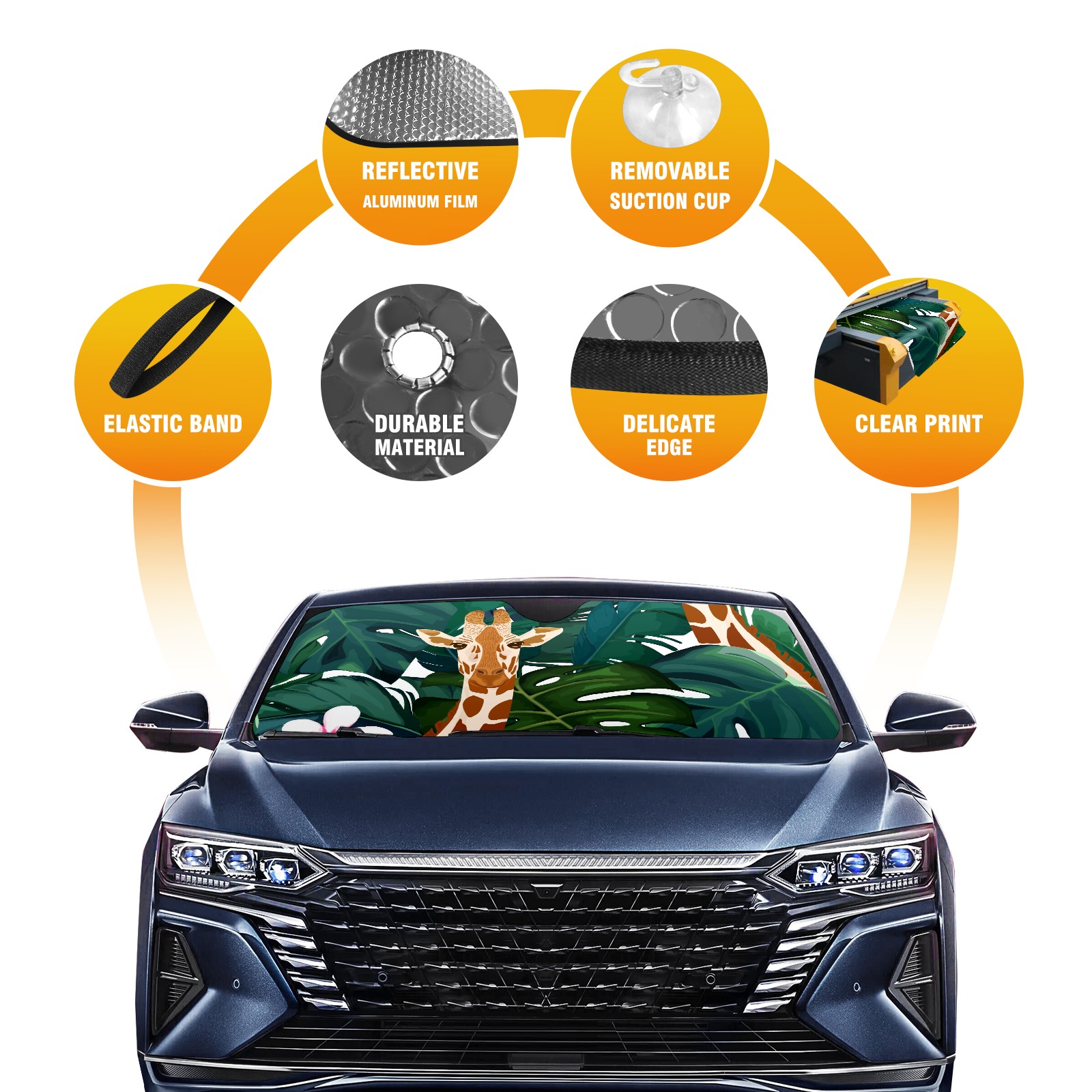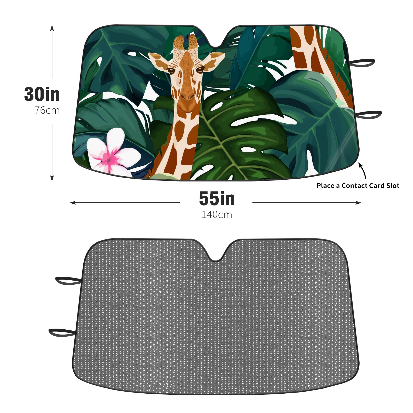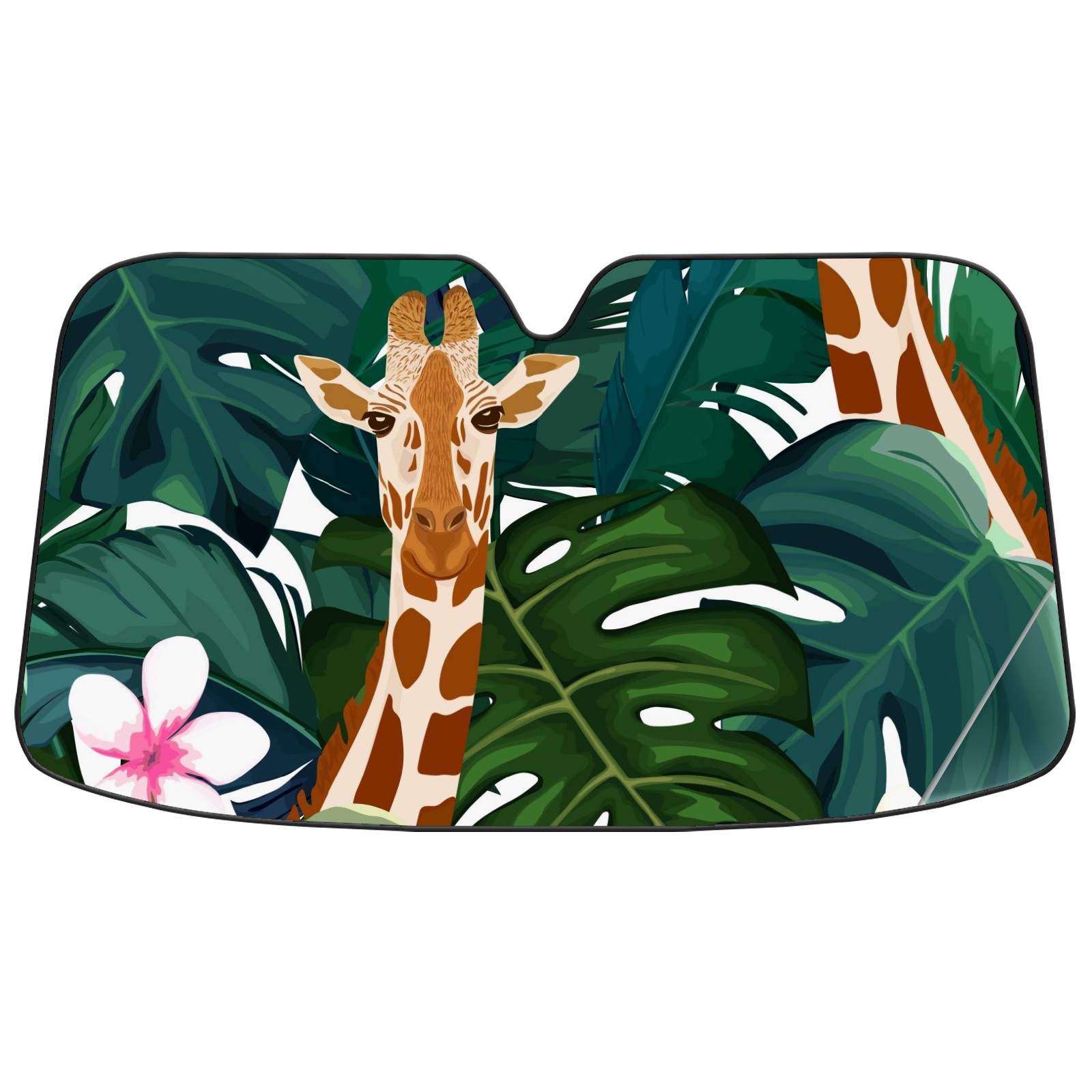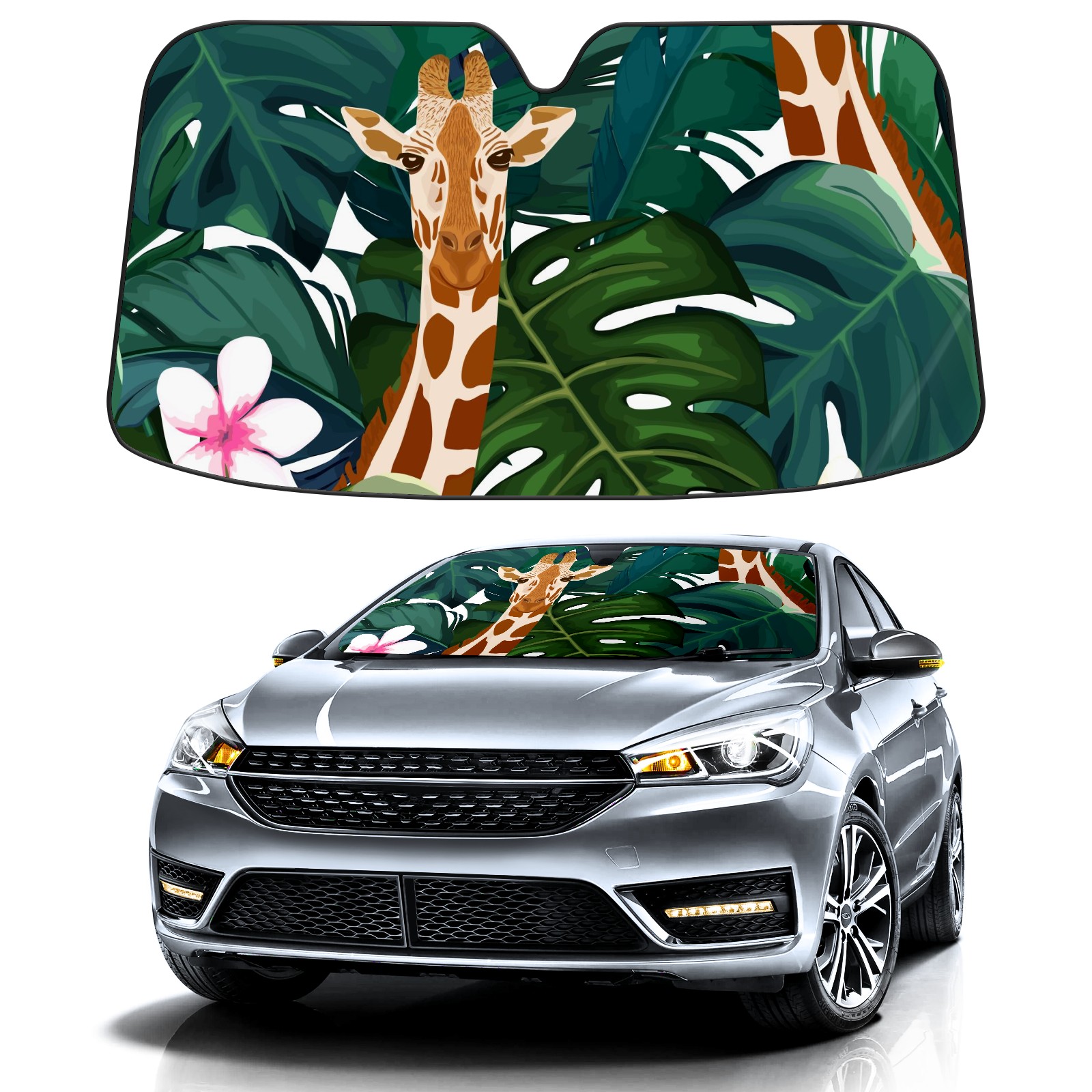 Car Windshield Sun Shade For Front Window Exotic Palm Giraffe And Hibiscus Flower Foldable Vehicle Windshield Car Sun Visor Covers Automotive Window Protector Car Camping Privacy Sun Blocker