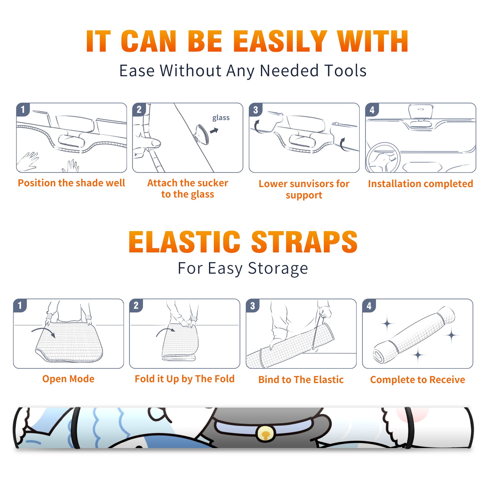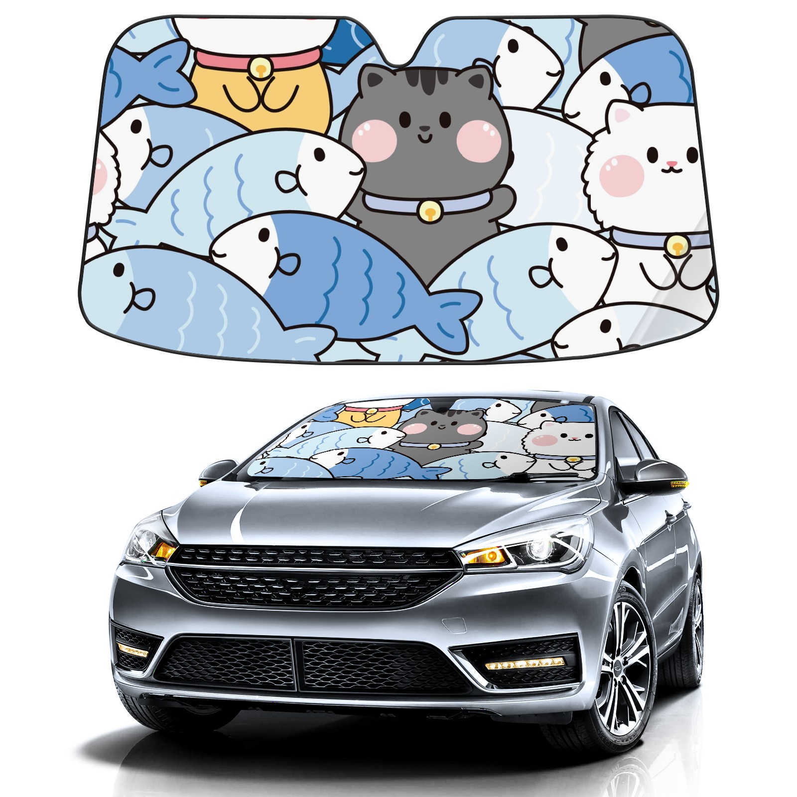 Car Windshield Sun Shade For Front Window Cute Cat Fish Foldable Vehicle Windshield Car Sun Visor Covers Automotive Window Protector Car Camping Privacy Sun Blocker