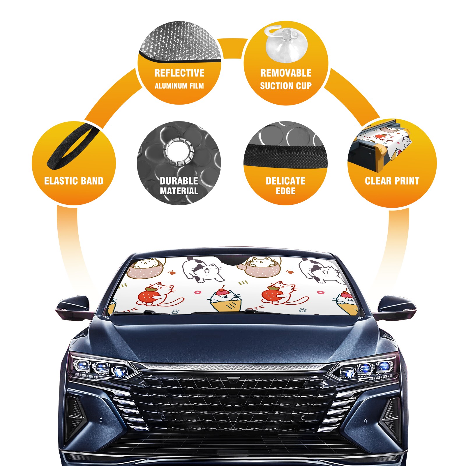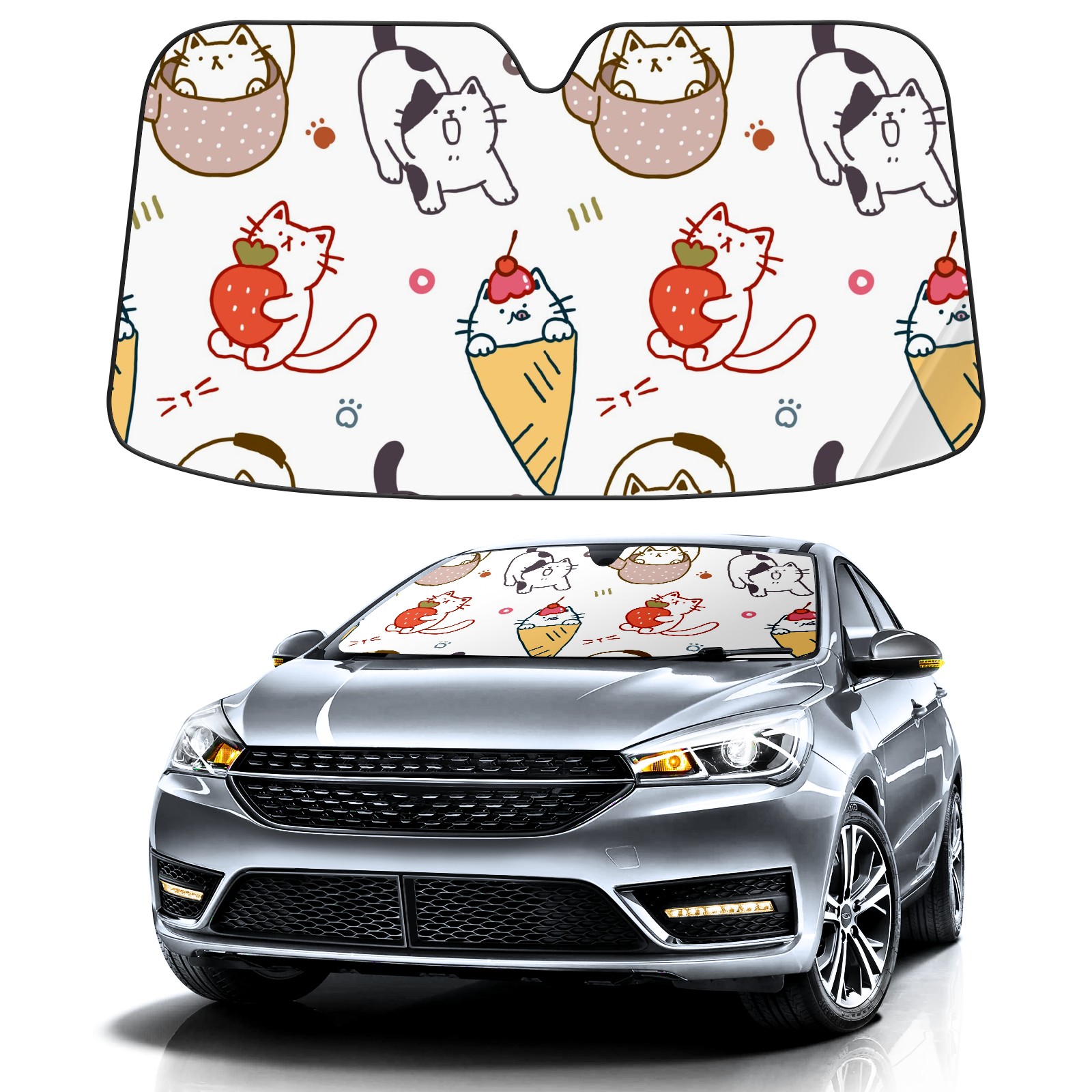 Car Windshield Sun Shade For Front Window Cat On White Background Foldable Vehicle Windshield Car Sun Visor Covers Automotive Window Protector Car Camping Privacy Sun Blocker