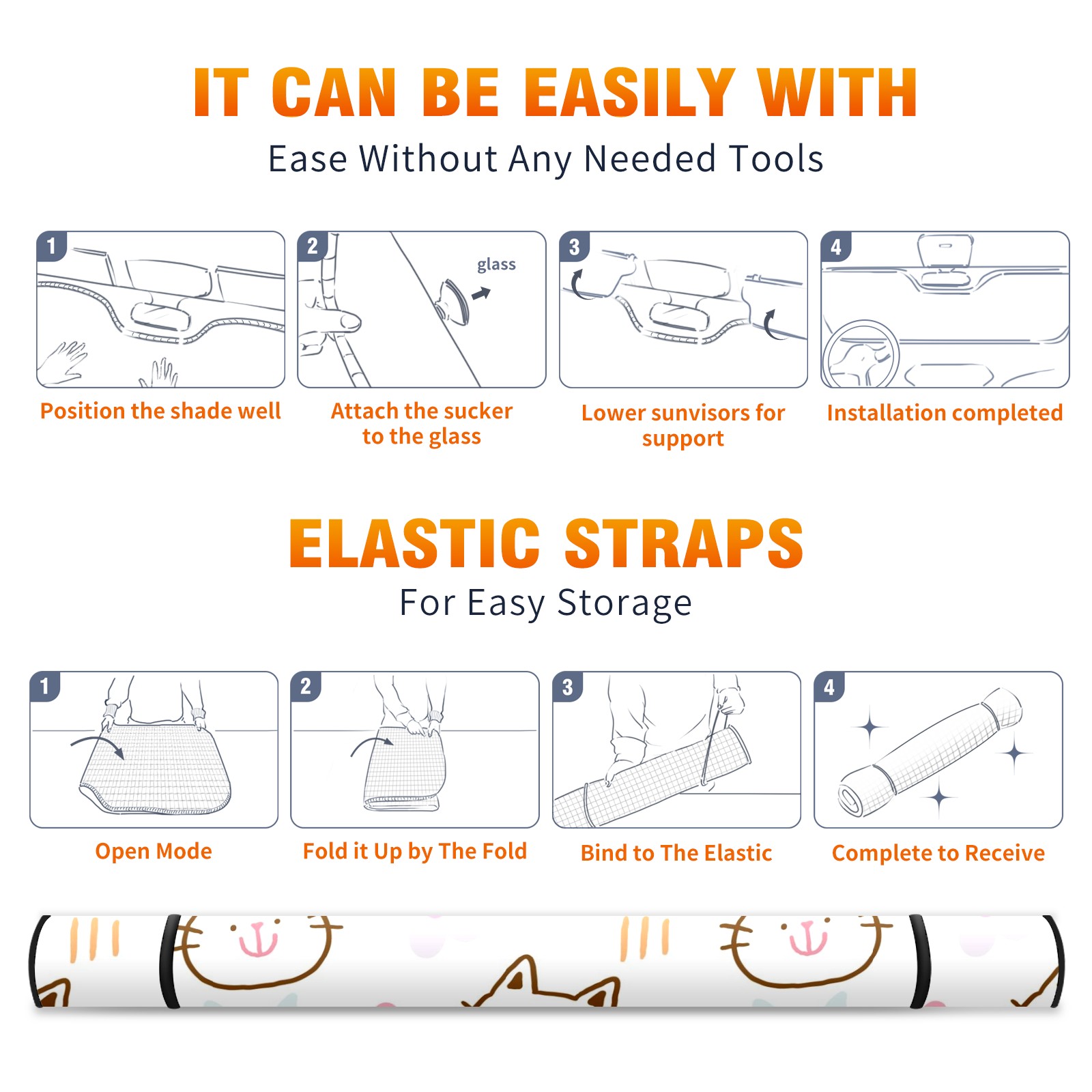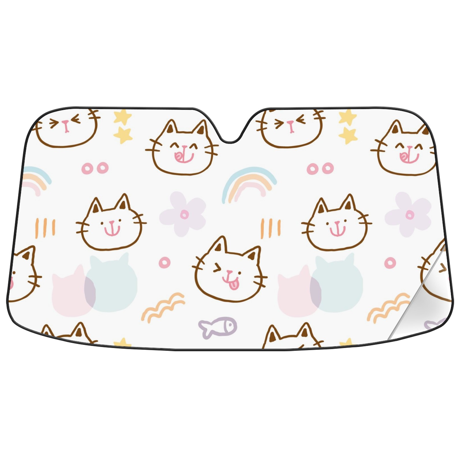 Car Windshield Sun Shade For Front Window Cartoon Cat Face On White Background Foldable Vehicle Windshield Car Sun Visor Covers Automotive Window Protector Car Camping Privacy Sun Blocker