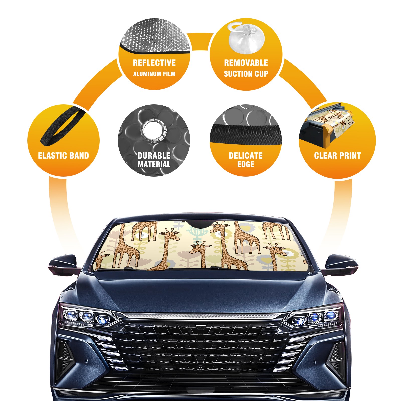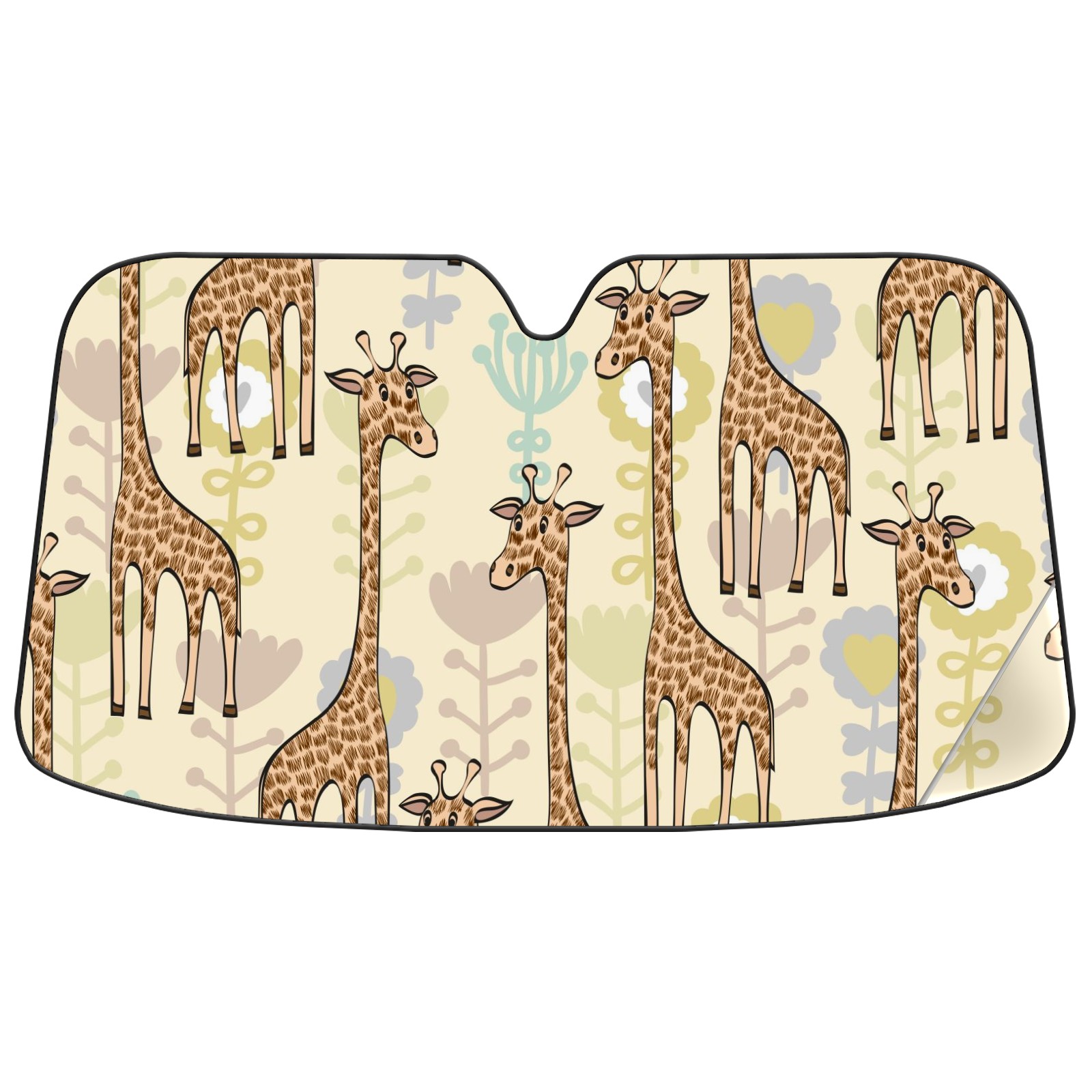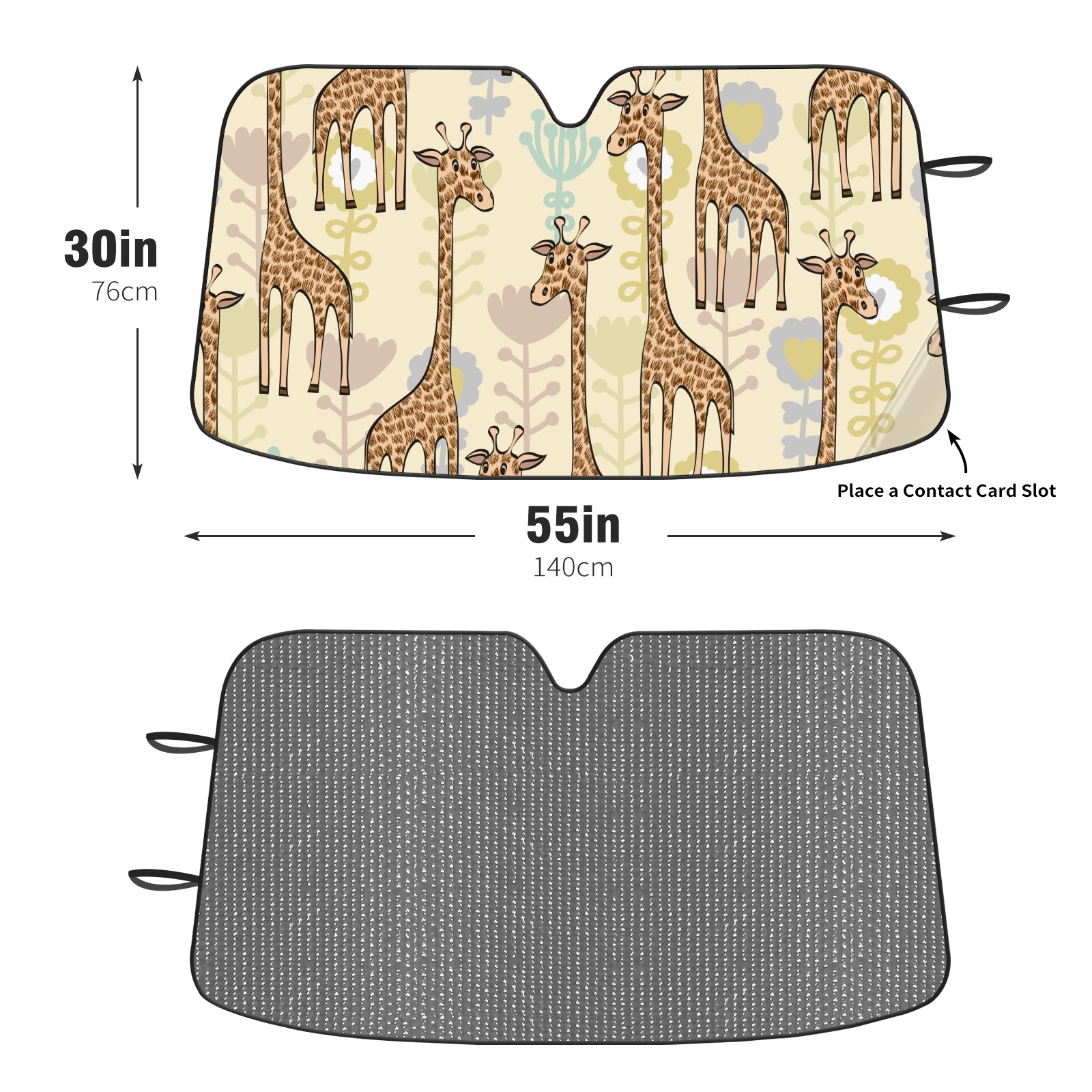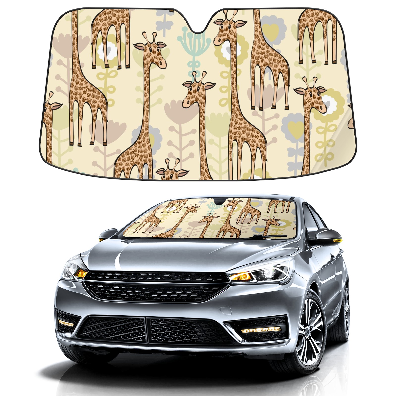Car Windshield Sun Shade For Front Window Cute Giraffe Flowers Doodle Foldable Vehicle Windshield Car Sun Visor Covers Automotive Window Protector Car Camping Privacy Sun Blocker
