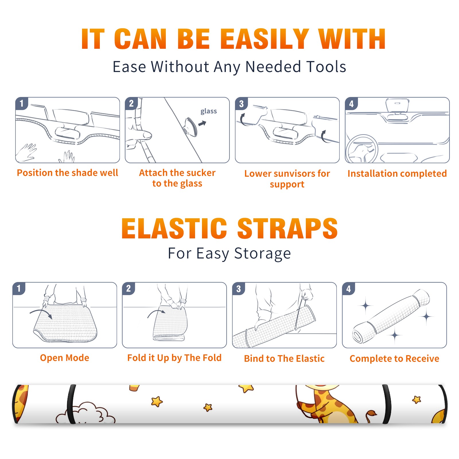 Car Windshield Sun Shade For Front Window Cute Giraffe Balloon Cloud And Star Foldable Vehicle Windshield Car Sun Visor Covers Automotive Window Protector Car Camping Privacy Sun Blocker