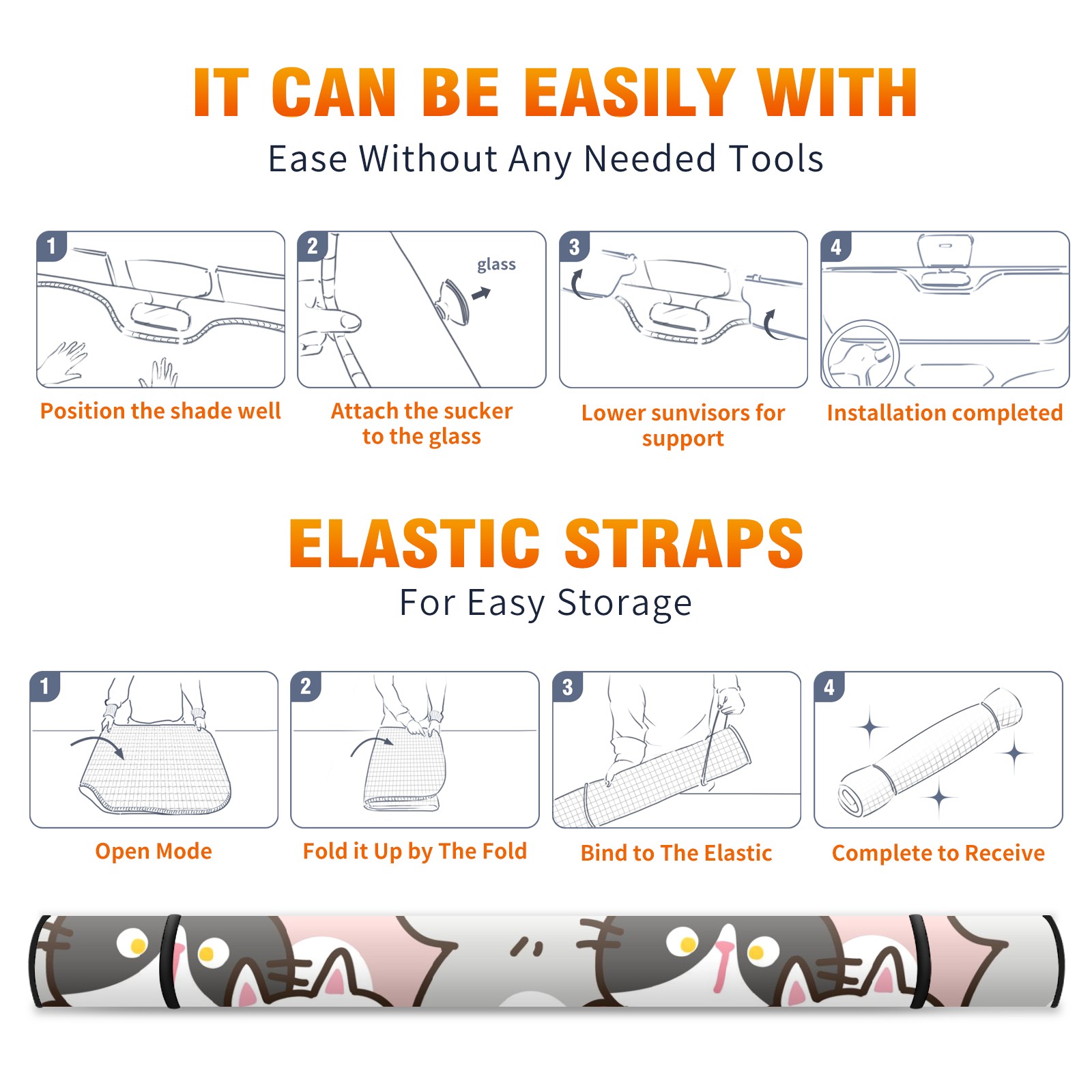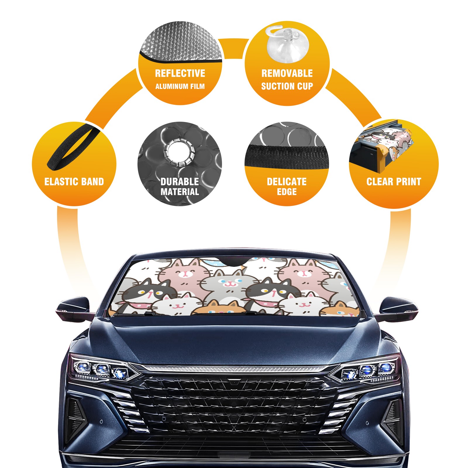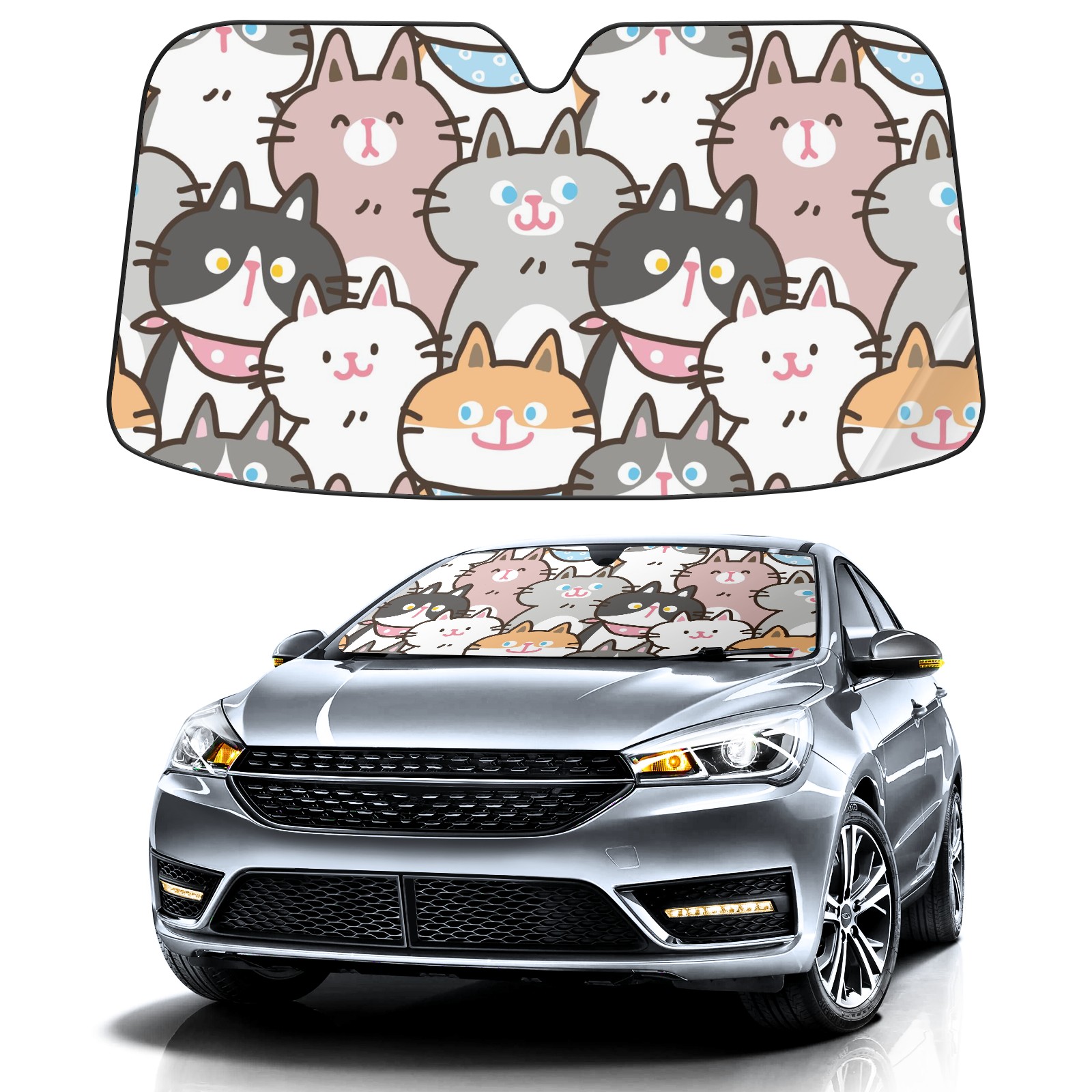 Car Windshield Sun Shade For Front Window Cartoon Cat Design Foldable Vehicle Windshield Car Sun Visor Covers Automotive Window Protector Car Camping Privacy Sun Blocker