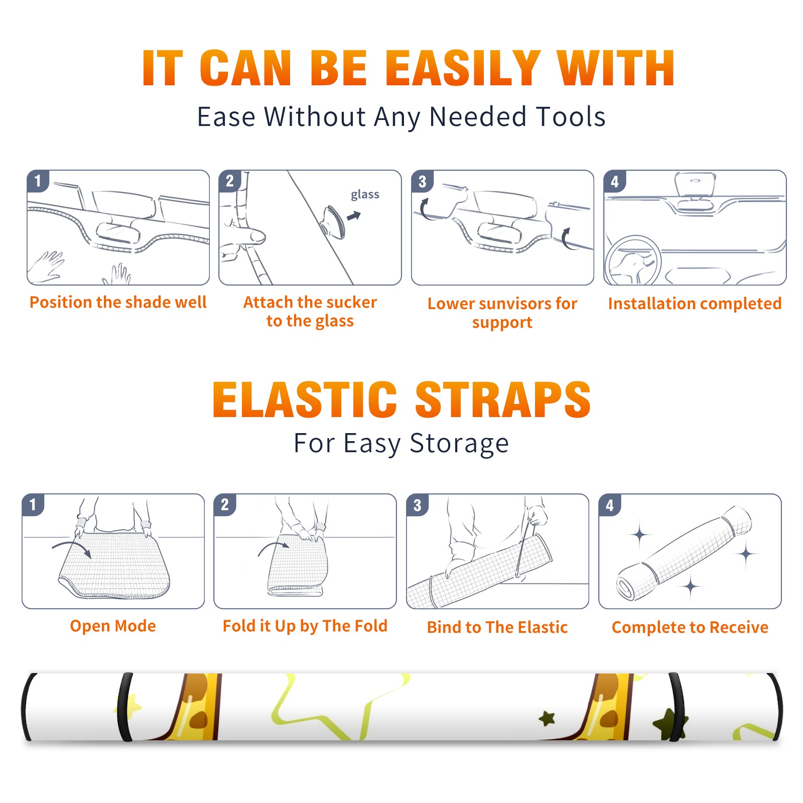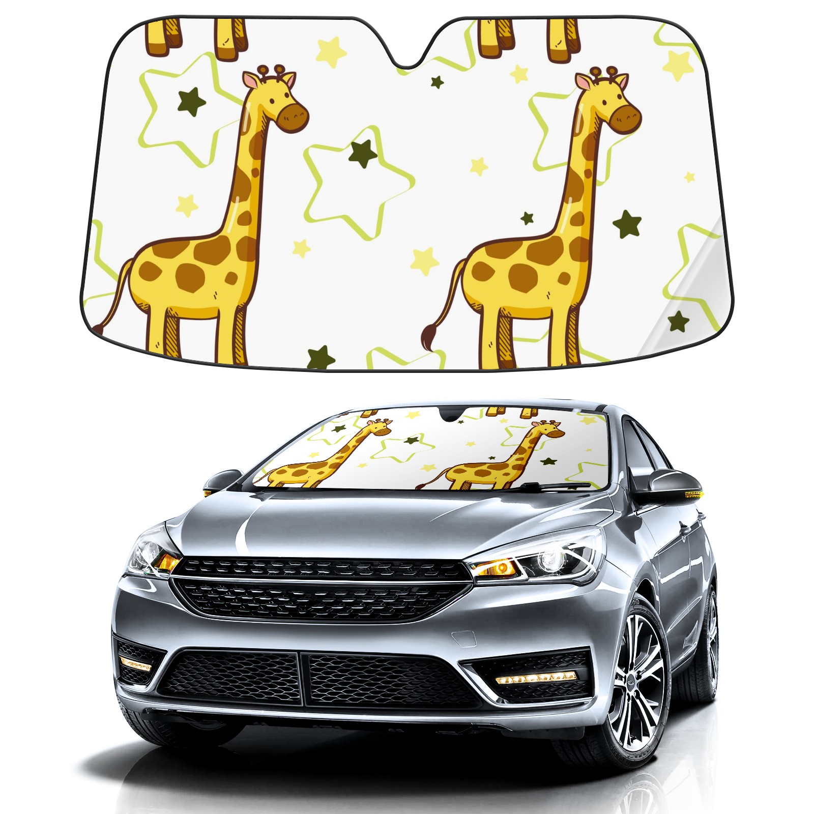 Car Windshield Sun Shade For Front Window Cute Giraffe And Star Foldable Vehicle Windshield Car Sun Visor Covers Automotive Window Protector Car Camping Privacy Sun Blocker