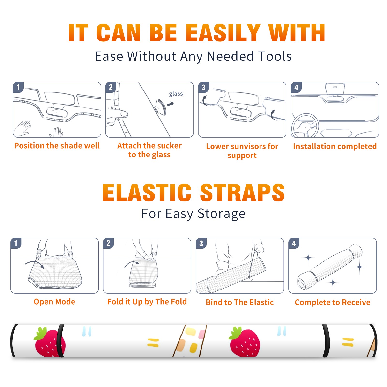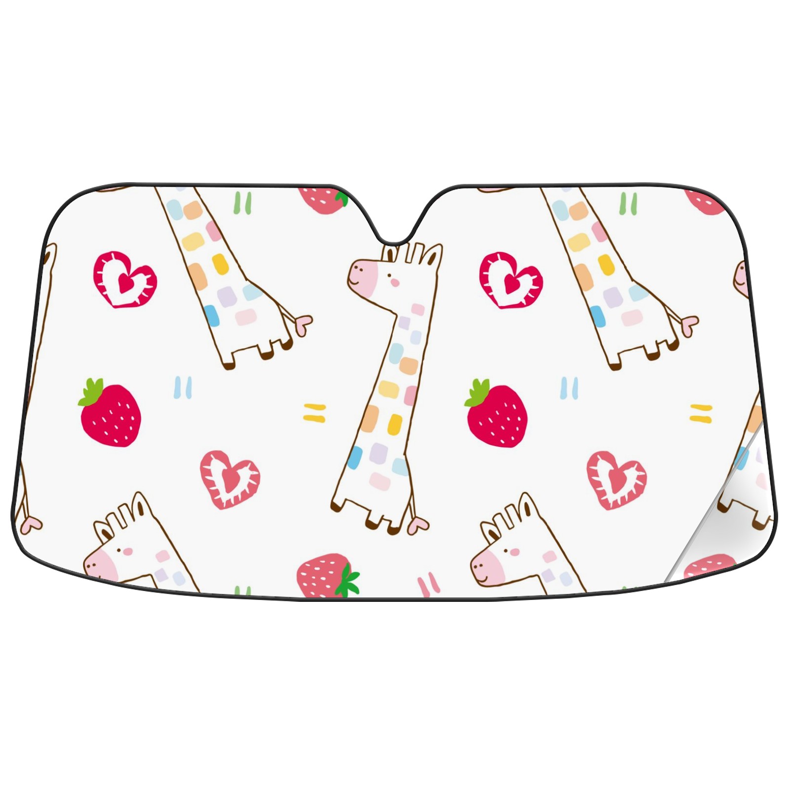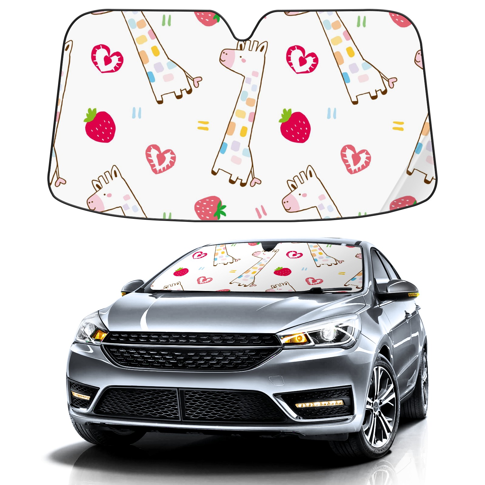 Car Windshield Sun Shade For Front Window Cute Giraffe And Strawberry Foldable Vehicle Windshield Car Sun Visor Covers Automotive Window Protector Car Camping Privacy Sun Blocker