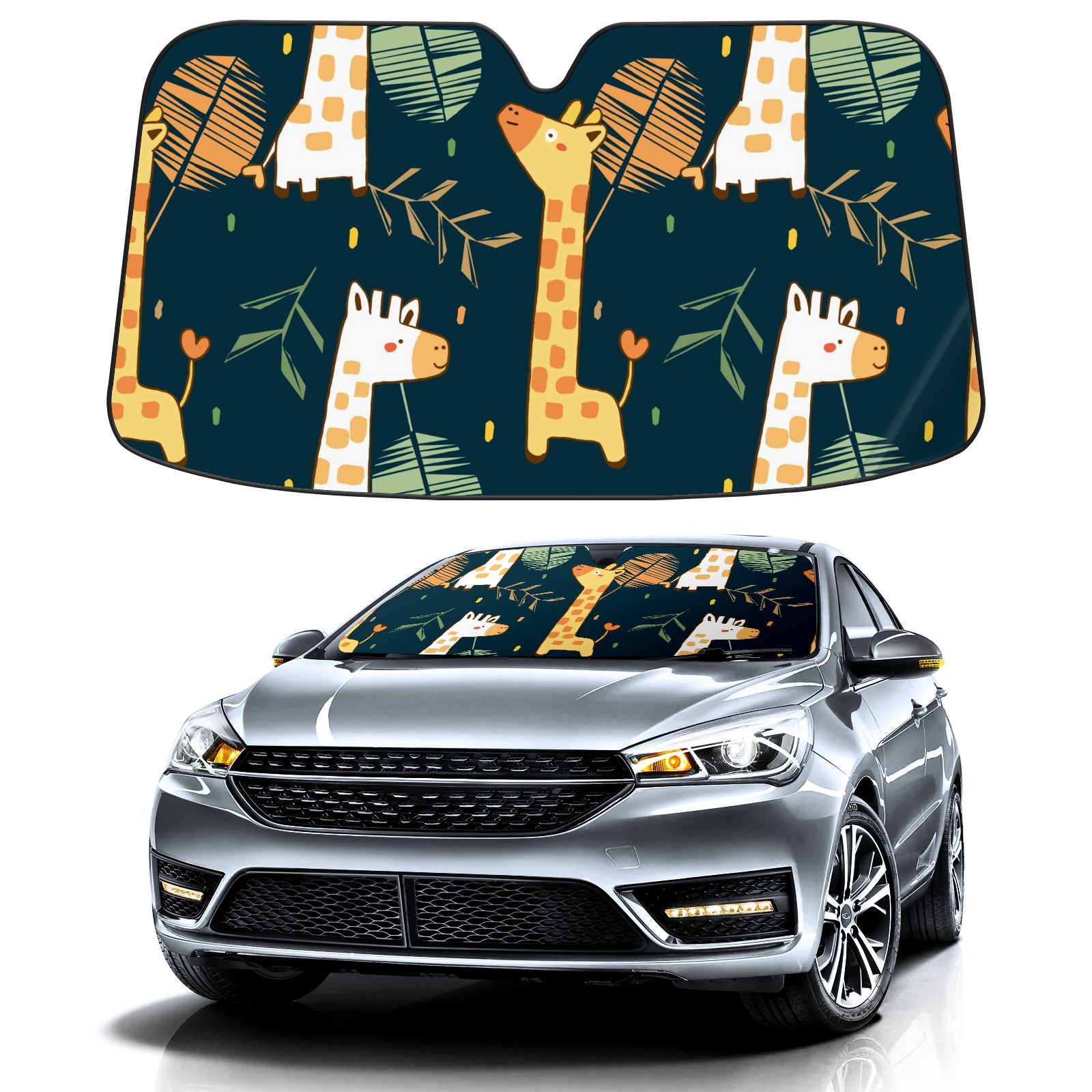 Car Windshield Sun Shade For Front Window Cute Giraffe And Leaf Foldable Vehicle Windshield Car Sun Visor Covers Automotive Window Protector Car Camping Privacy Sun Blocker