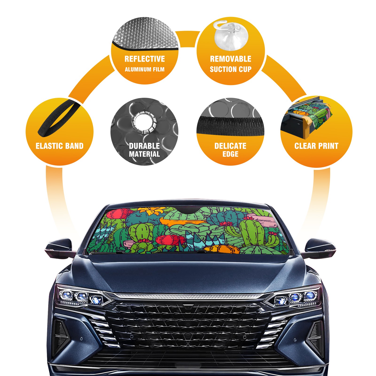 Diameter /Size 63"L x 33.5"W Made from excellent materials which makes it sturdy and protects the car from the sun. Easy to use and pack. Makes the interior of the car cooler.You can easily stash the sunshade in the storage bag or store long term.It open and closes easy. Also the leather storage bag is durable and easy to put the umbrella back into.This windshield sunshade provides complete coverage and keeps your car interior cool under direct sun. It is easy to open and position under the windshield and around the rear-view mirror. Makes Your Car Easy To Identify, Perfect For Finding Your Car In Crowded Parking Lots And Garages.Great Choice: It Is A Great Gift For Dad, Boyfriend, Brother, Brother And Uncle, Friends, Classmates, Family And So On. Notice: Due To Difference Computer Monitors, The Color Maybe Slightly Different From Picture. As Different Measurement Methods, Measurement Data Will Float Within 2%.I Hope You Understand. If You Have Any Question About The Item Please Do Not Hesitate To Contact Us Immediately And We Will Give You A Satisfactory Reply Within 24 Hours.