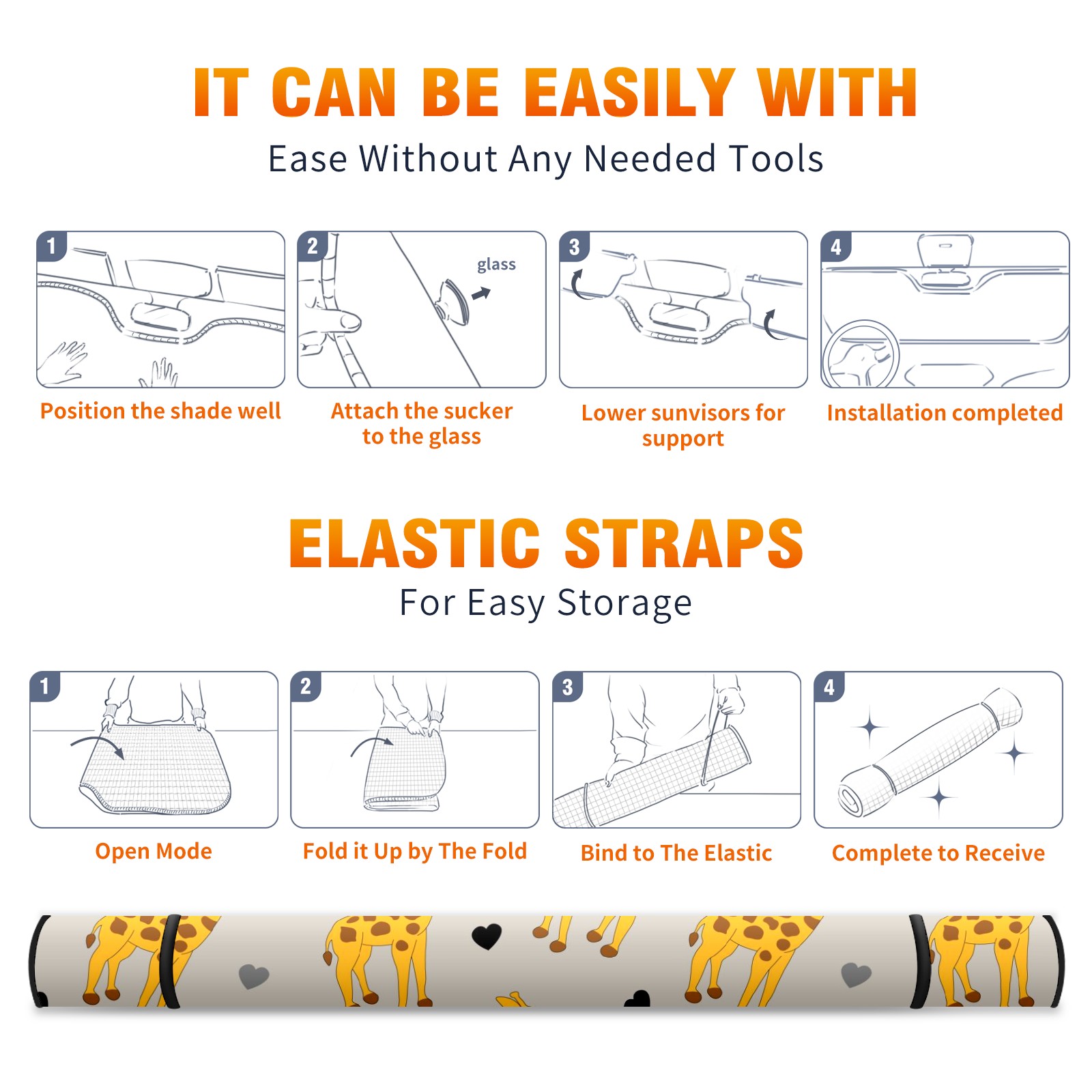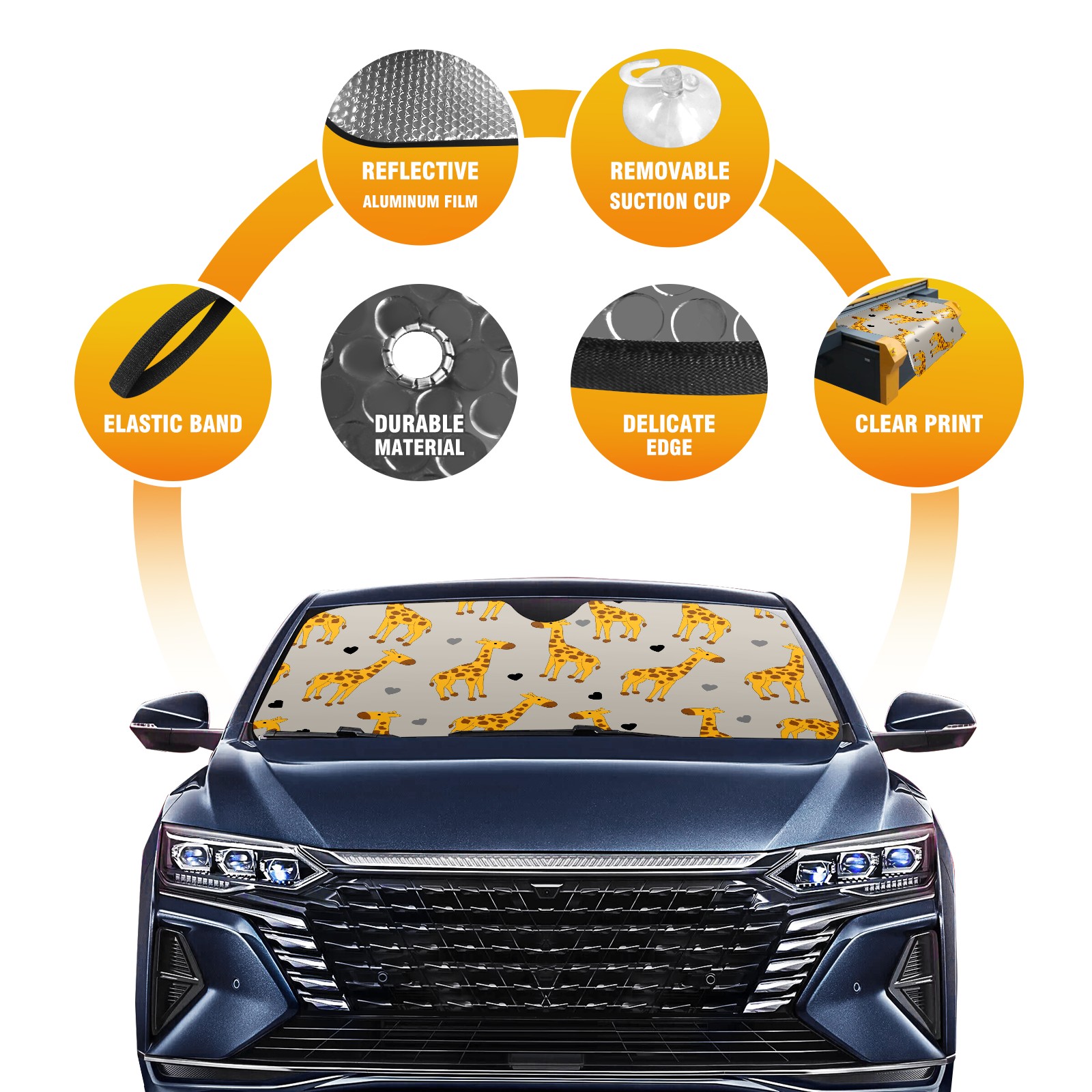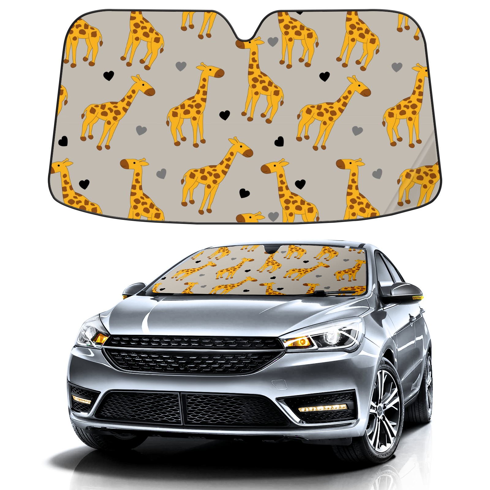 Car Windshield Sun Shade For Front Window Cute Giraffe And Hearts Foldable Vehicle Windshield Car Sun Visor Covers Automotive Window Protector Car Camping Privacy Sun Blocker