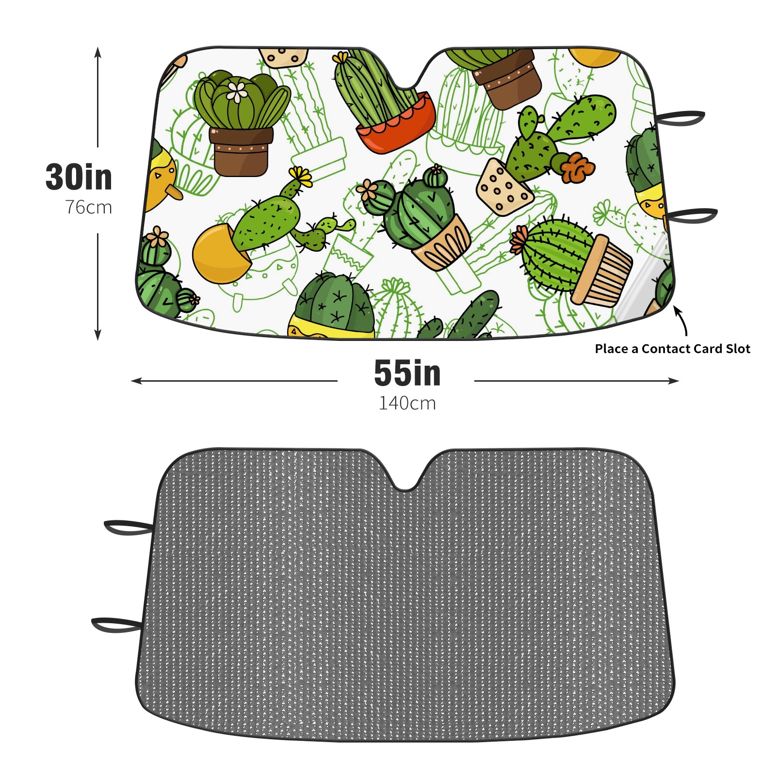 Car Windshield Sun Shade For Front Window Green Cactus Doodles Foldable Vehicle Windshield Car Sun Visor Covers Automotive Window Protector Car Camping Privacy Sun Blocker