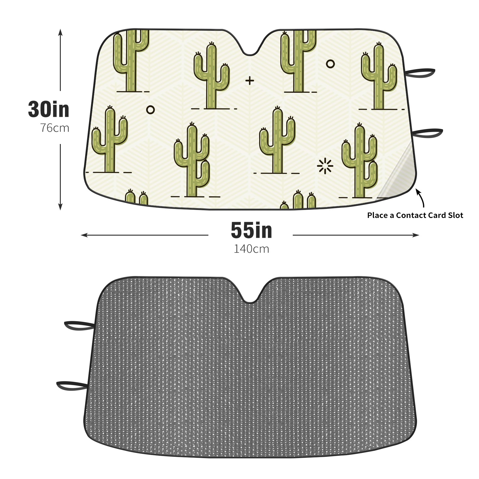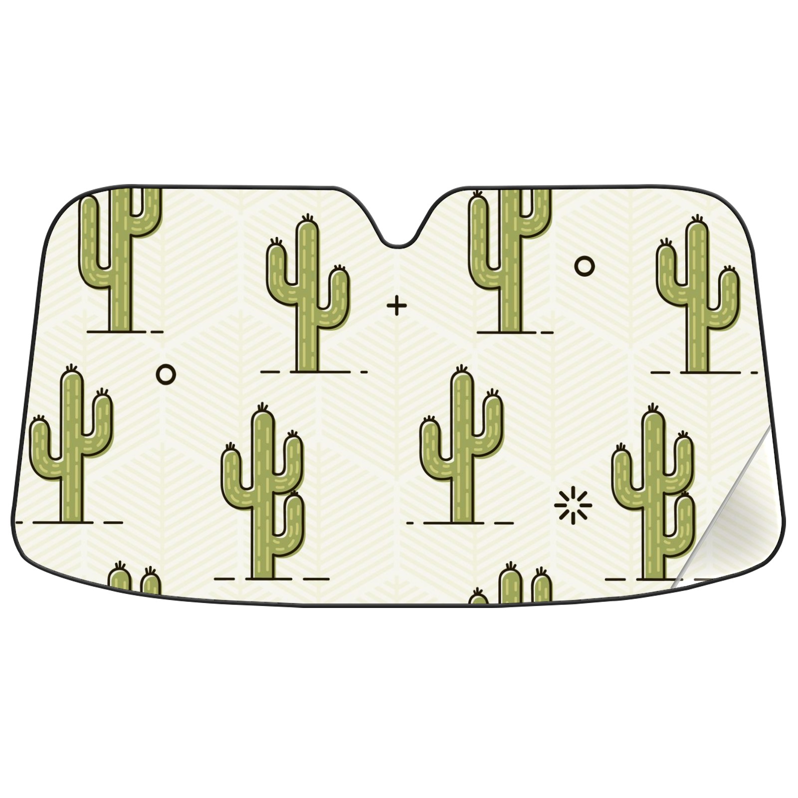 Car Windshield Sun Shade For Front Window Green Cactus Pattern Foldable Vehicle Windshield Car Sun Visor Covers Automotive Window Protector Car Camping Privacy Sun Blocker