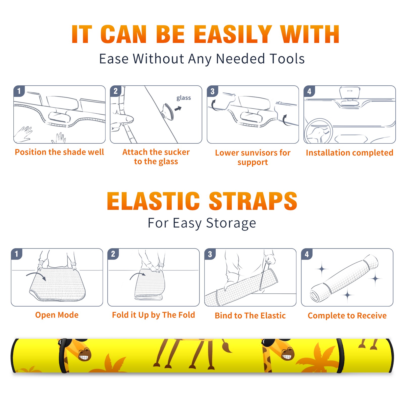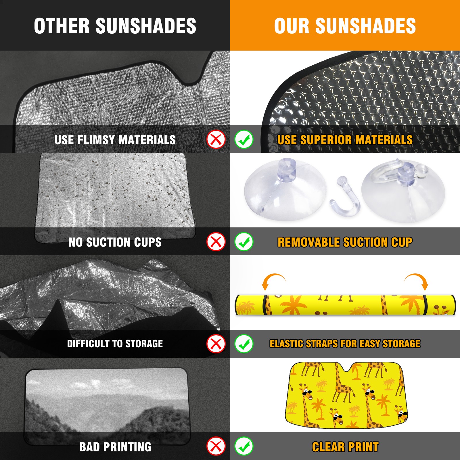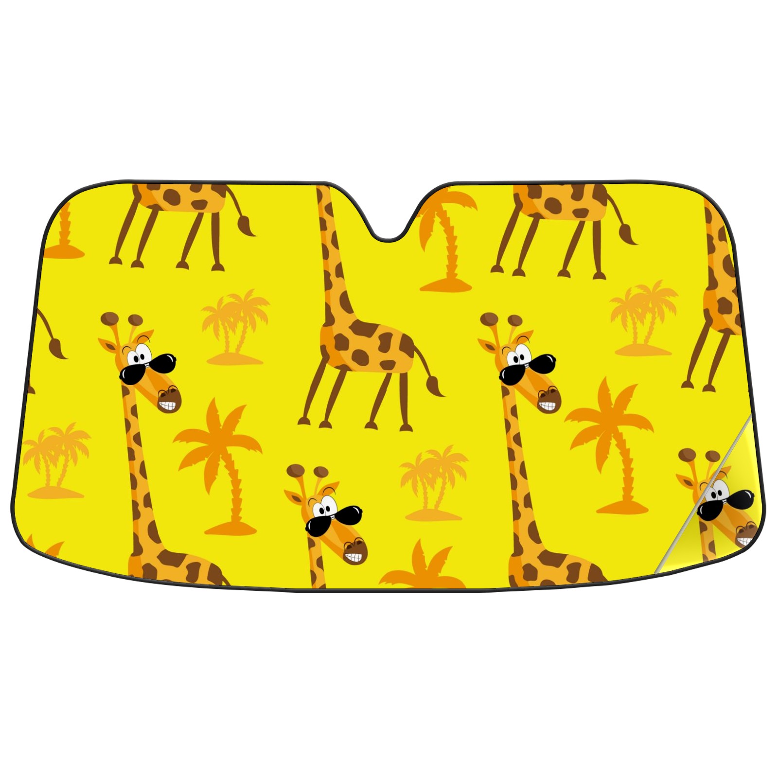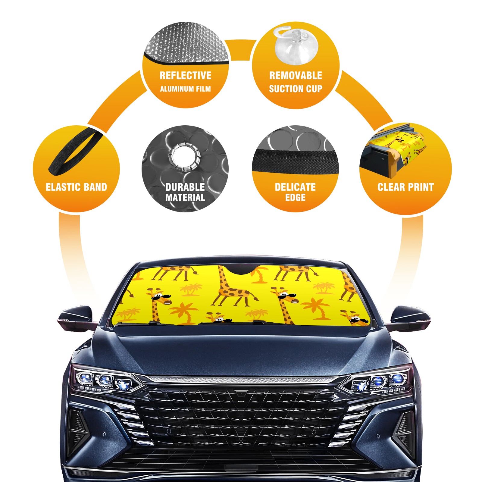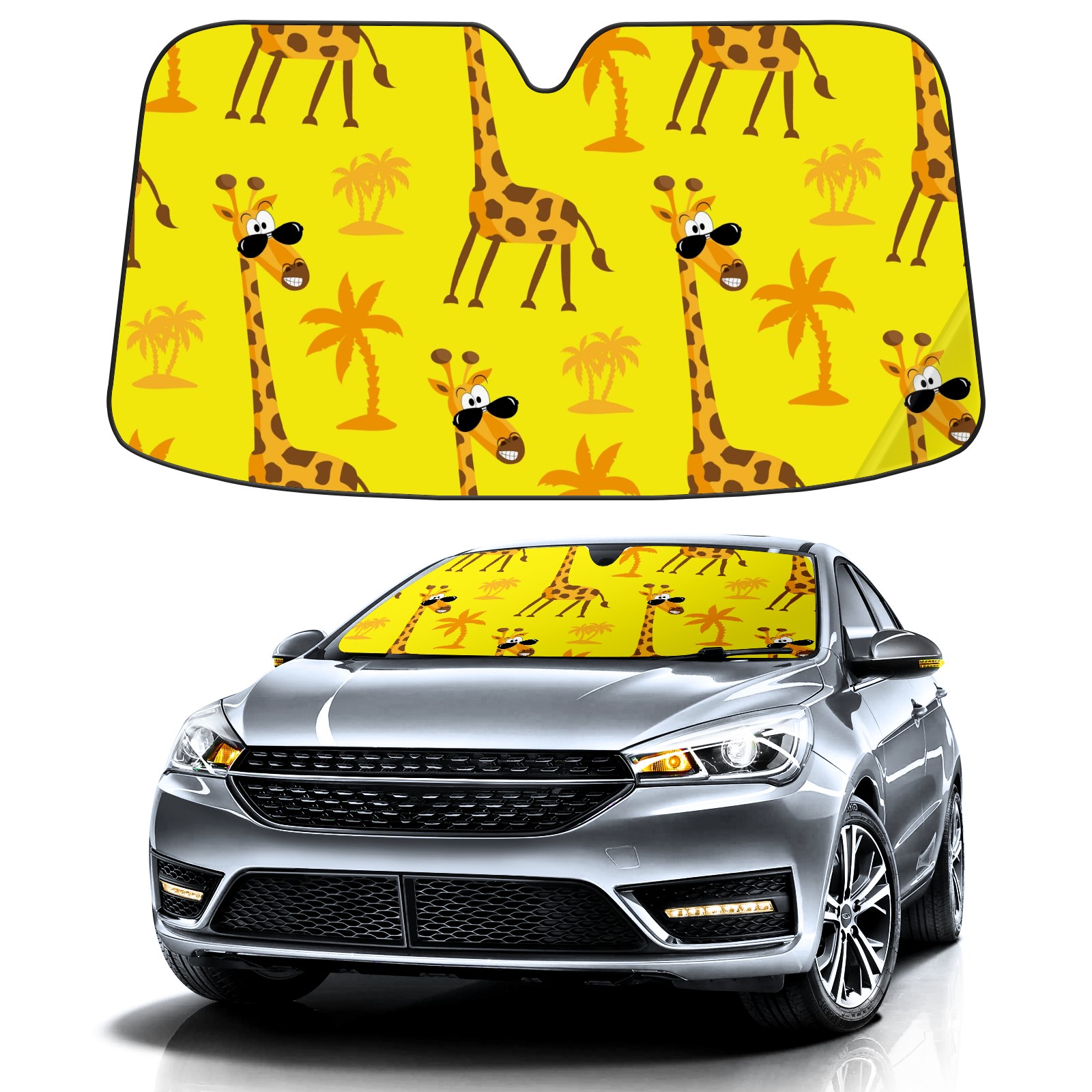 Car Windshield Sun Shade For Front Window Cute Cartoon Giraffe On Yellow Background Foldable Vehicle Windshield Car Sun Visor Covers Automotive Window Protector Car Camping Privacy Sun Blocker