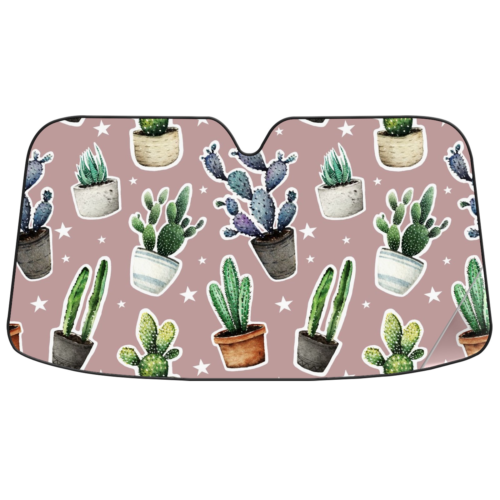 Car Windshield Sun Shade For Front Window Cactus Stars On Pink Background Foldable Vehicle Windshield Car Sun Visor Covers Automotive Window Protector Car Camping Privacy Sun Blocker