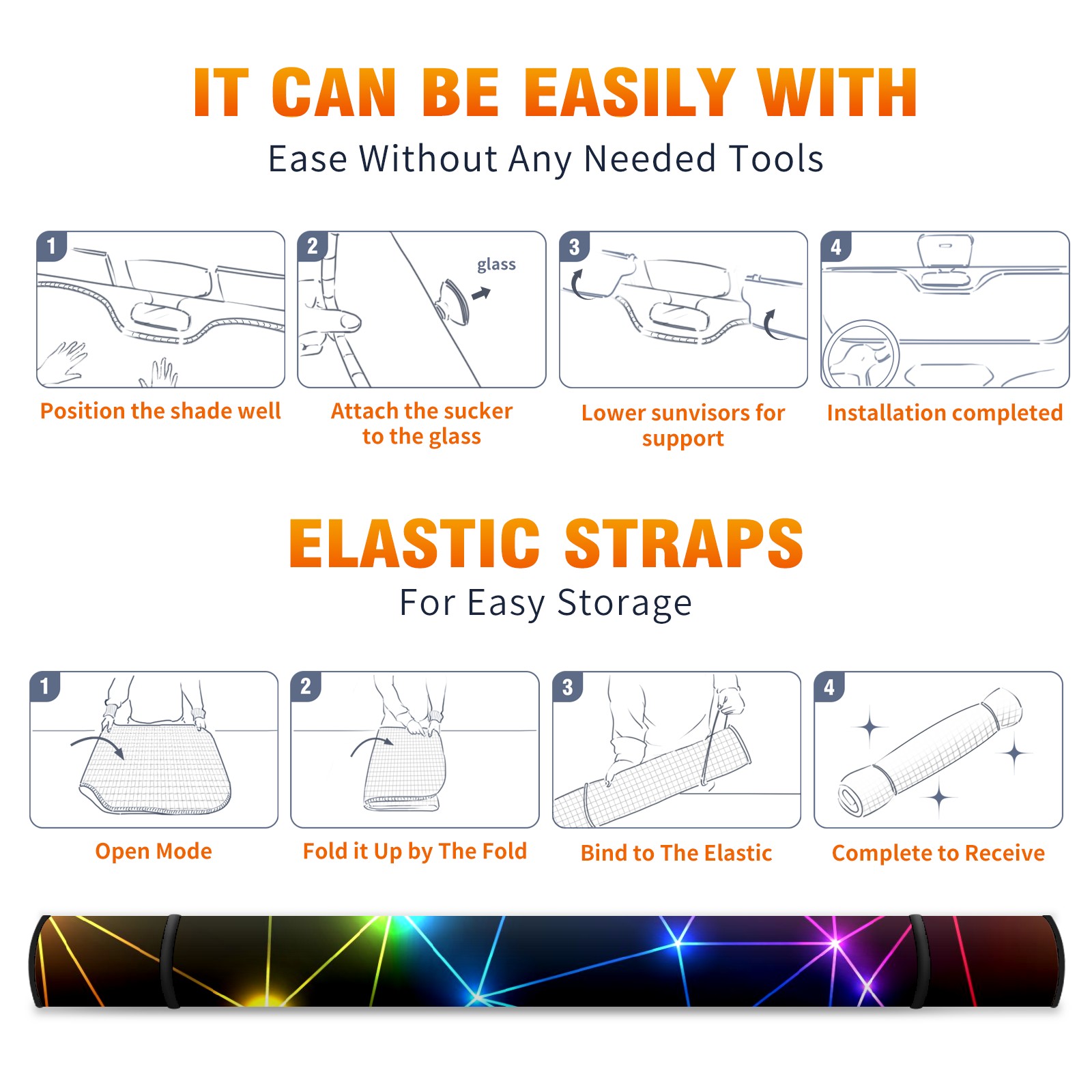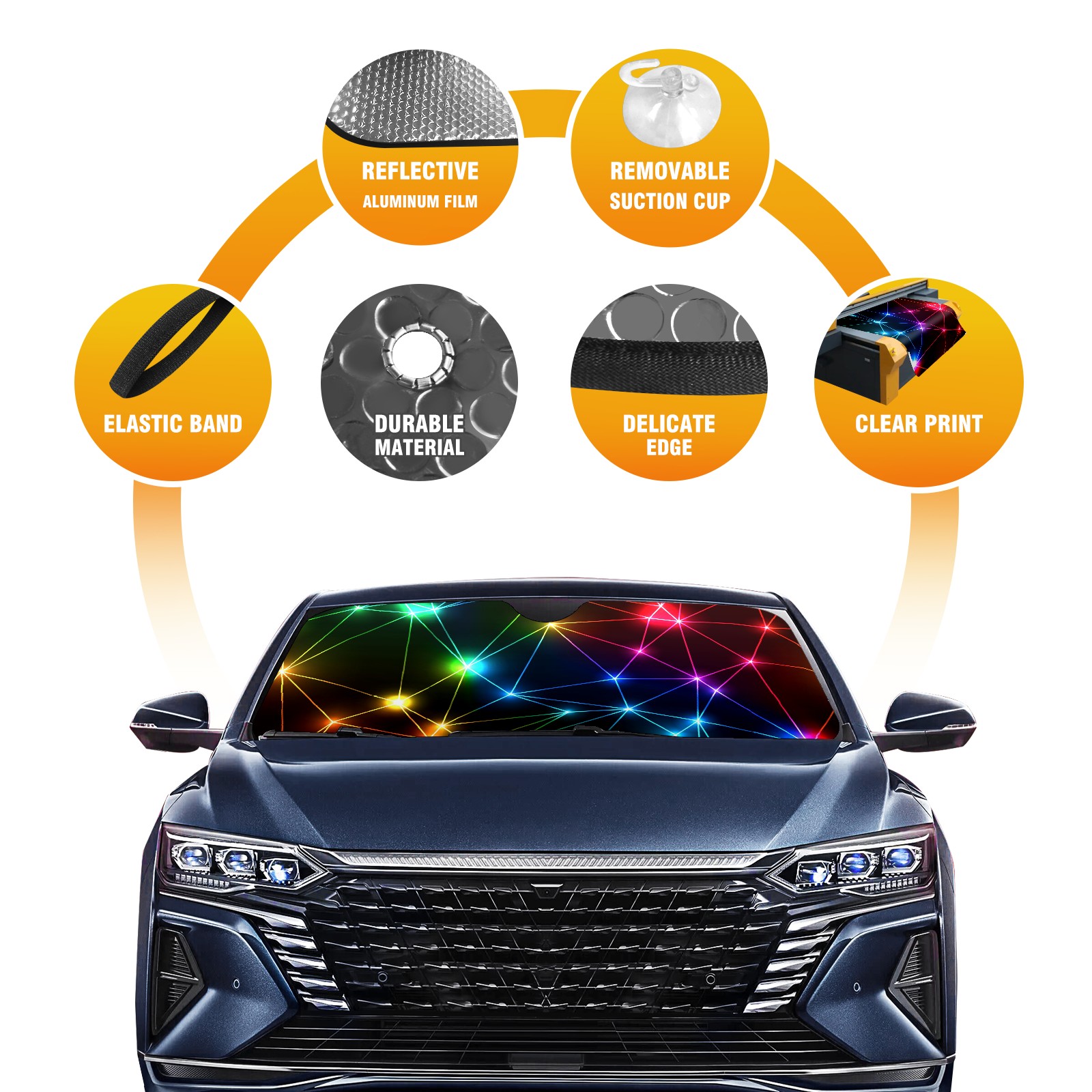 Car Windshield Sun Shade For Front Window Neon Rainbow Foldable Vehicle Windshield Car Sun Visor Covers Automotive Window Protector Car Camping Privacy Sun Blocker